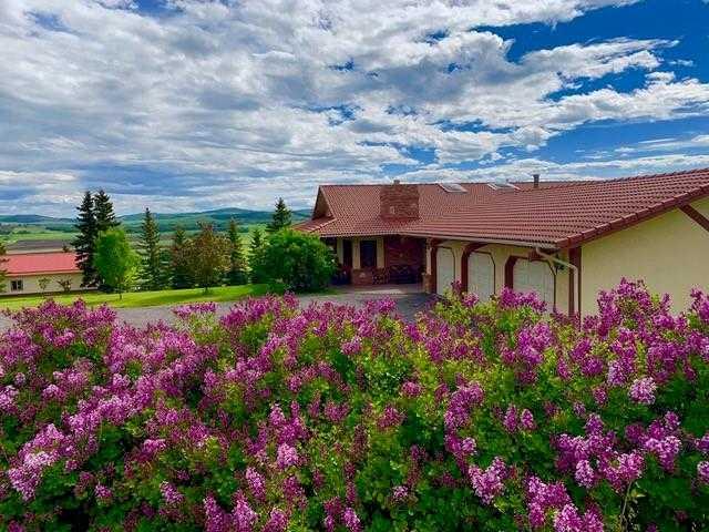 An exceptional opportunity to own nearly 20 acres just minutes from SW Calgary, Spruce Meadows, and the SW Ring Road, with breathtaking mountain views and room to grow. This property offers a rare combination of peaceful rural living, horse-ready infrastructure, and future development potential (subject to MD approval for subdivision). Ideal for equestrian enthusiasts, the land is cross-fenced into three separate pastures and includes a horse shelter, with plenty of space to expand. The custom-built walkout bungalow offers nearly 3900 square feet on the main floor and features 4 bedrooms, 3.5 bathrooms, a gourmet kitchen, curved staircase, vaulted ceilings, skylights, and 3 fireplaces—an elegant, spacious home designed for comfort and entertaining. Enjoy the convenience of a heated triple-attached garage plus a separate 3-car detached garage, ideal for vehicles, a workshop, or potential conversion into a barn. The walkout lower level is partially finished and offers flexible space, including the option to develop a self-contained living space. Whether you're seeking space for horses, investment potential, or simply a private retreat close to the city, this unique property delivers incredible value and versatility. Don’t miss this chance to own in the foothills with views, privacy, and potential.