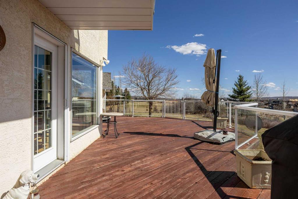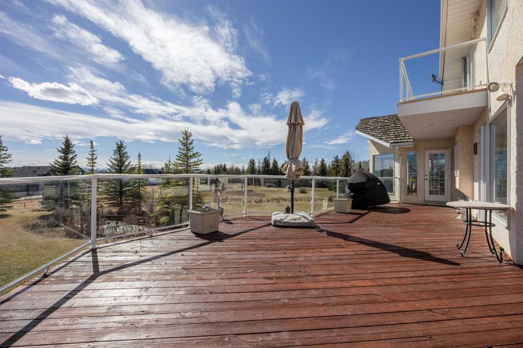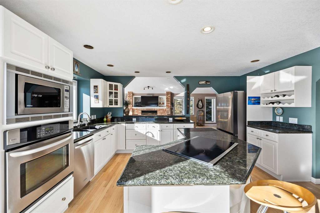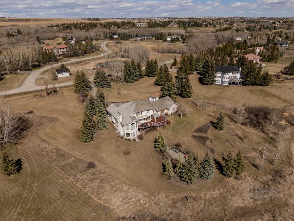 Set on a quiet cul-de-sac on the edge of Rocky View County, Blueridge Estates is a warm, welcoming community where space, comfort, and connection come together effortlessly. Set on a 2 acre, treed lot, this is a place where everyday life feels calm and unhurried—yet still close to everything the city offers. Large windows throughout the main floor flood the home with exceptional natural light and frame expansive views of the Rocky Mountains, downtown Calgary, and Winsport ski hill. At the heart of the main level, a beautifully detailed brick gas fireplace creates a natural gathering point that anchors the living spaces. Framed in timeless brick, it brings warmth, character, and a sense of permanence—perfect for cozy evenings, family gatherings, and long winter nights. High ceilings in the open great room further enhance the sense of space and light. Hardwood flooring runs throughout the majority of the main floor and was redone in 2023 in a natural oak tone, adding warmth and a timeless feel. The kitchen is both functional and inviting, featuring solid granite countertops and island, a new refrigerator, upgraded stainless steel appliances including an induction cooktop, and a reverse osmosis drinking water system. The layout flows seamlessly to the dining area and out to the deck, making indoor-outdoor living effortless. The primary suite has been thoughtfully renovated into a true retreat, offering unobstructed mountain views, a large walk-in closet, and a spa-inspired ensuite with heated tile flooring, a large walk-in shower, and a rain shower feature—a perfect place to unwind at the end of the day. The walkout basement continues the home’s inviting feel with high ceilings and large windows that provide abundant natural light and beautiful views. A brick wood burning fireplace anchors the spacious recreation room, creating a comfortable and relaxed setting for movie nights, entertaining, or family time. Outside, the lifestyle truly shines. Enjoy summer evenings on the large southwest-facing deck, unwind year-round in the saltwater hot tub, or gather around the outdoor fire pit with seating area. The oversized triple car garage with radiant heating adds everyday comfort, while practical upgrades such as two furnaces, two newer water heaters, and a Culligan water softener provide peace of mind. Located in a well-established community close to parks, pathways, schools, and major routes, this is a home designed for long-term living—where comfort, views, and thoughtful upgrades come together beautifully.