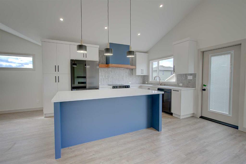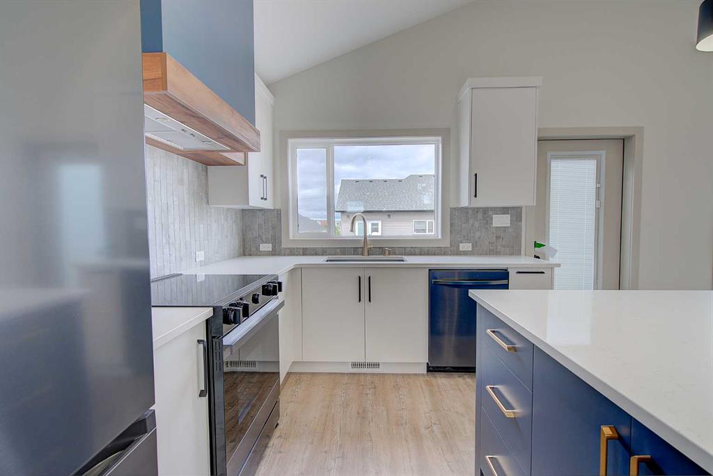 IMMEDIATE POSSESSION AVAILABLE! TRIPLE GARAGE. Brand new FULLY Developed (2141 SQ. FT. OF LIVING SPACE) 3 bedroom 3 bathroom modified bi-level with TRIPLE attached garage. This fabulous home is located in Timberlands North, close to shopping, schools, Canyon Ski Hill, Riverbend golf course with easy access to the highway and north/south Red Deer. The main floor has a beautiful open kitchen/dining room living room design. The kitchen is finished with quartz counter tops, a large Island and black stainless steel appliances. The living room has plenty of natural light and a large linear electric fireplace-flooring is luxury vinyl plank. There is also a 4 piece bathroom on the main floor and a good sized spare bedroom. The master bedroom is located up a few stairs with large walk in closet with custom shelving and a 4 piece ensuite with his/hers sinks and stand up shower. The lower level also has an abundance of natural light and has a spacious family room, finished laundry room with black stainless steel washer dryer, 4 piece bathroom and another bedroom-flooring is carpet. The lower level has roughed in under slab heat, roughed in central vac. Outside you will find a finished rear deck with aluminum railing, a gas line for barbecue, a fully sodded front yard and rear fence. This home comes with a 10 year new home warranty.