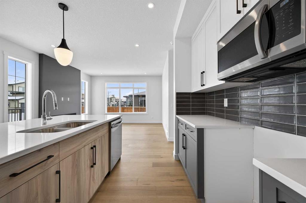 Welcome to this stunning brand new semi-duplex by Douglas Homes, ideally located on a premium corner lot in the sought-after community of Waterford in Chestermere. DH $20K Limited Savings already included, offering exceptional value on this beautifully designed home. Featuring a rare triple car garage and thoughtfully curated finishes, this property blends modern design with everyday functionality. Step inside to experience an open and inviting layout featuring 9’ basement ceilings, elegant quartz countertops, engineered hardwood flooring, and a cozy electric fireplace that creates a warm focal point in the living space. The well-appointed kitchen flows seamlessly into the dining and living areas—perfect for entertaining or family living. The spacious primary suite is designed as a private retreat, complete with a luxurious ensuite featuring dual sinks and contemporary finishes. Every detail has been carefully considered to deliver both comfort and style. Situated just minutes from an existing park and future amenities, this home offers the perfect balance of convenience and community living. First-Time Buyer Opportunity Eligible purchasers may qualify for the First-Time Home Buyers’ GST Rebate, potentially saving up to $50,000 on a new home. To qualify, buyers must be 18 years or older, a Canadian citizen or permanent resident, and must not have owned or occupied a home owned by themselves or their spouse/common-law partner within the past four years. This limited-time incentive applies to homes with agreements dated after May 27, 2025, subject to Government of Canada / CRA guidelines and eligibility requirements. Please Note: Some photos shown are of the same model for illustrative purposes only. Actual home finishes, colors, and features may vary. Call today to learn more about this exceptional opportunity!