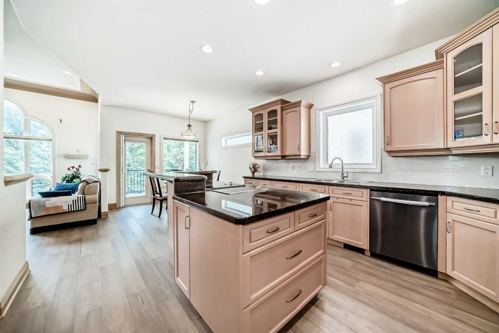 Welcome to this stunning, high-class luxury bungalow offering exceptional comfort and convenience! Brand New paved driveway! Brand New water heater! Ideally located just minutes from top-rated public and private schools—including Griffith Woods School, Ernest Manning High School, Rundle College, and Webber Academy—this beautiful home is surrounded by all the essentials. You'll find a nearby bus stop, the WB 69 Street C-Train Station, shopping centers, and Westside Recreation Centre just steps away. This elegant bungalow features over 3,300 sq ft of total living space with Central Air Conditioner and two furnaces, an open floor plan with expansive views, and a sunny south-facing backyard backing onto a large green space. The main floor boasts brand-new water-proof engineered hardwood flooring and 9’ to 11’ high ceilings throughout. Enjoy a spacious living room, formal dining area, and a large kitchen complete with built-in stainless steel appliances, granite countertops, and an island breakfast bar that opens to a bright, sunny deck. The main level also includes a luxurious primary bedroom with serene green views, a walk-in closet, and a 5-piece ensuite (jetted tab), plus second bedroom and a full bathroom. A striking spiral staircase leads to the fully developed basement with a separate entrance. This level offers 9’ ceilings, three additional bedrooms plus one office, two full bathrooms (one is jetted tab), a second washer and dryer set, one BRAN NEW hot water heater, two furnaces, a large entertainment area, and access to a private concrete patio—perfect for guests or extended family. There is Low-maintenance landscaping in both the front and backyards add to the ease of living. Great to live in. Great to invest.