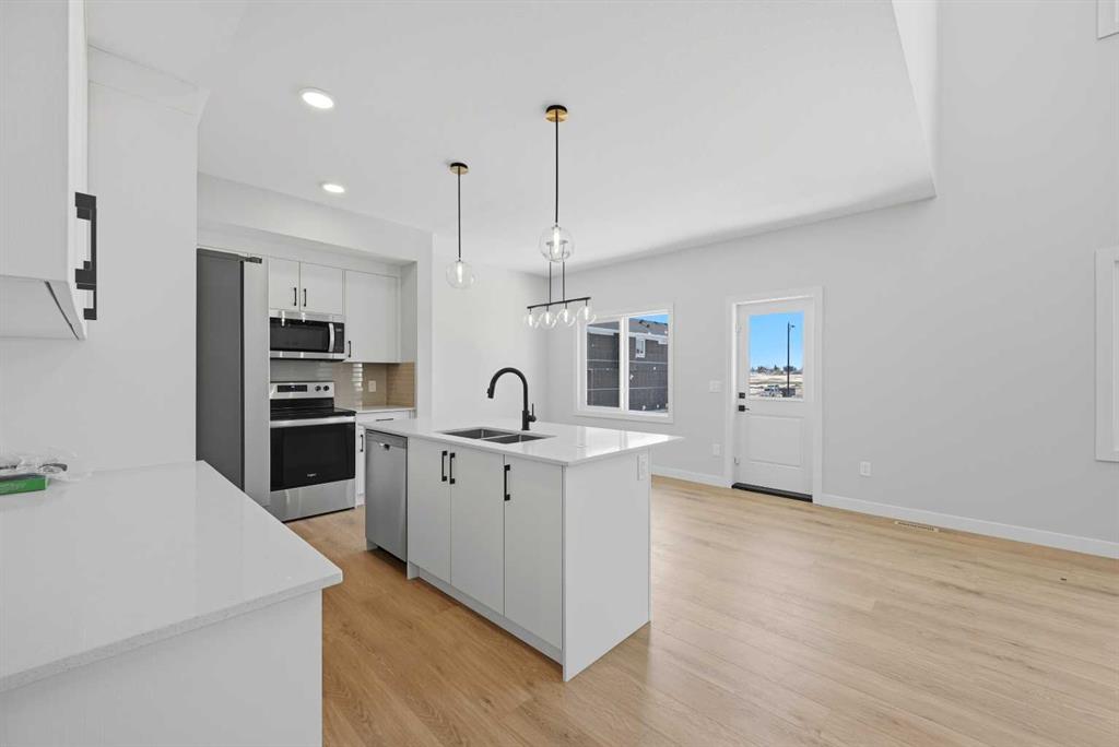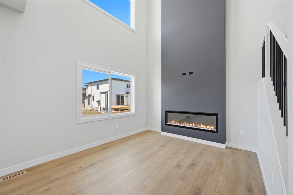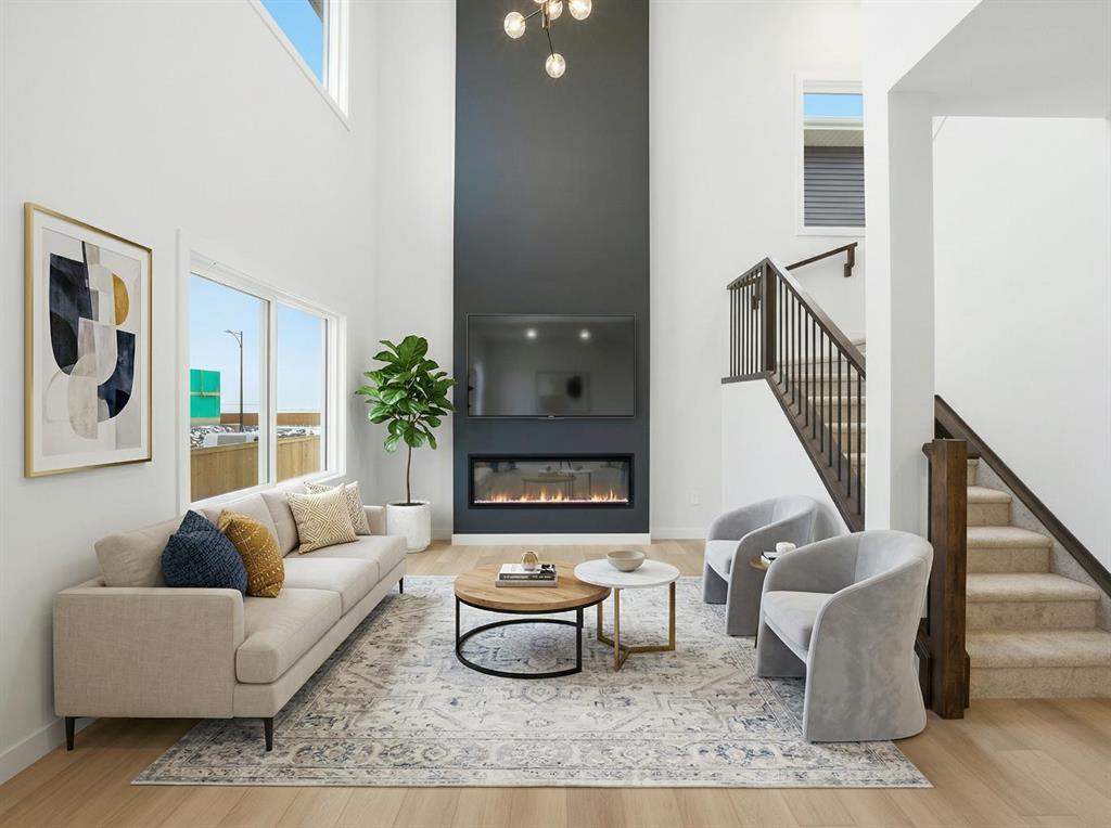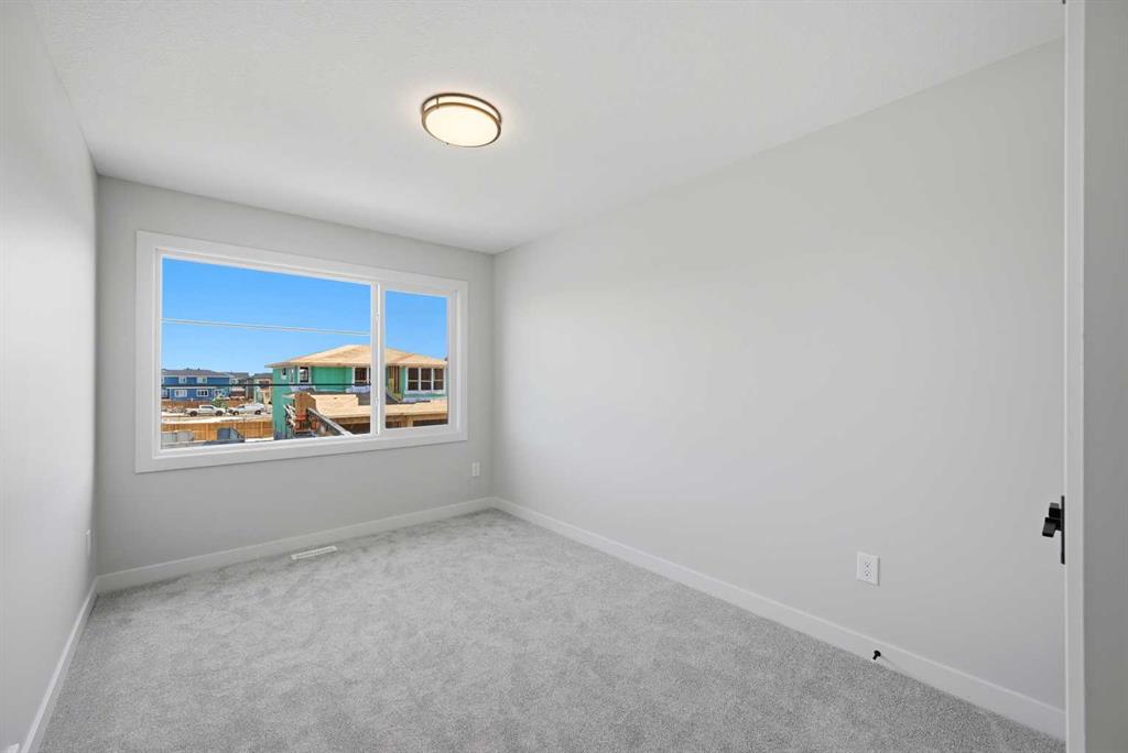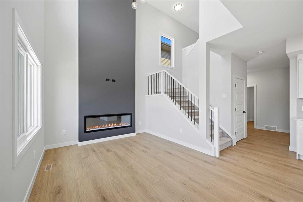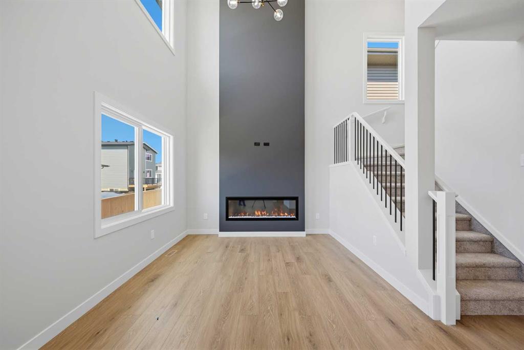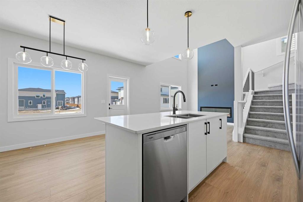 YOUR SEARCH ENDS HERE - HARD TO FIND THIS SIZE OF FRONT GARAGE SEMI-DETACHED IN CHESTERMERE AT THIS PRICE WITH FEATURES LIKE OPEN TO ABOVE, WALKOUT BASEMENT WITH DECK, MAIN FLOOR FULL BED & BATH and much more! Welcome to your new home in Waterford! Experience modern elegance in this sprawling almost 2000 Sq. Ft. home, thoughtfully designed with the modern family in mind. The main floor invites you in with a seamless open layout, highlighted by a STUNNING "OPEN TO ABOVE" LIVING ROOM featuring a custom accent wall and a sleek electric fireplace. Designed for ultimate versatility, the main level comes with hard to find FULL BEDROOM AND BATHROOM WITH A STANDING SHOWER—perfect for elderly parents, guests, or a quiet home office. The chef-inspired L-SHAPED KITCHEN BOASTS A WALKTHROUGH PANTRY leading to a highly functional mudroom. The decent sized 19X10 Ft. deck comes with a BBQ gas line and provides a perfect space for summer gatherings and a morning coffee. Upstairs, discover a spacious bonus room bathed in natural light from the open-to-above, a convenient laundry room, and three generous sized bedrooms. The primary bedroom features a DOUBLE VANITY ENSUITE, much needed walk-in shower, and a spacious walk-in closet. The unfinished BRIGHT WALKOUT BASEMENT is prepared for future development, FEATURING A SEPARATE REAR ENTRY, EXTENDED 9 FT. HEIGHT, 2 DECENT SIZED REAR WINDOWS, and a mechanical room tucked away to maximize floor space. Situated on the southwest edge of Chestermere, Waterford offers a peaceful "Lake City" lifestyle with a quick commute to Calgary via easy access to Glenmore Trail and 17th Ave. You are a few minutes away from Rainbow Creek Elementary and Chestermere Lake Middle School, as well as local groceries and popular restaurants. Move-in ready and just minutes from the water—your lakeside retreat awaits! View the 3D tour and book your showing today.