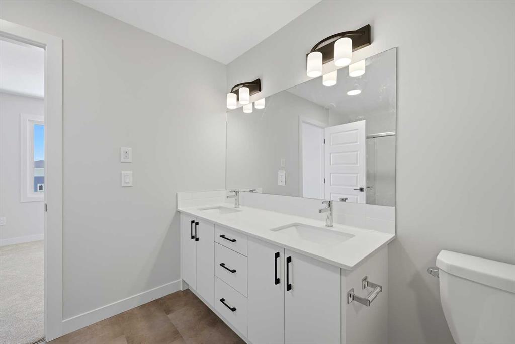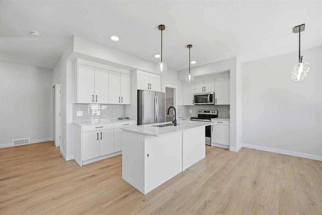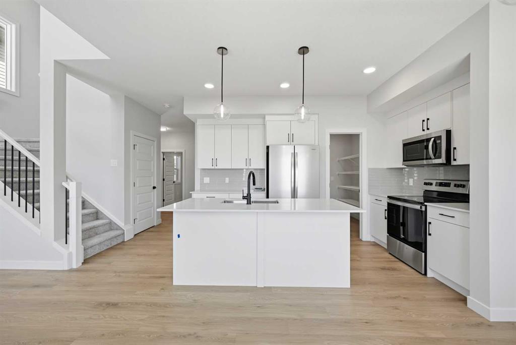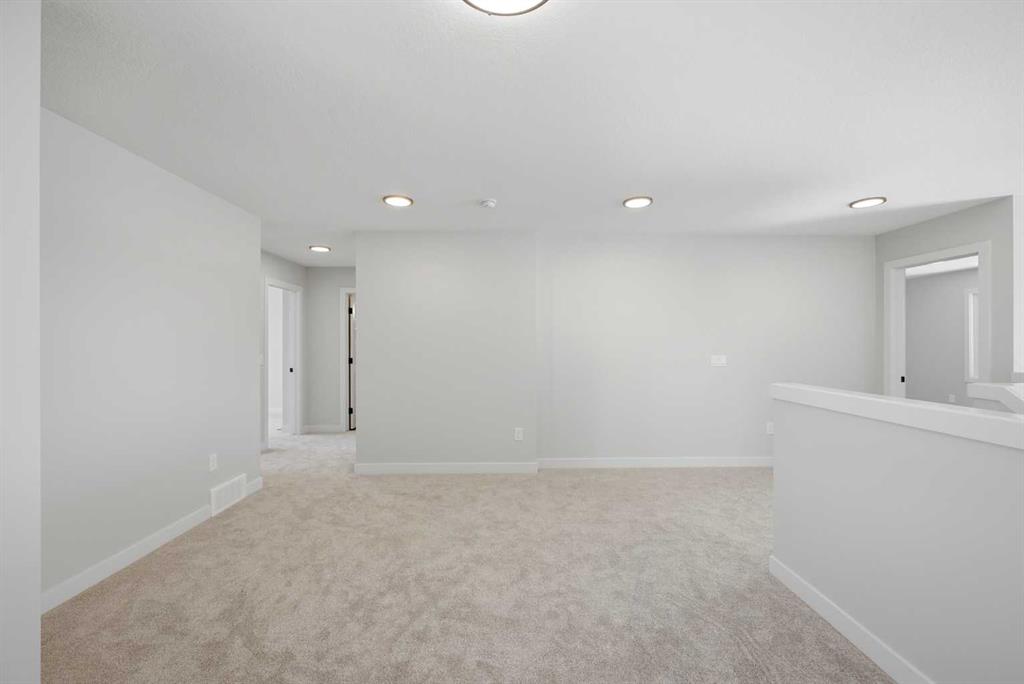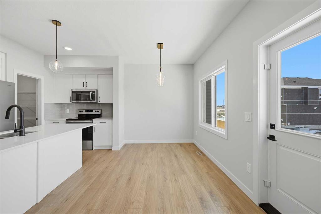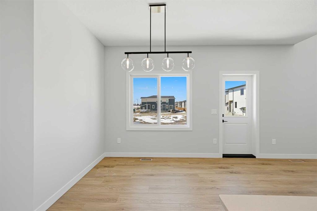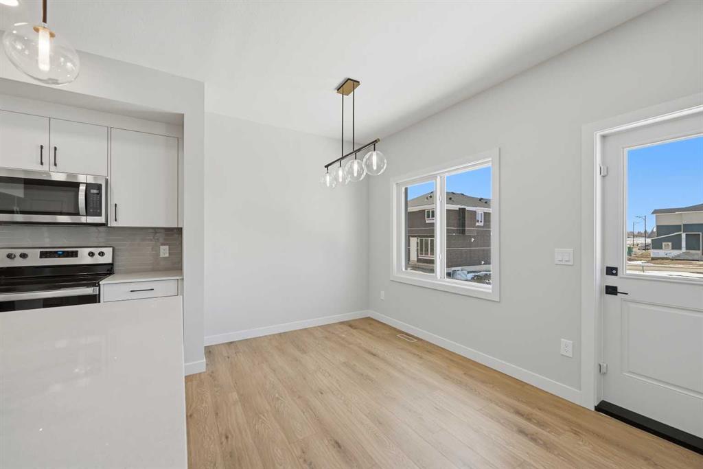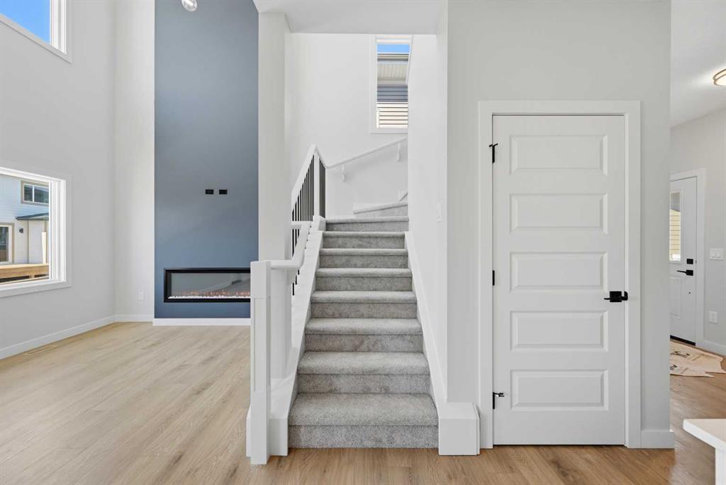 YOUR SEARCH ENDS HERE - HARD TO FIND THIS SIZE OF FRONT GARAGE SEMI-DETACHED IN CHESTERMERE AT THIS PRICE WITH FEATURES LIKE OPEN TO ABOVE, WALKOUT BASEMENT WITH DECK, MAIN FLOOR FULL BED & BATH and much more! Welcome to your new home in Waterford! Experience modern elegance in this sprawling almost 2000 Sq. Ft. home, thoughtfully designed with the modern family in mind. The main floor invites you in with a seamless open layout, highlighted by a STUNNING "OPEN TO ABOVE" LIVING ROOM featuring a custom accent wall and a sleek electric fireplace. Designed for ultimate versatility, the main level comes with hard to find FULL BEDROOM AND BATHROOM WITH A STANDING SHOWER—perfect for elderly parents, guests, or a quiet home office. The chef-inspired L-SHAPED KITCHEN BOASTS A WALKTHROUGH PANTRY leading to a highly functional mudroom. The decent sized 19X10 Ft. deck comes with a BBQ gas line and provides a perfect space for summer gatherings and a morning coffee. Upstairs, discover a spacious bonus room bathed in natural light from the open-to-above, a convenient laundry room, and three generous sized bedrooms. The primary bedroom features a DOUBLE VANITY ENSUITE, much needed walk-in shower, and a spacious walk-in closet. The unfinished BRIGHT WALKOUT BASEMENT is prepared for future development, FEATURING A SEPARATE REAR ENTRY, EXTENDED 9 FT. HEIGHT, 2 DECENT SIZED REAR WINDOWS, and a mechanical room tucked away to maximize floor space. Situated on the southwest edge of Chestermere, Waterford offers a peaceful "Lake City" lifestyle with a quick commute to Calgary via easy access to Glenmore Trail and 17th Ave. You are a few minutes away from Rainbow Creek Elementary and Chestermere Lake Middle School, as well as local groceries and popular restaurants. Move-in ready and just minutes from the water—your lakeside retreat awaits! View the 3D tour and book your showing today.