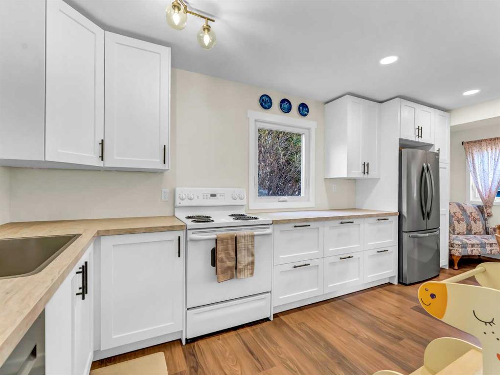 This charming home on the SE Hill is ready for its next owner! Great location close to schools, shopping, and the Central Park water park and playground. Fully fenced private yard on a corner lot , but with only a front sidewalk so no extra foot traffic or shovelling! This warm , bright , and extensively renovated home has a new kitchen , a new bathroom , a new central a/c , new windows, new shingles , new eavestroughs, new flooring, some updated plumbing and electrical, and is freshly painted from top to bottom. The inviting open main floor welcomes you in to a comfortable living / dining / kitchen space. There is good sized bedroom on the main floor, a full washroom , and a main floor laundry room / boot room on the first level, two smaller bedrooms upstairs, and a cozy den downstairs with the utility area and additional storage space as well. The private and fully fenced yard has been recently landscaped, and includes a shed and garden boxes. There is a detached single garage with large strip style driveway ( great for drainage and also less shovelling !) This no pets /no smoking , move in ready home in a great location ticks all of the boxes!