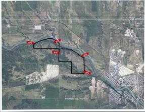This exceptional landholding is located just two miles west of the Cochrane city limits and represents a prime development and investment opportunity. Currently zoned Agricultural (AG), the property comprises 192.65 acres and can be purchased on its own or together with the adjoining 406-acre parcel, offering a combined total of 598.65 acres. Set within the Municipal District of Rocky View, this expansive property features stunning Bow River frontage—up to one to two miles if purchased together—along with sweeping mountain views and a truly picturesque natural landscape. The setting is exceptionally scenic, providing a rare combination of river access, open land, and long-term development potential. Or just build your own dream house on this awesome location. As Cochrane continues its westward expansion and demand remains strong throughout the surrounding region, this land is well positioned for future value appreciation. Its size, location, and natural beauty offer developers and investors a wide range of possibilities in one of the area’s most sought-after growth corridors.