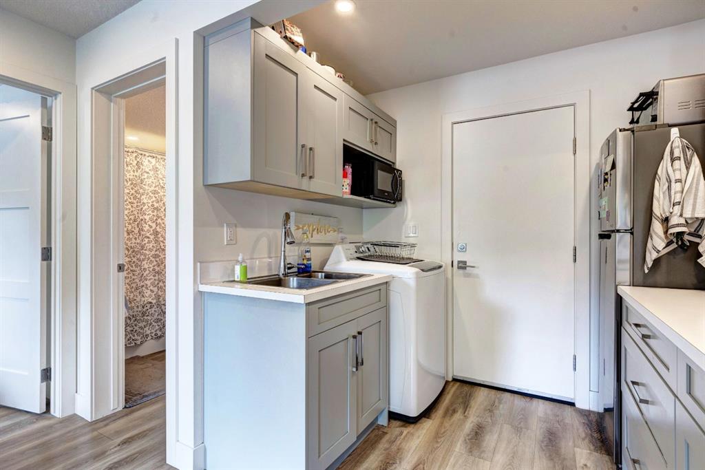 Stunning mountain triplex in the heart of Canmore. Perfectly positioned a short walk from downtown Canmore, this beautifully designed home spans three spacious levels and offers an exceptional blend of style, comfort and functionality. The main floor boasts an open-concept layout featuring a modern kitchen, dining area and living room with vaulted ceilings and a striking fireplace as the centrepiece. Step out onto the expansive deck to take in breathtaking mountain views. This level also includes two well-appointed bedrooms and a full bath. Upstairs, the private primary suite offers a luxurious retreat complete with a spa-inspired ensuite, walk-in closet and convenient laundry area. The fully finished lower level offers flexibility and is ideal for guests or roommates, featuring a large family room, a kitchenette, an additional bedroom and another full bathroom. Additional highlights include attached garage, ample storage and premium finishes throughout—engineered hardwood floors, stainless steel appliances and quartz countertops.