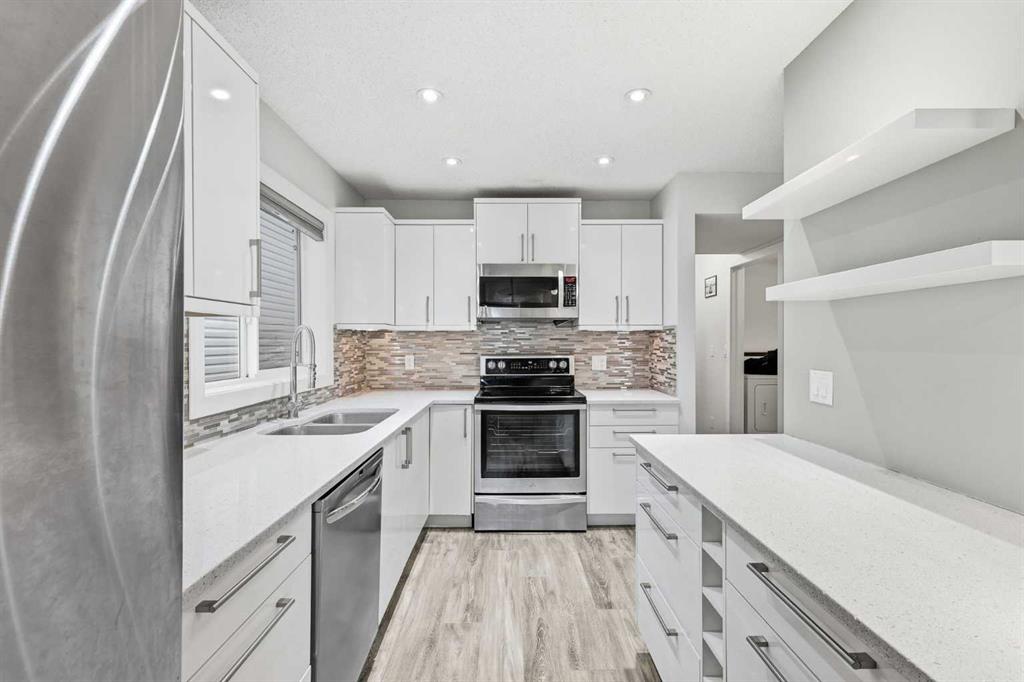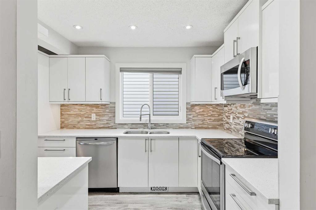 Offering 1,415 sq ft of thoughtfully designed living space, this open and airy two-story townhome is ready for its new owners with an unbeatable inner-city location. The main floor features a bright great room layout with pot lighting, durable laminate flooring, and seamless flow throughout. The timeless white kitchen showcases glossy flat-panel cabinetry, quartz countertops, stainless steel appliances, and a glass tile backsplash — perfect for both everyday living and entertaining. You’ll also find convenient main floor laundry, a 2-piece powder room, and access to a large private front wood deck surrounded by mature trees for added privacy. Upstairs offers three generously sized bedrooms, including a spacious primary retreat. A full bathroom completes this floor. The full undeveloped basement provides excellent storage space and future potential. Assigned parking stall included. Located just steps from the shops, dining, and amenities that make Marda Loop one of Calgary’s most vibrant communities — this is inner-city living at its best.