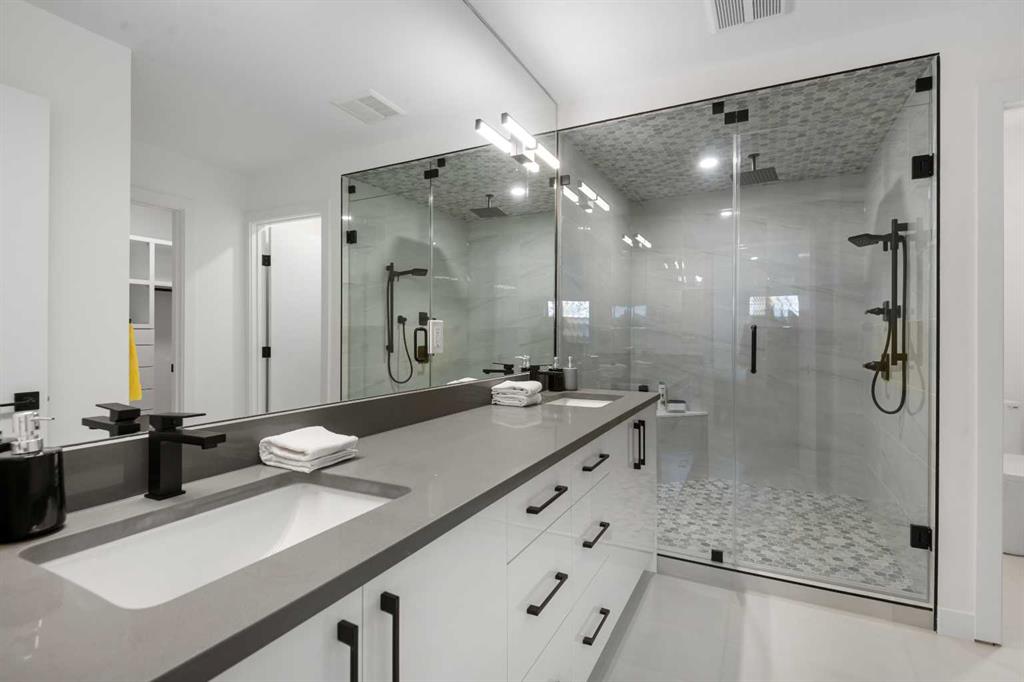 Located on a tree lined street, steps to river park, and the heart of Marda Loop. Featuring over 1800 square feet of space on three levels, and an addtional 570 square feet separate legal basement suite with separate entrance. (Units can be connected to basement directly if desired) High quality modern finishes throuhout this spacious townhouse. Hardwood, quarts, stainless steel appliances, ceramic tiles. Three bedrooms and 3 and a half baths. An excellent main level with living, dining and large kitchen with Island. The upper floor boats two large bedrooms both with large closets and ensuites. The top floor showcases an amazing Primary suite complete with a huge walk in closet, large ensuite with walk in 2 or 3 person shower. Dual sinks, and a full east facing private balcony. Single detached garage for all units. Excellent value as a mortgage helper, home office or just a family suite. Condo plan not yet registered. Can be purchased as a 4 plus 4 unit complex also as an option for investors. A unique complex in a great location.