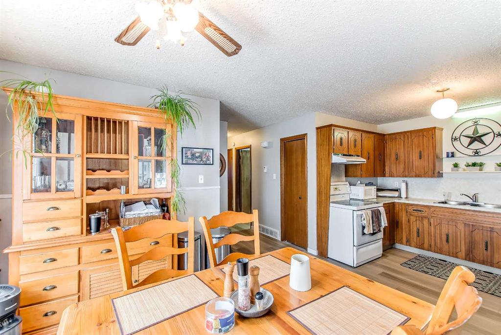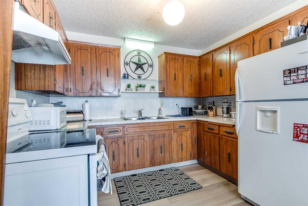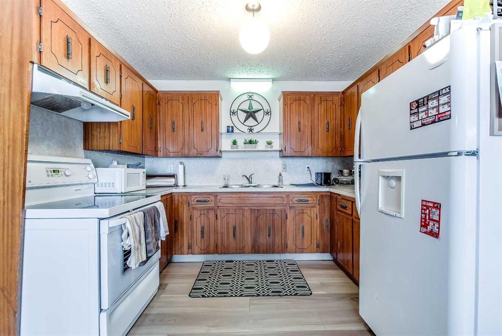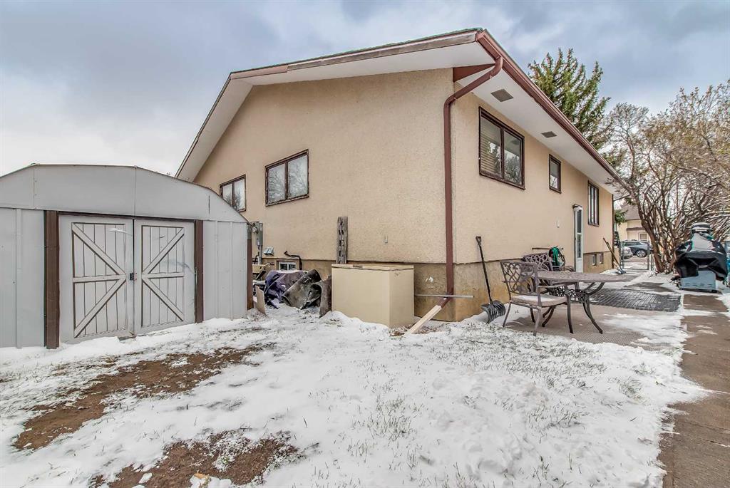 A well maintained half duplex offering comfort, functionality, and a fantastic location backing onto a peaceful park. This 1,006 sq. ft. home features a bright and inviting main floor with modern paint, updated click flooring, and a functional kitchen and dining area complete with fridge, stove, and hood fan. You’ll also find two spacious bedrooms, a 4-piece bathroom, convenient main floor laundry with washer, dryer, and sink, plus ample storage including a broom and linen closet. The fully developed basement expands your living space with a large rec room, two additional bedrooms (windows do not meet current egress requirements), a modern 3-piece bathroom, and plenty of storage throughout. Additional highlights include central air conditioning, two newer toilets, a hot water tank (approximately 5 years old) Outside, enjoy a fully fenced yard with two sheds, RV parking, and a front concrete parking pad. The stucco exterior adds durability and curb appeal, while the park behind provides an added green space to enjoy. This is a fantastic opportunity for first-time buyers, downsizers, or investors looking for a solid property in a great location.