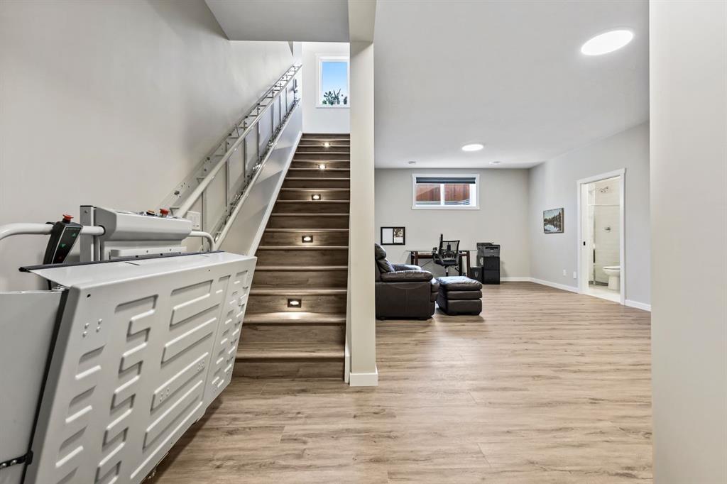 A Fully Customized Mobility Friendly Half-Duplex in the Heart of Cranston! One-of-a-kind opportunity to purchase a full duplex offering exceptional versatility and comfort for multigenerational living. This unique property consists of two attached bungalows, with one side fully customized for assisted mobility and the other (MLS A2262097) offering a more traditional layout enhanced by a garage lift system. It’s the perfect arrangement for families or caregivers seeking proximity, privacy, and adaptability. The mobility adapted bungalow is thoughtfully designed to support wheelchair accessibility throughout, ensuring ease of movement, safety, and independence. The main floor is spacious and bright, with soaring 10-foot ceilings and elegant luxury vinyl plank flooring throughout. Wide hallways, open-concept living areas, and barrier-free transitions create a seamless flow, while a cozy gas fireplace anchors the living room and adds warmth and charm to the space. The kitchen has been specifically modified so someone using a wheelchair can easily access and operate all appliances. A large main floor bedroom includes its own private ensuite with a walk-in tub and shower for maximum comfort and safety. This side of the duplex also features a stair lift connecting the main floor to the lower level, ensuring full access to the entire home. Comfort and wellness are further enhanced by a hospital-grade air filtration system, central air conditioning, and remote-controlled blinds throughout, offering exceptional indoor air quality and year-round climate control. The lower level continues the accessible design with the same stylish flooring and impressive 10-foot ceilings that create a sense of continuity, openness, and light. This level features an expansive recreation room complete with a full wet bar and built-in beverage fridge, making it an ideal space for entertaining. Two additional bedrooms, each equipped with walk-in closets, and a full 4-piece bathroom provide privacy and comfort for family members or guests. Outside, the backyard has been thoughtfully designed for both function and enjoyment. It includes RV parking, a fenced-in dog run, garden boxes, and a large deck, creating a private and versatile outdoor space for recreation, gardening, and pets. A gently sloped backyard ramp ensures accessibility from the home to the outdoor areas, further supporting barrier-free living. A fire-rated door discreetly connects the two garages, allowing convenient yet secure access between the two bungalows, and it can easily be removed if the two units are sold separately. The second bungalow mirrors the overall layout and also offers central air conditioning and a garage with a lift system, while retaining standard interior features, ideal for family members or guests who do not require accessibility modifications. This one-of-a-kind property combines thoughtful accessibility, modern comfort, and multigenerational flexibility — a rare opportunity in the heart of Cranston.