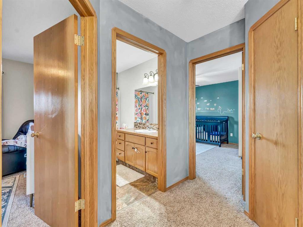 Welcome to this functional two-storey home located in a quiet cul-de-sac. With 4 bedrooms and 4 bathrooms, this home is ideal for families. The main floor features an open-concept layout with updated flooring, a bright kitchen and dining area complete with stainless appliances, and a corner pantry. This space flows nicely into the living room where you will find a cozy gas fireplace surrounded by built in bookshelves — the perfect spot for relaxing or entertaining. The convenience of main floor laundry can also be found on this level adjacent to the garage entry. Upstairs there are 3 generously sized bedrooms, including the primary suite with a walk-in closet and private 3-piece ensuite. The lower level provides a great family rec room, bonus nook possibly for office space, a large 4th bedroom, and another full bathroom — ideal for guests or teens, as well as the bonus of a brand new HWT (Nov 2025). Step outside to enjoy the fully fenced and landscaped yard, complete with underground sprinklers, a handy shed, gas line for your BBQ, and a covered deck for year-round use. There's also ample parking space, including RV parking and an attached double garage. Situated close to parks, walking trails, schools, and playgrounds, this home is a solid choice for family living. Don’t miss this opportunity to get into a great home in a fantastic neighborhood!