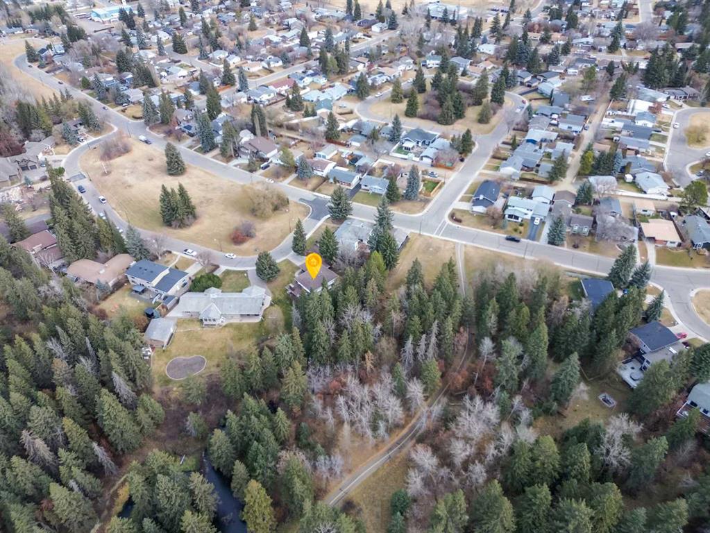 Situated on Piper Creek escarpment , in one of Red Deers most coveted neighborhoods , #10 ~ Sunnyside Crescent offers a rare opportunity to own a truly remarkable and distinctive property. This gem was custom designed and built by F.A Wilson and Sons of Calgary in 1965 and has been meticulously maintained ever since. It has been home to only 2 families -- the second being the present seller who has lived here for 58 years. This home of 2500 sq ft features the most functional floor plan. The spacious front entry flows seamlessly into a thoughtfully designed living space that is middle ground between traditional " open concept" and "broken open concept". It offers both a separation and an easy flow throughout the living space yet provides some privacy and the hiding of visual kitchen preparation and chaos. Level one consists of a huge kitchen with custom cabinets and newer appliances. Also included is an eat-in area, den , main floor laundry and 1/2 bathroom. Dining room faces Piper Creek Ravine and Bower Woods. It is of generous size and leads out to deck, firepit and great outdoor living. Living room with fireplace and large bow window faces a mature landscaped green reserve and often friendly deer surveying the neighborhood. Second floor features 5 Bedrooms with extensive closet space and built-ins, 5 pc bathroom and 3 pc ensuite. All rooms,with the exceptions of primary bedroom and living room, bath and foyer have 3/4" hardwood flooring ,finished on site. Downstairs is finished with a large recreation room, fireplace , bar and an additional flex room for further development as needed. A wine room(former cold storage) with shelving and utility room complete this level. The excellent footprint of this home is exceptional for both family living and grand entertaining. Notable upgrades throughout the years have been new windows, kitchen, siding, front aggregate walkway and a new sewer line in 2005. if location is high on your list this property cannot be beat! Just out your back door is entrance to Red Deer's extensive trail system and a 10 minute to Bower mall and South Hill shopping and restaurants, schools, play grounds, churches, grocery shopping, access to QE2 are just minutes away. Located in an area where many homes are being beautifully up-graded this property stands out as a great opportunity to live in Sunnybrook . With solid structure, spacious layout, thoughtful design, great bones and unsurpassed location, #10 Sunnyside Crescent is the answer to your "forever home."
