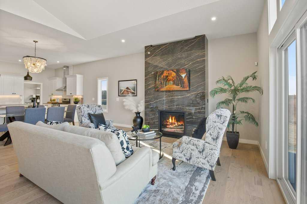 Lakefront is Calling! Welcome to this beautiful, brand new 1,767 ft ² (3,079 ft² fully developed) bi-level custom lakefront home nestled on a .25 Acre fully landscaped lot in the new exclusive Twin Rose neighborhood, in Jarvis Bay, on the sunny side of the shores of Sylvan Lake. Now is your opportunity to live on the lake! This charming community offers a natural setting with manicured walkways leading down to a beautiful private dock featuring your own boat slip. Imagine just a short walk to your boat for fishing, water sports, swimming, or just playing at your beautiful private beach. This home features a fantastic, functional floor plan with an abundance of upgrades throughout. The handsome hardy board exterior is adorned with timber frame beams and stone accents, providing that perfect lake feel. The unique triple car garage offers plenty of space for your cars and toys, featuring a 12 ft. ceiling allowing for a car lift or additional storage. Greet guests at your door beneath the covered veranda leading them to the spacious entry. The stylish, curved stairway precedes the airy, open upper floor plan. You will be captivated by the main living area, with a vaulted ceiling and stunning view through the wall of sliding glass doors. The kitchen features modern cabinetry with many enhancements, an expansive island complete with quartz countertops, and top-of-the-line appliances. Enter through your garage and enjoy easy access through the butler’s pantry/laundry room/coffee center. The great room provides a cozy space for relaxing or entertaining in front of the beautiful gas fireplace, while taking in the views of Sylvan Lake. The dining room anchors the space with ample seating for get-togethers with family and friends. Dine inside or step out onto the expansive 450 ft² deck with glass railings and soak up the warmth of the west-facing sunshine. Sip a glass of wine while appreciating the famous Sylvan sunsets. At the end of the day, escape to the spacious main floor master suite. Boasting a walk-through closet and a luxurious 5-piece ensuite with his and hers vanities and sinks next to the gorgeous glass-enclosed shower. The curved staircase leads you down to the lower level. The large family room offers a fabulous space for hanging out with friends or cuddling up for movie nights. Entertain with ease at your wet bar, which compliments an eye-catching sit-up island and wine cellar. Enjoy the additional laundry appliances on this level for the convenience of your company or family members. In addition, there are two bedrooms both featuring their own 4-piece ensuite! The fully landscaped lot features an underground sprinkler system, allowing you to enjoy your lake property with less upkeep. Time is ticking…take a look while Twin Rose lots are still available. Other lots with varying price points available.