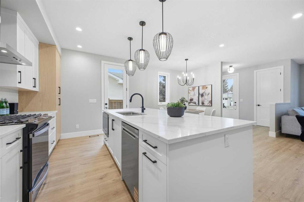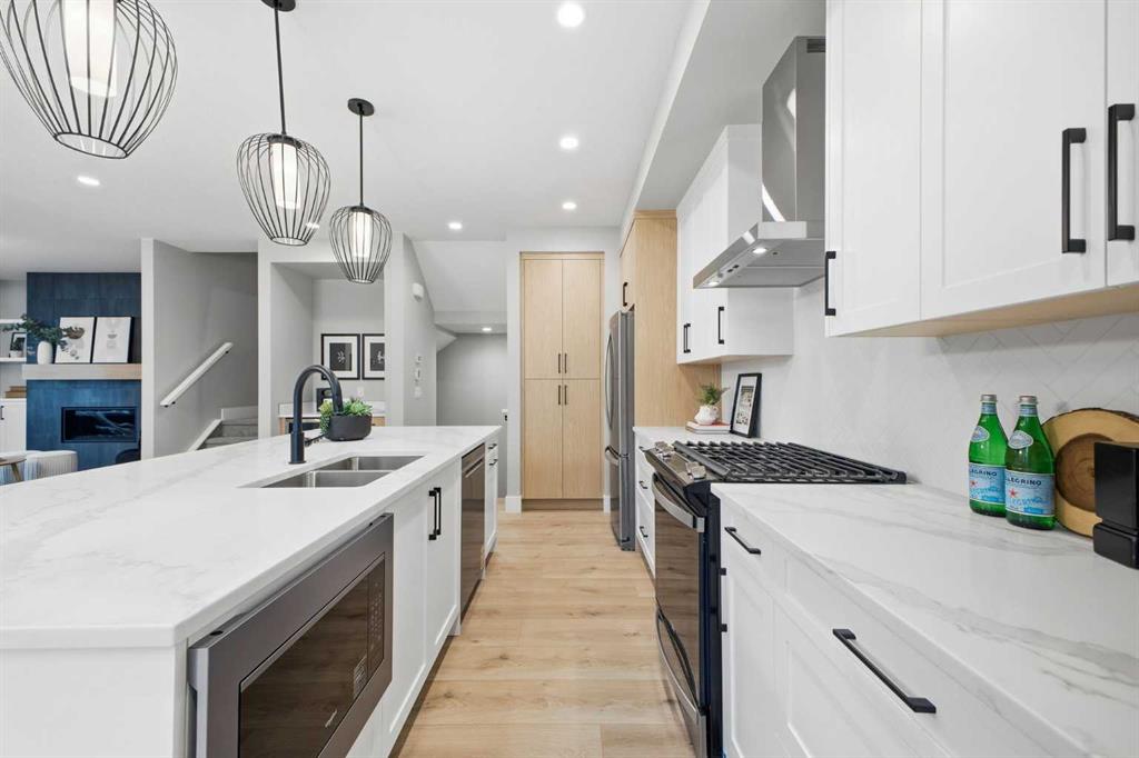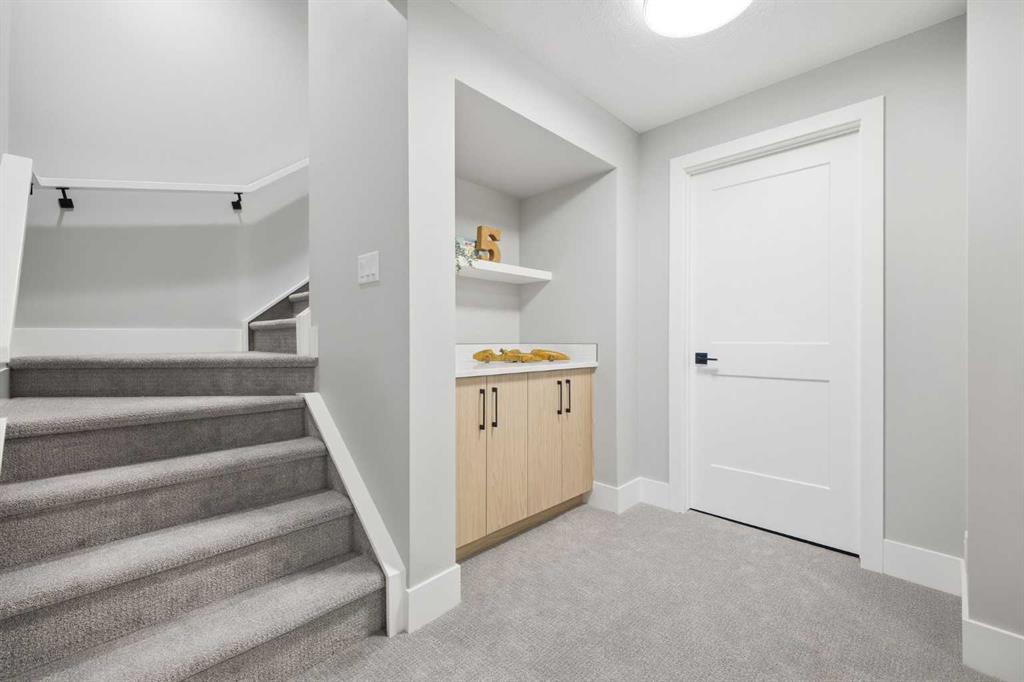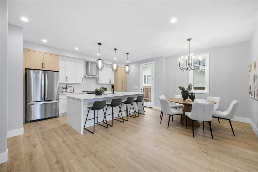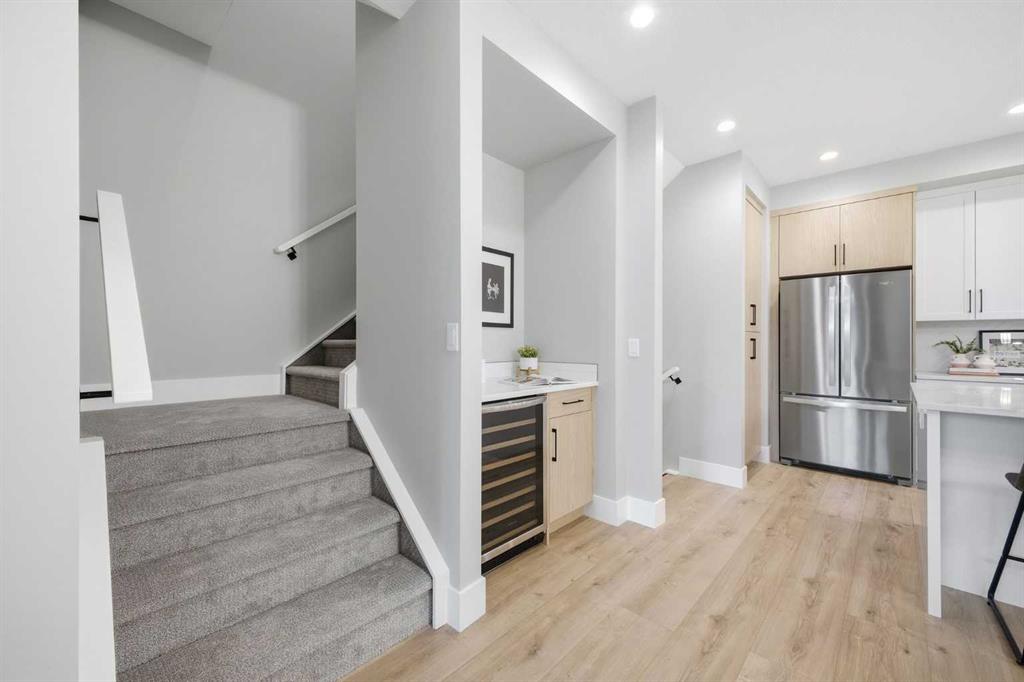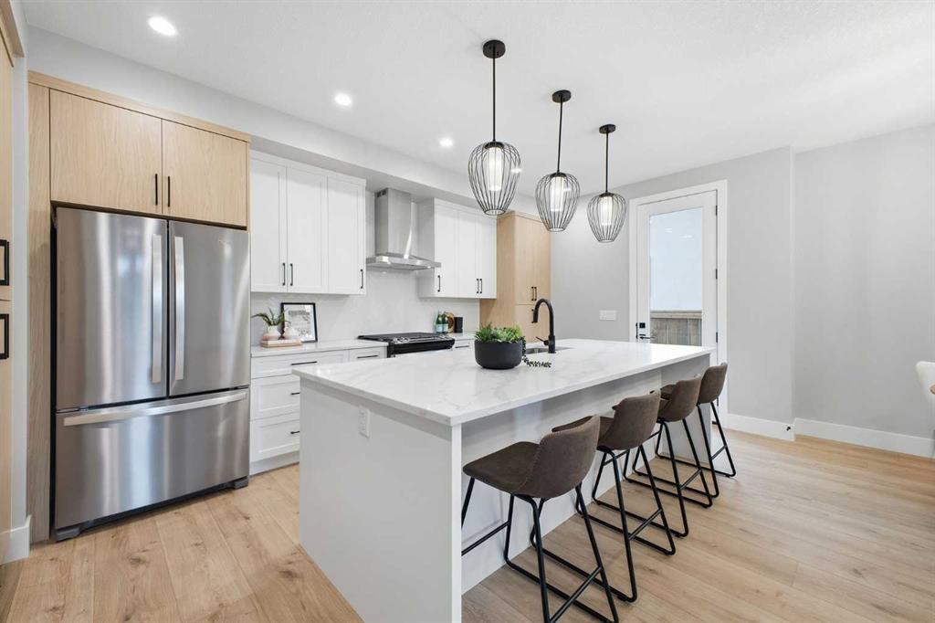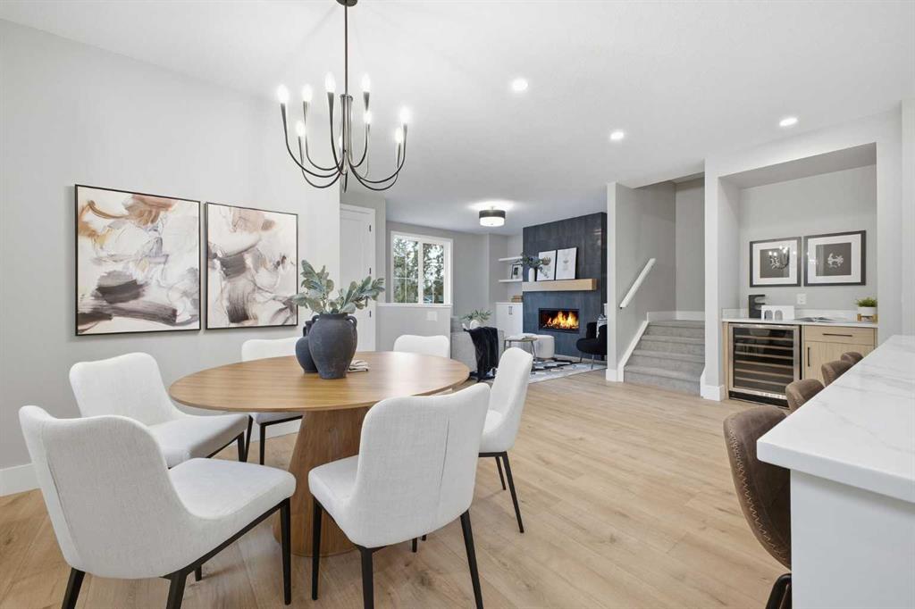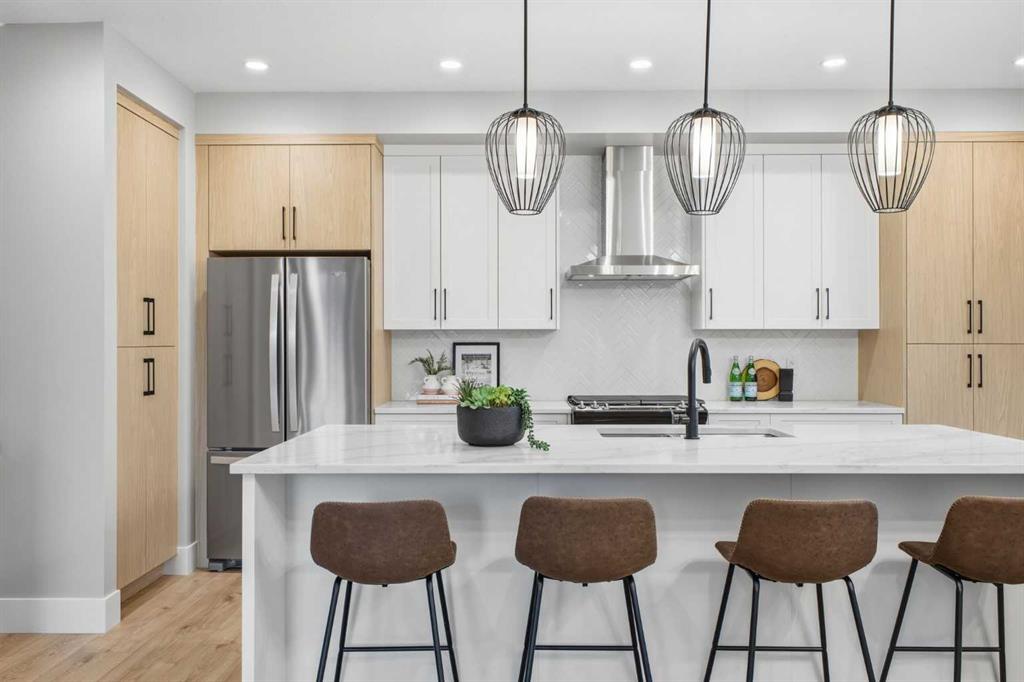 Beautifully designed and brand new, this 3+1 bedroom townhome built by Huber Homes in desirable Westgate offers nearly 2200 sq. ft. of developed living space with high-end finishes and modern comforts throughout! The open main level showcases, recessed lighting and a bright, airy floor plan. The kitchen is a true highlight, featuring a central island with eating bar, contrasting cabinetry, stainless steel appliances and a stylish dry bar. A spacious dining area and inviting living room with gas fireplace complete the main floor — the perfect layout for everyday living and entertaining alike. Upstairs you’ll find 3 comfortable bedrooms, including a relaxing primary retreat with walk-in closet and spa-inspired ensuite with double sinks and contemporary finishes. Two good sized bedrooms, a full bath and conveniently located laundry room complete this level. The fully finished basement extends your living space with a generous family/media room, a fourth bedroom and a full bath — ideal for guests, teens or a home office setup. Additional highlights include a front deck with BBQ gas line, a single detached garage, and thoughtful design inside and out. Located just steps from schools, shopping, parks and transit, this home combines style, function and location in one of Calgary’s sought-after southwest communities.