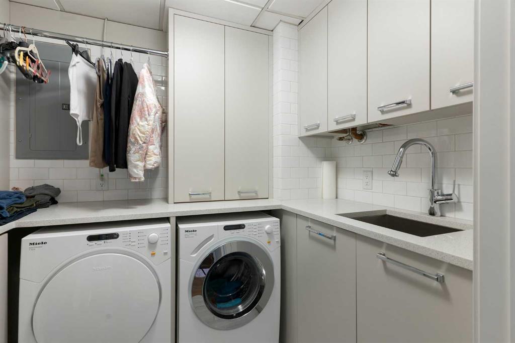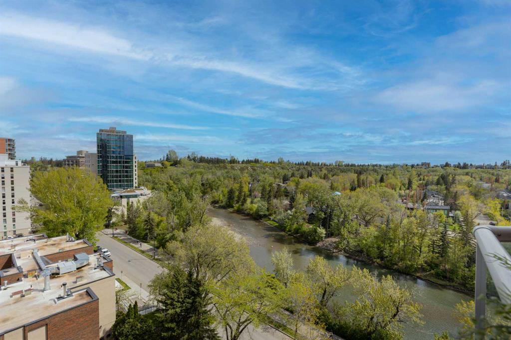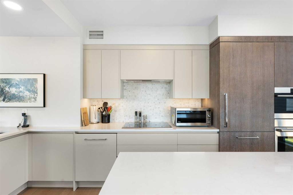 Thinking about downsizing but everything is too small? Welcome to The Grandview, where luxury living meets breathtaking views in the heart of Calgary's Mission neighborhood. This spacious 2 bedroom, 2 bathroom, 2 underground parking stalls plus DEN unit has had a half a million dollar renovation completed by Paul Lavoie Interior Design. Every inch of the unit has been updated. The custom kitchen boasts quartz countertops and top-of-the-line appliances, including brands such as Wolf, Sub-Zero, and Miele, pantry and island creating a chef's haven. All custom cabinets, millwork and closet organizers throughout the condo were completed by Empire Kitchen and Bath. The bright spacious living room has River Valley views from every window, a custom fireplace plus access to 2 huge decks. The dining room features custom built-in storage. The primary suite is a sanctuary of its own featuring downtown views, spacious walk-in closet and luxurious 5 pc master bathroom that includes a huge walk-in shower, double vanities and impressive stand alone tub. The 2nd bedroom is adjacent to the main bathroom. The den has a built-in desk and storage plus lots of flex space for a home gym. Enjoy beautiful engineered hardwood throughout the main living area. Other features include: Full laundry room with sink, grand foyer, in-suite storage & separate storage room plus Control 4 home automation. The Grandview boasts a range of amenities including The Lang House, a heritage home perfect for hosting, as well as another party room in the complex with a full kitchen that is great for social gatherings. The outdoor courtyard is great for BBQ's and enjoying nature. Enjoy the best 24/7 concierge service, 2 elevators, 2 guest suites, visitor parking and car wash. The location is second to none...easy walking distance to the endless amenities on 4th street, the Glencoe Club and Safeway. Right outside your front door you have the Elbow River walking path. Don't miss this special opportunity, carefree lock and go living.
