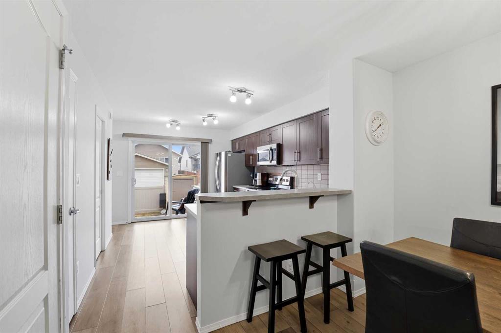 Very well cared for townhome in the popular Clearview Ridge area. This home has grey vinyl plank flooring throughout the living, dining and kitchen which features chocolate coloured cabinets, a full tile backsplash, stainless steel appliances and a walk in pantry. There is a 2 pce bath and patio doors out to the yard. The shed is included and there's a vinyl fence. Upstairs has 2 large bedrooms- the primary has a walk in closet and a cheater door to the 4 pce bath. Downstairs is developed with a nice sized family room, a 3rd bedroom w/ a huge window and a 4 pce bath. High efficient furnace and an hvac system.