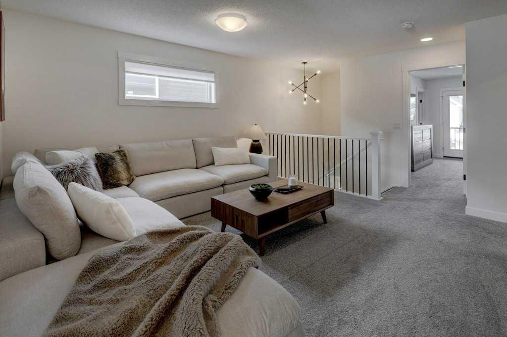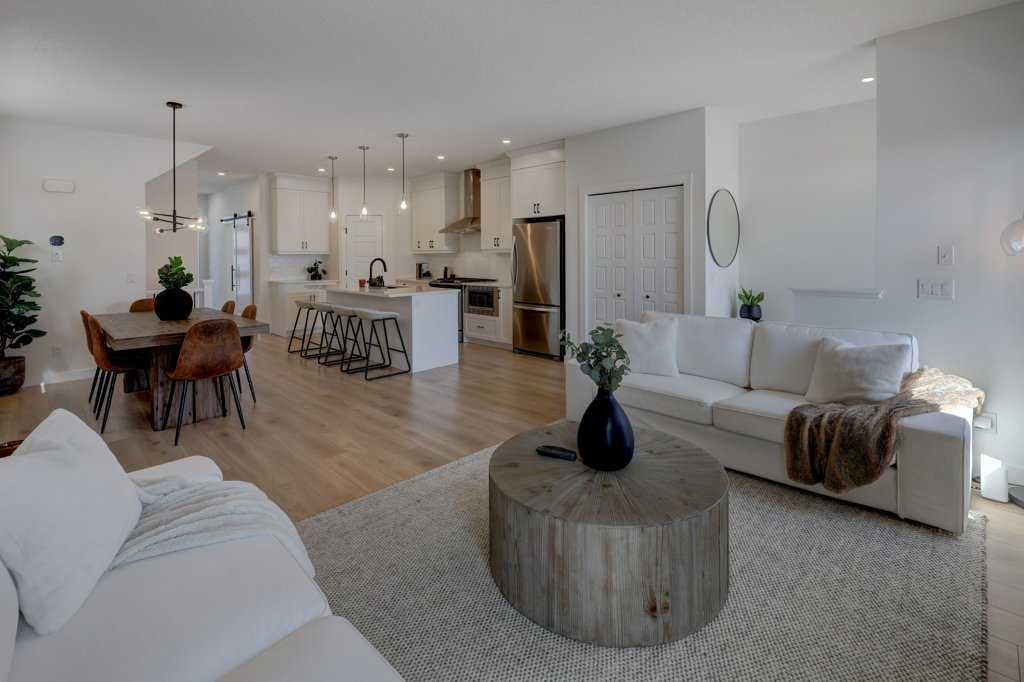 A home where everyday life comes together the way you have always imagined, set in the sought after community of Chinook Gate. Step inside to a bright, open main floor with 9' ceilings and a layout that brings people together. The kitchen sits at the center, finished with quartz countertops, stainless steel appliances, a corner pantry, and a large island where meals, conversations, and daily routines naturally unfold. The adjoining dining and living areas create a comfortable, connected space, anchored by a warm gas fireplace and filled with natural light. A main floor office with a barn door offers a quiet place to work or focus, along with a convenient 2-piece bathroom. Upstairs, a centrally located bonus room welcomes you from the stairs and creates separation between spaces, adding flexibility for family life. The primary suite offers a calm retreat with a walk in closet and a well finished ensuite featuring dual sinks, quartz counters, tile flooring, and an oversized tiled shower. Step out directly to your 5x15 balcony. Two additional bedrooms, a full bathroom, and an upper level laundry room complete the second floor. The unfinished basement is ready for your ideas, offering space to grow as your needs evolve. Outside, the fully landscaped and fenced yard extends your living space with a 10'x20' deck, perfect for relaxing or entertaining. The heated double detached garage is finished with the same level of detail has the home. The space is brightly lit and shows off its epoxy floor. Providing excellent space for vehicles, storage, and hobbies. Located on a quiet street just steps to parks, pathways, and Chinook Winds Regional Park, this home also benefits from exciting growth in the community, including a newly announced K to 9 school. A thoughtful home in a community designed for connection, convenience, and long term value. Your next chapter starts here.