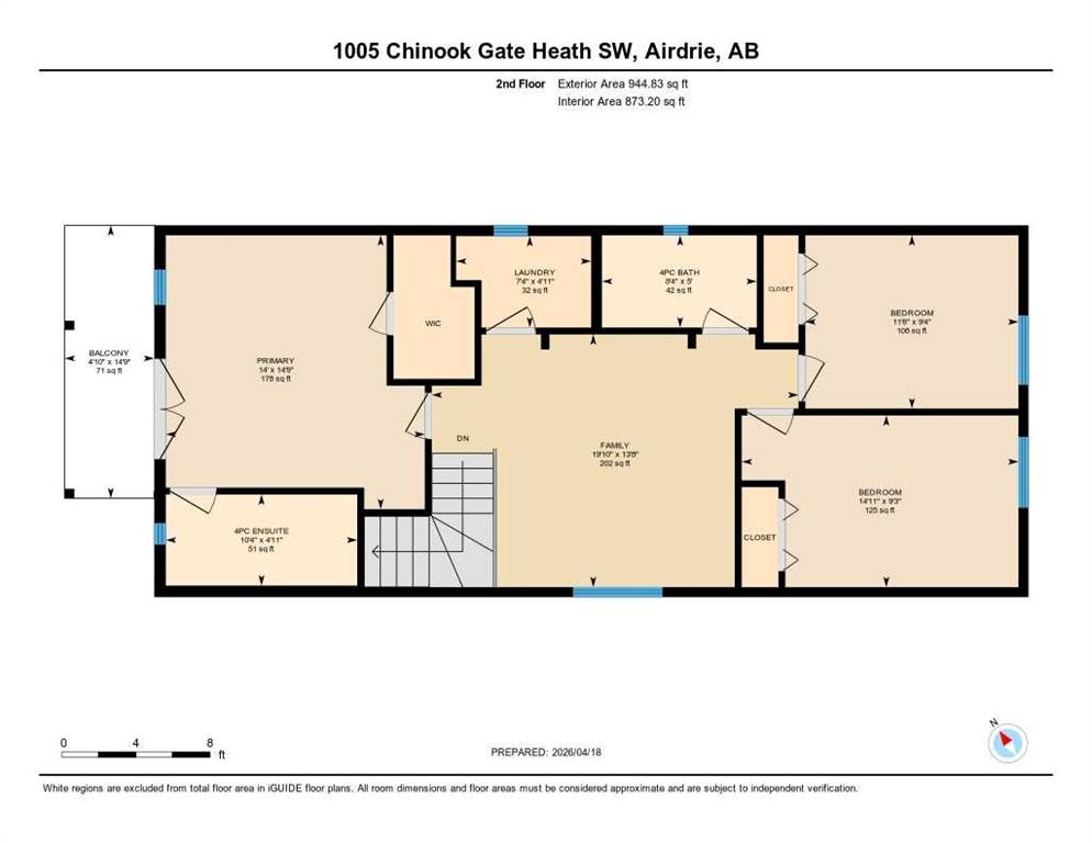| Bedroom - Primary | 14`9" x 14`0" | Second |