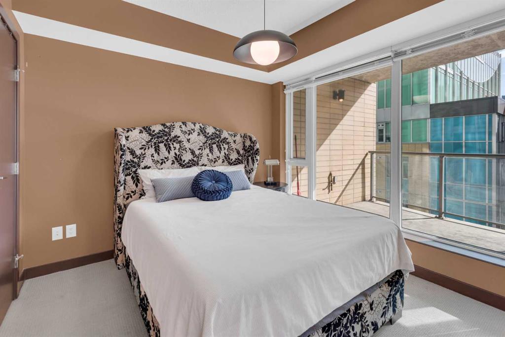 Welcome to this stunning 2-bed, 2-bath corner unit at Solaire. The View: Floor-to-ceiling windows with a sun-drenched south exposure. The Kitchen: A modern masterpiece with European appliances and granite finishes. The Suite: Upgraded lighting, a cozy fireplace, and a primary retreat with a 5-piece ensuite and walk-in closet. The Perks: SE-facing balcony, oversized end-unit parking, and central AC. Enjoy "lock-and-go" living with a full-service concierge, fitness room, and car wash bay. Located just steps from the Bow River pathways and downtown’s top dining. Live where luxury meets convenience!