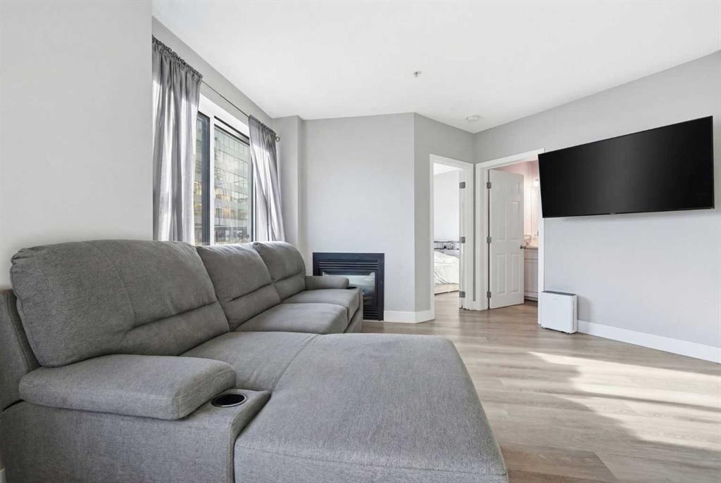 Welcome to this beautifully updated, south-facing ground-level condo in the heart of downtown Calgary — a rare offering with no neighbors on either side, as the only ground-floor unit in the building. Enjoy incredible natural light all day with two south-facing living room windows, a south-facing bedroom window, and a south-facing private balcony. The open-concept layout features stylish LVP flooring, quartz countertops, stainless steel appliances, in-suite laundry, and a cozy double-sided fireplace connecting the living space and bedroom. This well-maintained unit offers modern finishes throughout and a smart layout that maximizes both comfort and functionality — perfect for professionals, investors, or first-time buyers. Located just steps from BMO Centre and the iconic Calgary Stampede Grounds, you’ll love being close to transit, dining, entertainment, and everything downtown has to offer. Well-priced, move-in ready, and in a fantastic central location — this is urban living at its best.