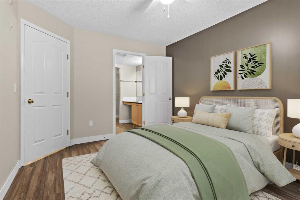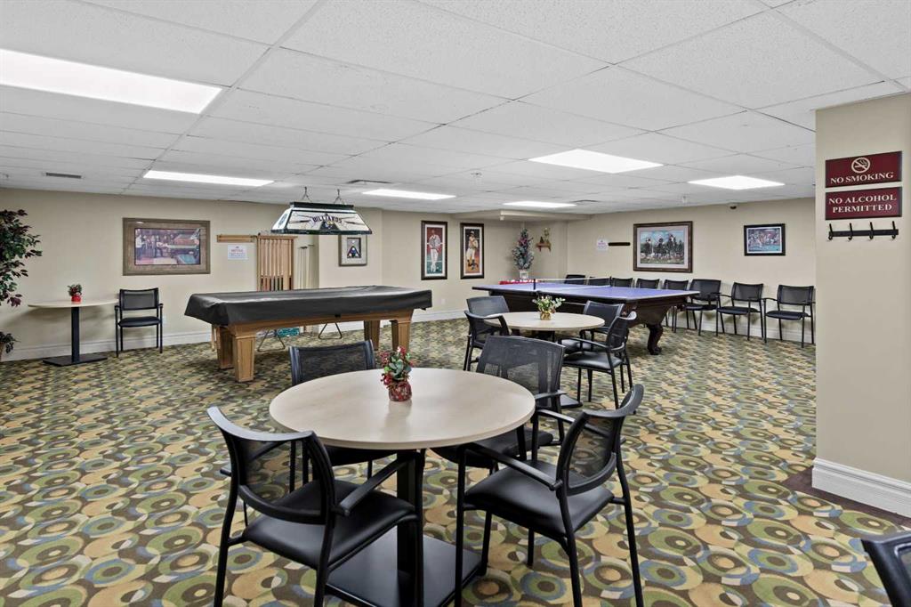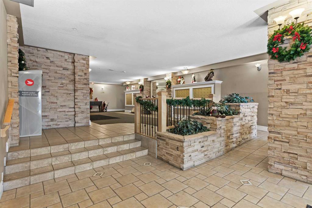 Step into this bright and inviting main floor 2-bedroom, 2-bathroom condo in the highly sought-after Pavilions at Rocky Ridge. Thoughtfully designed with a split-bedroom layout for privacy, this property features an open concept kitchen and living area with a cozy gas fireplace, LVP flooring, large windows, and direct access to your private balcony - perfect for morning coffee or evening relaxation. Main floor living means no elevator waits and easy outdoor access — ideal for quick walks with Fido (just don't forget to get board approval!). The spacious primary bedroom includes a walk-in closet and full ensuite, while the second bedroom is adjacent to a full four piece bath. Enjoy the ease of in-suite laundry with additional storage, the patio with BBQ gas line and secured storage shed, and titled underground parking. Residents enjoy outstanding onsite amenities, including a fitness center, theatre room, games room, meeting space, library, and even an onsite hair salon—an appealing convenience for seniors and busy professionals alike. Surrounded by walking paths, greenspace, and mountain views, the setting is as peaceful as it is practical. With unbeatable access to shopping, transit, and major roadways, this condo is an excellent choice for investors, downsizers, seniors, first-time buyers, and young professionals seeking comfort, convenience, and a vibrant community.