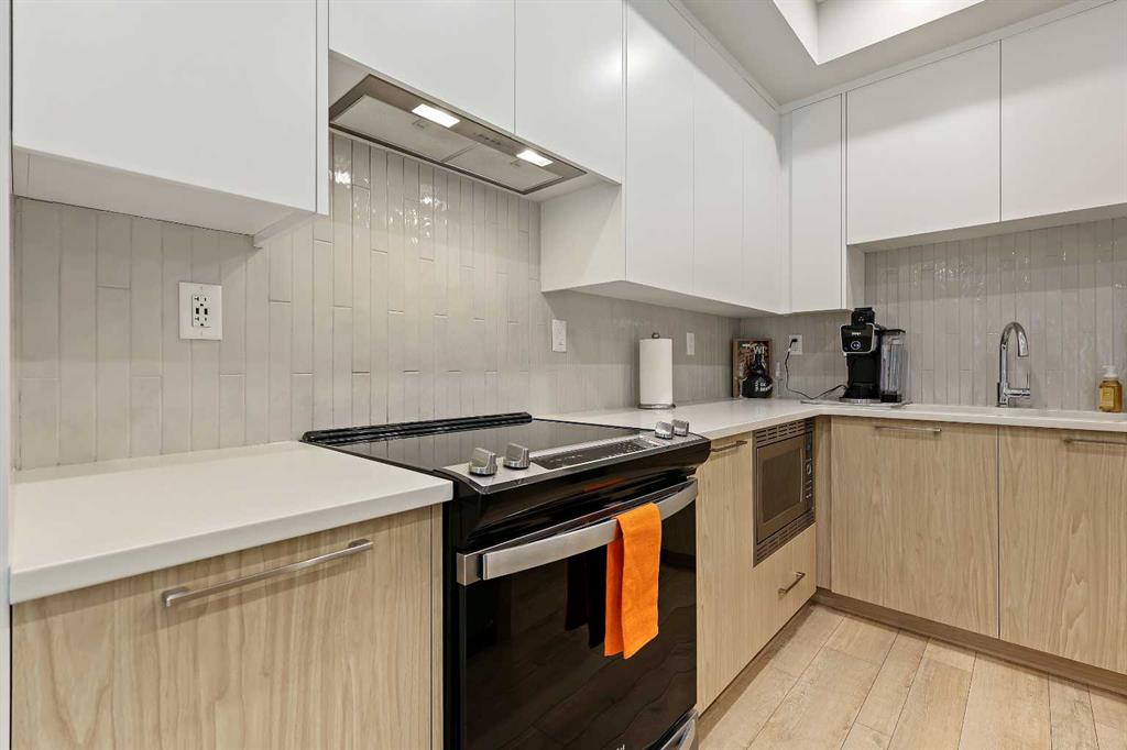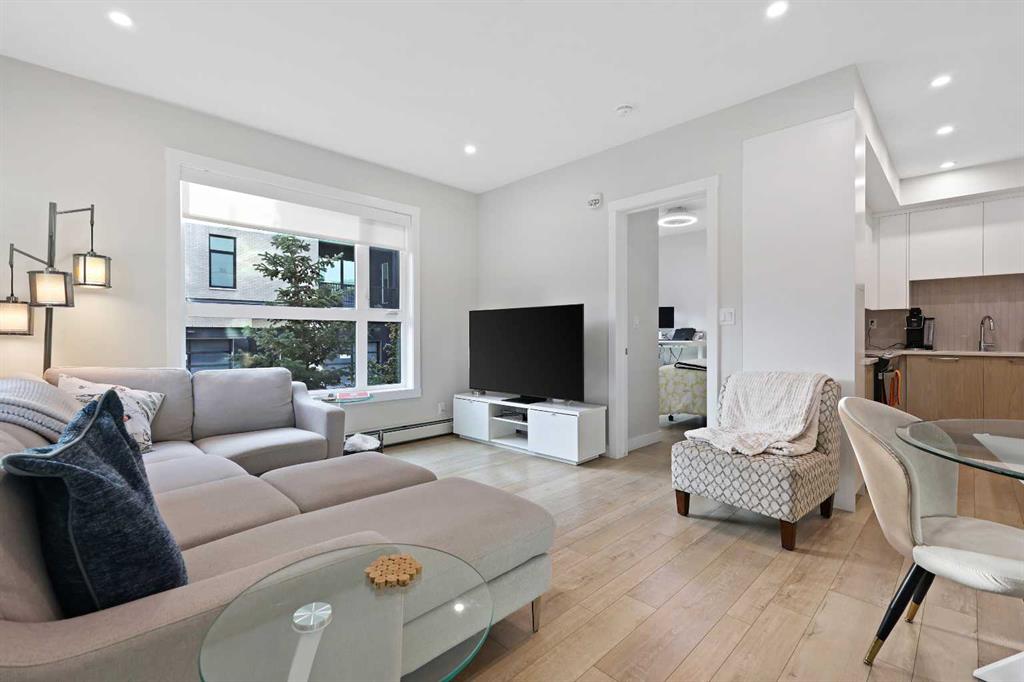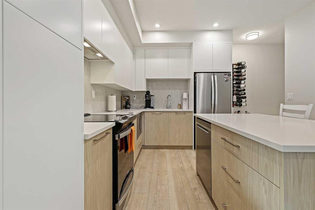 Welcome to Capella in Calgary’s University District! This beautiful main-floor condo perfectly combines modern style, comfort, and convenience in one of the city’s most walkable and desirable communities. Offering nearly 1,000 sq. ft. of bright, open living space, this two-bedroom, two-bathroom home provides an abundance of natural light thanks to its sunny southern exposure. Step out to your spacious south-facing patio, ideal for entertaining family and friends, or just relaxing and enjoying warm, summer nights. Inside, the inviting open-concept layout features a sleek, contemporary kitchen with quartz countertops, a large island with seating, built-in microwave and hood fan, an electric range, and a pantry for extra storage. The kitchen flows effortlessly into the dining and living areas—perfect for entertaining guests or unwinding after a long day. The spacious primary suite features a 5-piece ensuite, including dual vanities, a walk-in shower, soaker tub and private water closet. This home also comes with a good-size second bedroom, a full public/guest bathroom with a tub/shower combo, and a laundry room with space for shelving complete the well-designed layout. Also included with this home: an in-suite wall air conditioning unit, two upgraded ceiling fans, two titled heated underground parking stalls, two titled storage lockers, and access to the on-site fitness center. Enjoy the very best of the University District lifestyle—steps from parks, walking paths, Market Mall, U of C, Alberta Children’s and Foothills Hospitals, and local favourites like OEB Breakfast Co., Village Ice Cream, Monogram Coffee, The Canadian Brewhouse, Save-On-Foods plus so much more! Whether you are downsizing, investing, or seeking a contemporary, low-maintenance home in a thriving community, this home is ready to welcome you!
