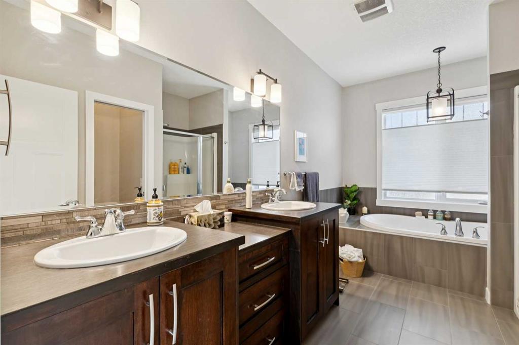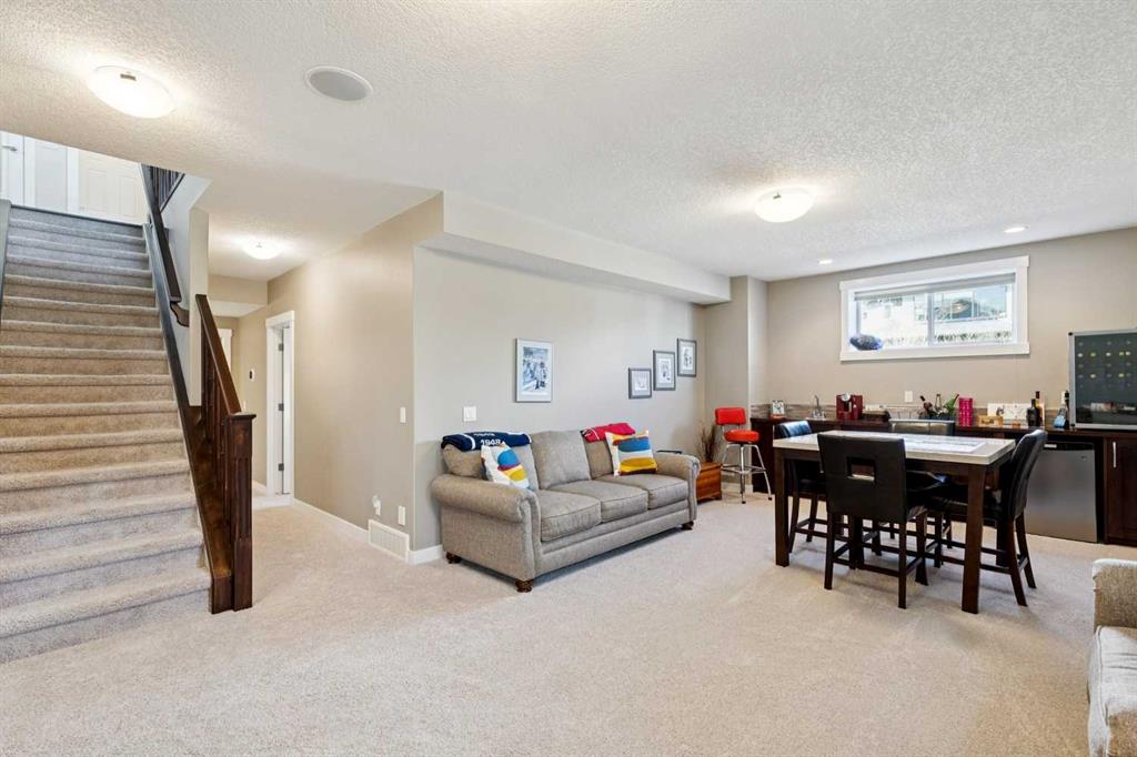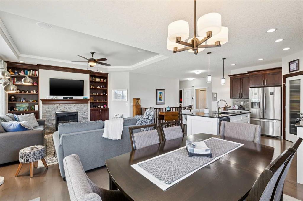 This immaculate high-end bungalow offers a well-planned layout, quality finishes, and a long list of upgrades throughout. Features include hardwood floors, high ceilings, extensive built-ins, and large triple-pane low-E windows that bring in excellent natural light. The open-concept main living area includes a fireplace with a built-in maple wall unit, while the kitchen features granite countertops, an undermount sink, maple cabinetry, and a bright eating nook with deck access. A front flex room or home office enjoys a mountain view, and the main floor also includes laundry with built-in cabinetry. The spacious primary bedroom offers a large walk-in closet and a well-appointed 5-piece ensuite. The fully finished basement features 9’ ceilings, large windows, a generous family room with space for a pool table, two additional bedrooms, a craft room, and a full bathroom. Energy-efficient details include a dual-zone high-efficiency furnace, low-flow fixtures, and R-50 attic insulation. Set on a large corner lot with a 24’ deep garage suitable for a truck, this is a clean, comfortable, and thoughtfully upgraded home.