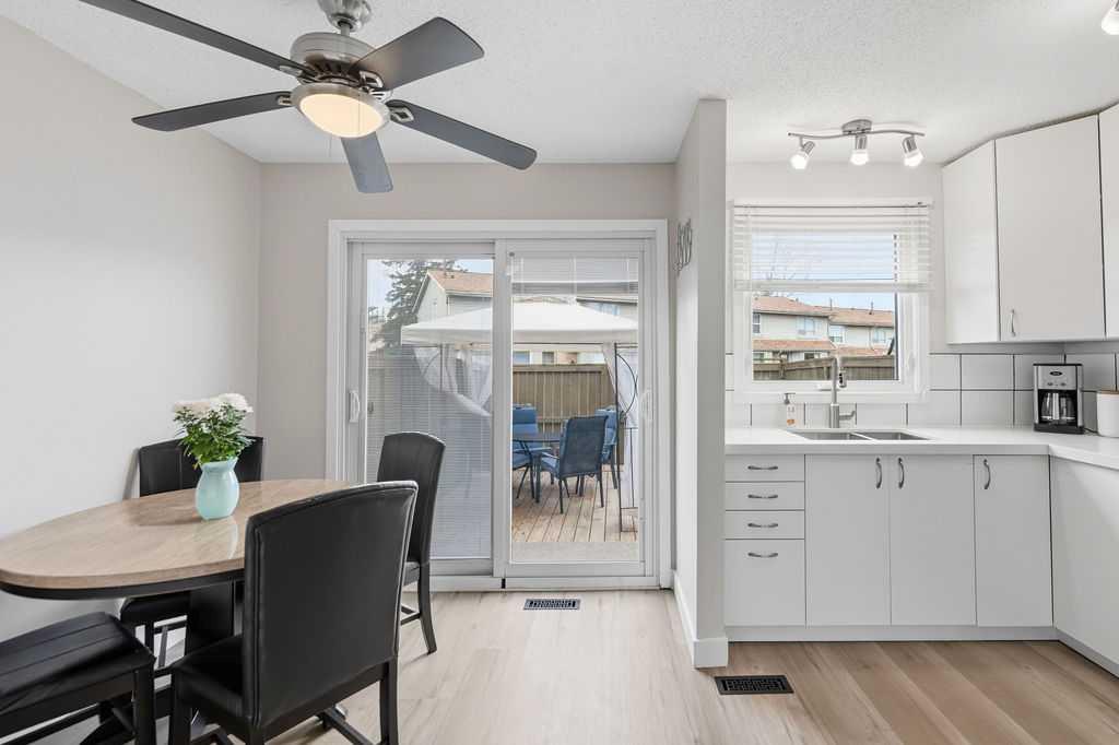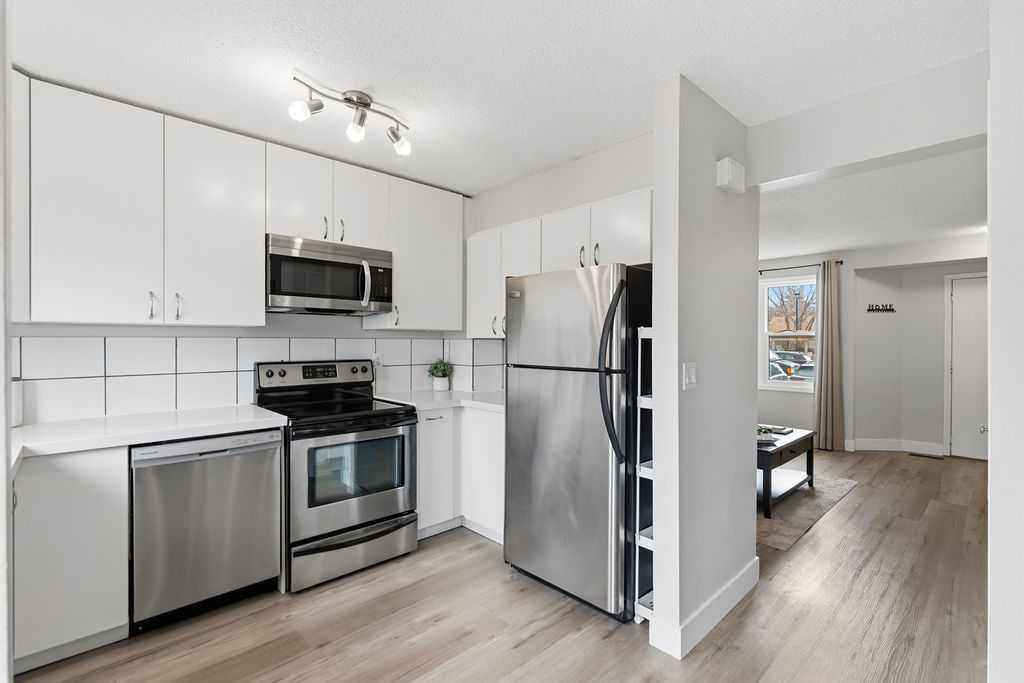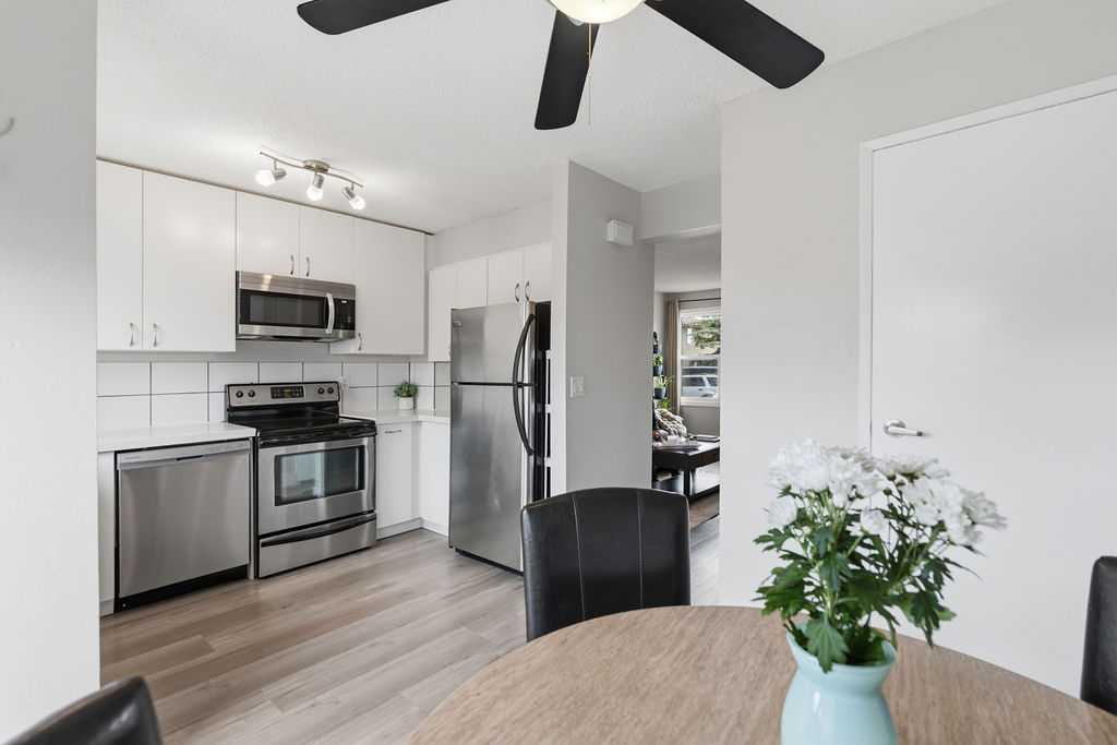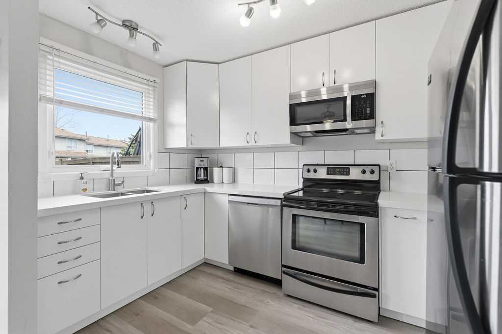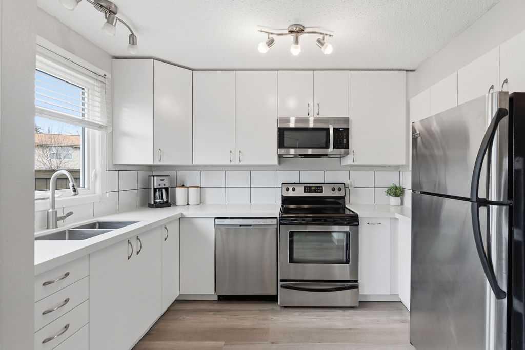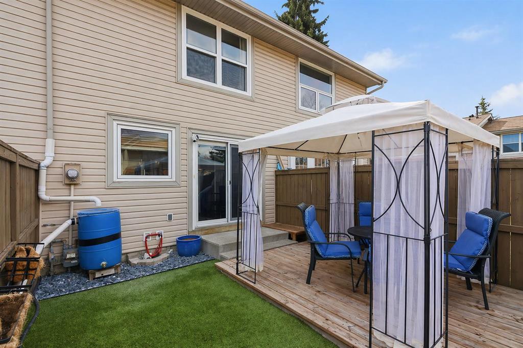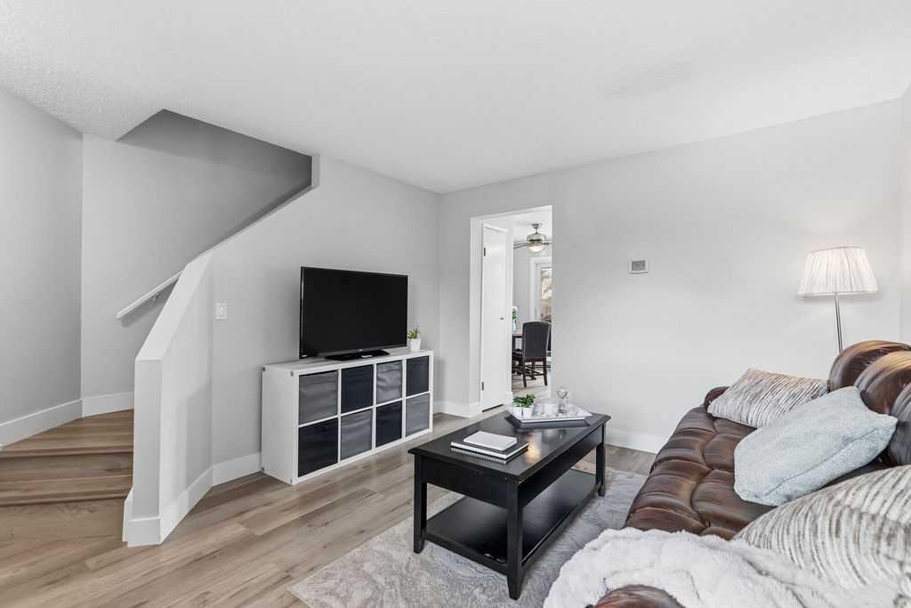 Looking for an UPDATED, PET-FRIENDLY condo with LOW CONDO FEES, a HEALTHY RESERVE FUND, and a sunny WEST-FACING BACKYARD? This is the one. Welcome to Queensland Park—where lifestyle and value come together. Step inside to a bright, inviting main floor that seamlessly connects the living and dining spaces, anchored by a RECENTLY RENOVATED KITCHEN featuring ALL NEW APPLIANCES (2025), LUXURY VINYL PLANK FLOORING, and UPDATED LIGHTING throughout. Out back, you’ll find a private, sun-soaked retreat complete with a DECK, GAZEBO, ASTRO TURF, and RAIN BARREL—designed for low maintenance and maximum enjoyment. Backing onto a PARK and just steps to the OFF-LEASH DOG PARK, transit, and everyday amenities, this location checks all the boxes. Plus, you’re just minutes from Fish Creek Provincial Park and Sikome Lake. Upstairs, the LUXURY VINYL PLANK FLOORING continues into two spacious bedrooms, both equipped with CUSTOM CLOSET ORGANIZERS and NEW CEILING FANS. The PRIMARY BEDROOM offers a unique touch with a PULL-DOWN PROJECTOR SCREEN (PROJECTOR INCLUDED)—your own private movie night setup. The upper level is completed by a FULLY RENOVATED 4-PIECE BATHROOM featuring a NEW TOILET, QUARTZ COUNTERS, EXTRA-DEEP SOAKER TUB, and MODERN LIGHTING. The fully finished basement provides additional living space, a LARGE STORAGE AREA, and a DEEP FREEZE, plus an UNDER-THE-RADAR BONUS FEATURE you’ll want to see in person. This home also offers peace of mind with COPPER & PEX PLUMBING, NEW WINDOWS & DOORS (2023), a RECENTLY SERVICED FURNACE, and FRESHLY CLEANED DUCTS—showing true pride of ownership throughout. Move-in ready and packed with value—this is one you don’t want to miss.