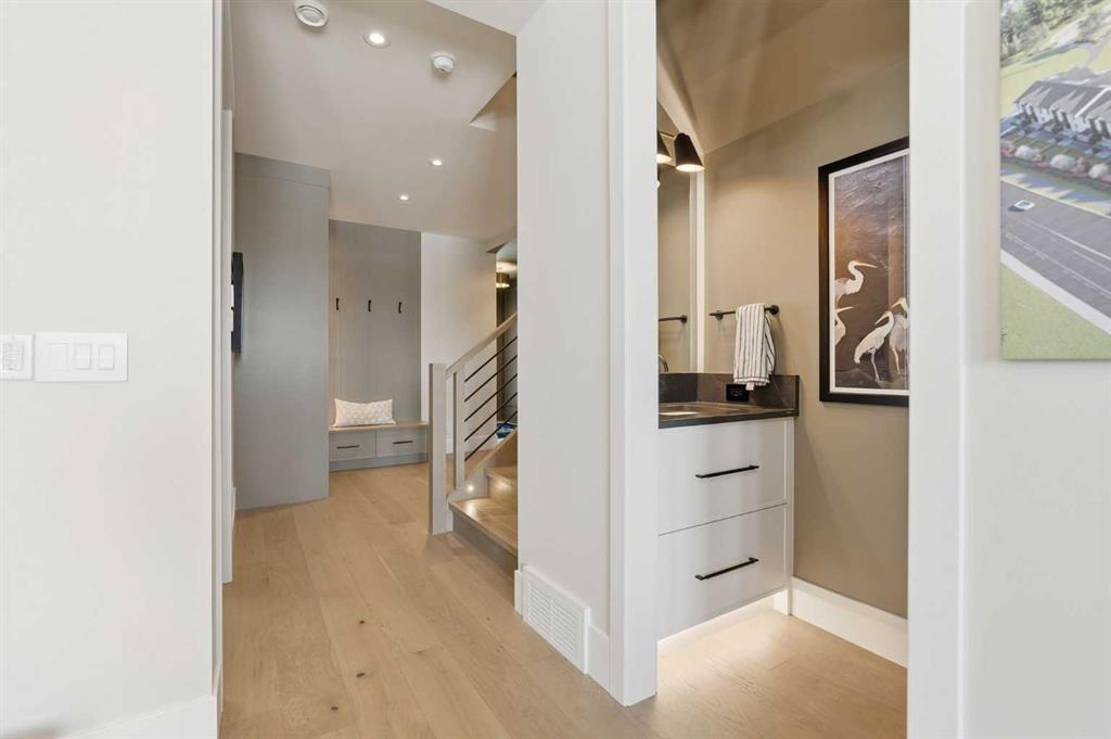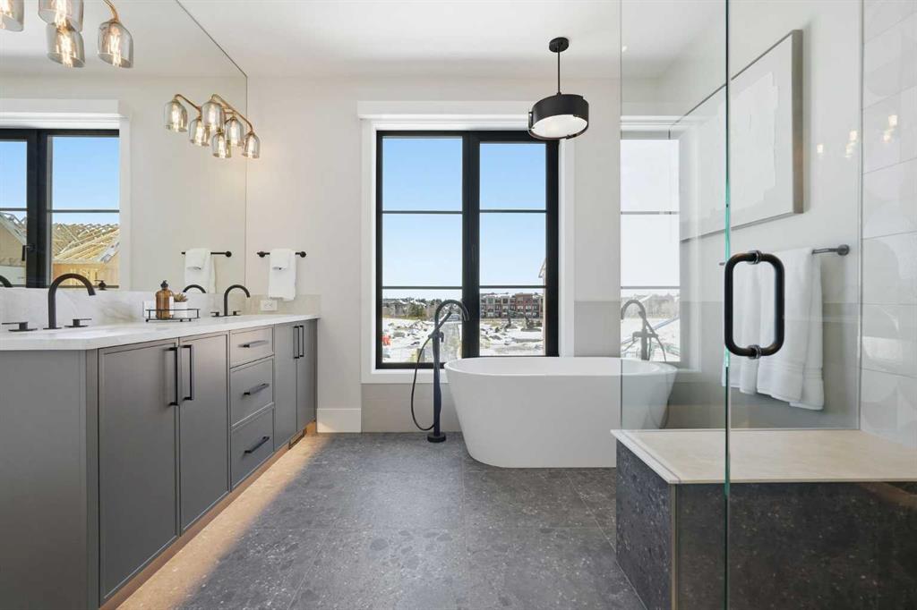 OPEN HOUSE SATURDAY, APRIL 25TH & SUNDAY, APRIL 26TH FROM NOON - 5 PM BOTH DAYS. Nestled in the heart of Seventeen Hundred at Aspen Estates, this luxurious townhome with The Dalton floorplan (a design finalist with the 2025 BILD Calgary Awards) has been carefully crafted by RareBuilt Homes & offers over 2,700 sq ft of refined living space, complete with 3 bedrooms, amazing mountain views and exceptional design throughout. The airy main level with lofty 9’ ceilings, showcases engineered hardwood flooring, and expansive high end European triple glazed tilt & turn windows that flood the home with natural light. A spacious great room centers around a striking feature fireplace and opens to a large balcony with a louvered roof—perfect for year round enjoyment. A dedicated office space provides an ideal setting for work from home days. The beautifully appointed kitchen features quartz countertops, a generous island with eating bar, full height custom cabinetry, a walk in pantry, and a premium appliance package. The dining area comfortably accommodates gatherings with family and friends. A stylish 2 piece powder room completes the main level. Upstairs, the second level hosts three well proportioned bedrooms, a 4 piece bath, and convenient laundry facilities. The serene primary retreat with soaring vaulted ceiling includes a spacious walk in closet and a private 5 piece ensuite with in floor heat, dual sinks, a freestanding soaker tub, and a separate shower. The lower level offers impressive versatility with a large flex room and direct access to a walk out patio—ideal for a media room, fitness area, or family space. This level also includes a mudroom connecting to the fully finished & painted oversized double attached garage that’s EV charger ready. Additional highlights include an elevator serving all three levels, central air conditioning, six solar panels, and concrete demising walls for enhanced privacy and noise reduction. Set within an exclusive complex spanning nearly 9 acres—5.5 of which are dedicated to green space—this residence delivers an unparalleled standard of comfort, quality, and sophisticated living.