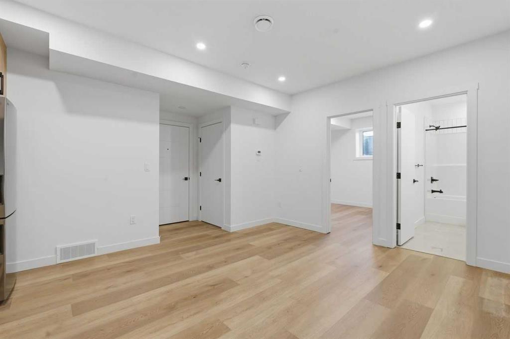 ~ OPEN HOUSE FRIDAY, SATURDAY & SUNDAY ~ FRONT FACING 3 STOREY UNIT | LEGAL BASEMENT SUITE | DOWNTOWN VIEWS | BRAND NEW BUILD | DETACHED GARAGE | CENTRAL LOCATION | Modern style and thoughtful design define this brand new 3 storey townhome that blends upscale finishes with a highly functional layout in a central location near parks, schools, transit and everyday amenities. A bright main floor creates an inviting first impression with luxury vinyl plank flooring, recessed lighting and generous windows that bring in natural light. An open concept layout supports easy daily living as well as effortless entertaining. A spacious living area promotes relaxation with a floor to ceiling window that amplifies light and connection to the outdoors. The kitchen inspires culinary creativity with stone countertops, a gas stove, full height cabinetry, timeless subway tile and a large peninsula that provides casual seating and room to gather. An adjacent dining area promotes hosting with comfort and flow. A dedicated mud room adds daily convenience while a well positioned powder room completes this level. The second floor encourages livability with 2 well proportioned bedrooms including one with a walk-in closet and private 4 piece ensuite. Laundry on this level is a meaningful upgrade that reduces household steps while a second 4 piece bathroom adds comfort for family and guests. The entire top floor forms a private primary retreat that elevates daily living. A spacious layout provides room to unwind while a spa inspired ensuite features dual sinks and an oversized shower for a calming start and finish to each day. A massive walk-in closet with custom organizers improves easy routines and thoughtful storage. A private balcony captures stunning downtown views and creates an inviting spot for morning coffees or evening beverages. A fully developed lower level extends the home’s versatility with a self-contained legal suite featuring a private entrance, modern kitchen, comfortable living area, large bedroom, full bathroom and its own laundry. This setup creates strong potential for generating rental income or offering guests impressive comfort and independence. A front grassy area adds welcoming curb appeal while a detached single garage ensures secure parking and additional storage. Outstanding access to Confederation Park, playgrounds, groceries, transit, regional bike pathways, Nose Hill Park and downtown makes this location both convenient and connected, adding meaningful long term value.