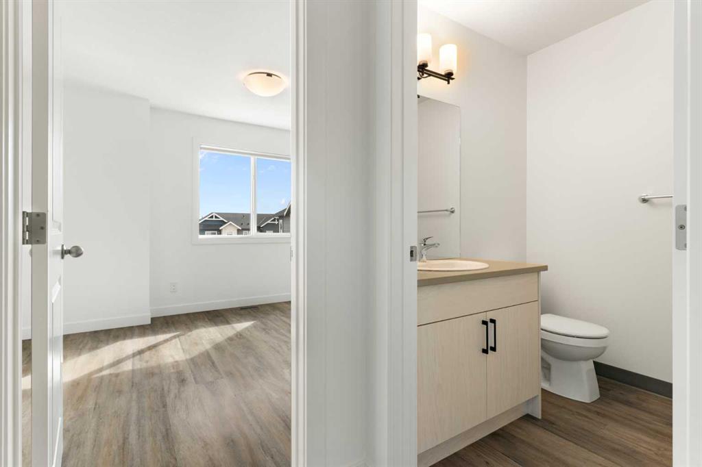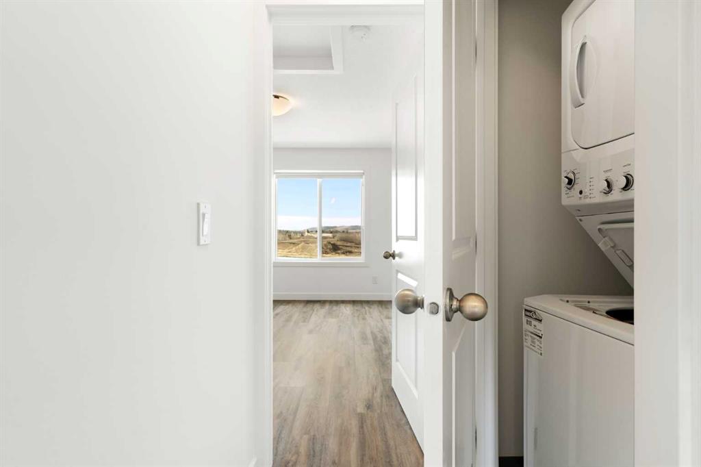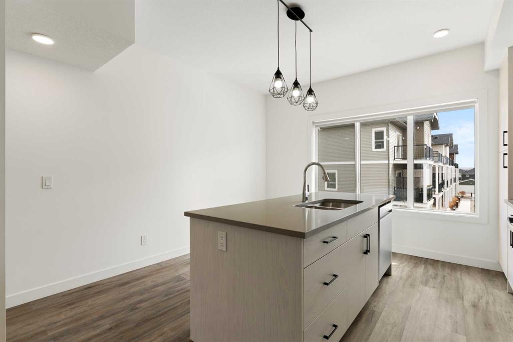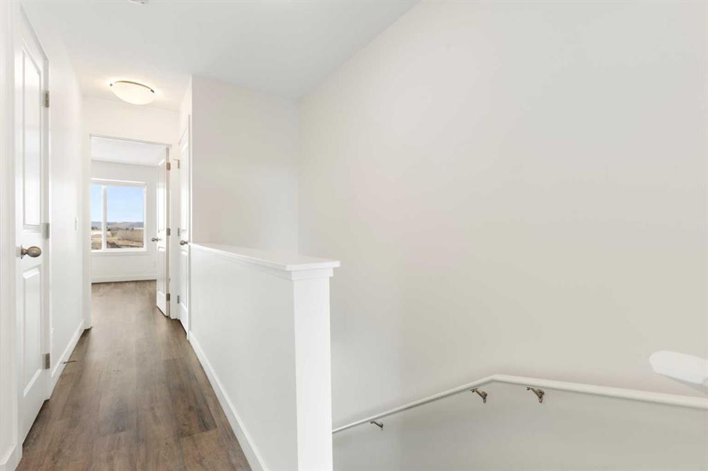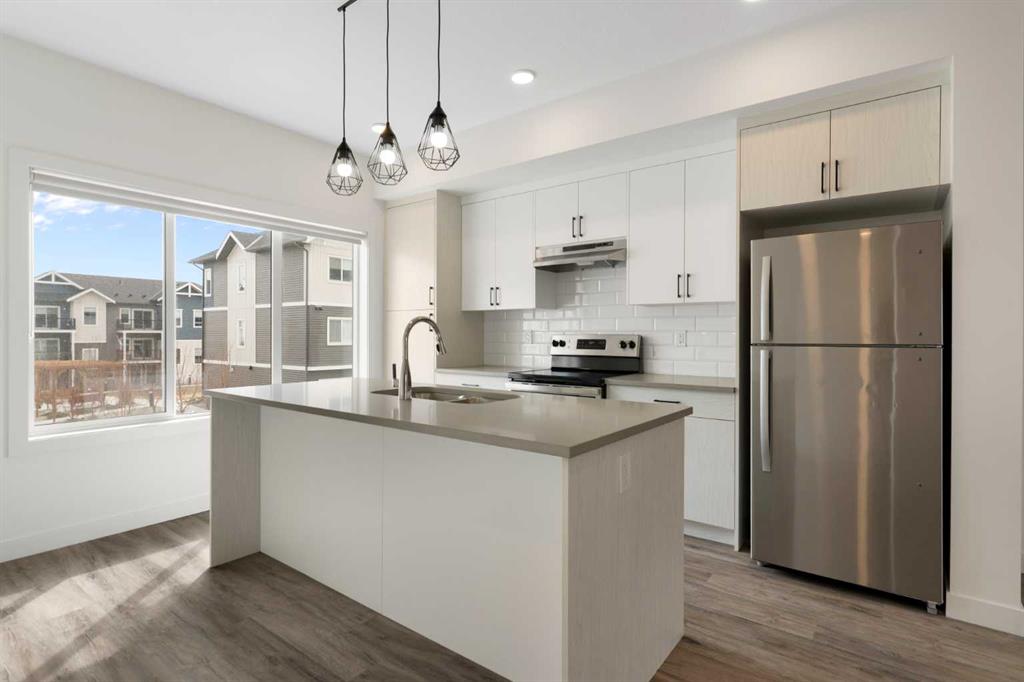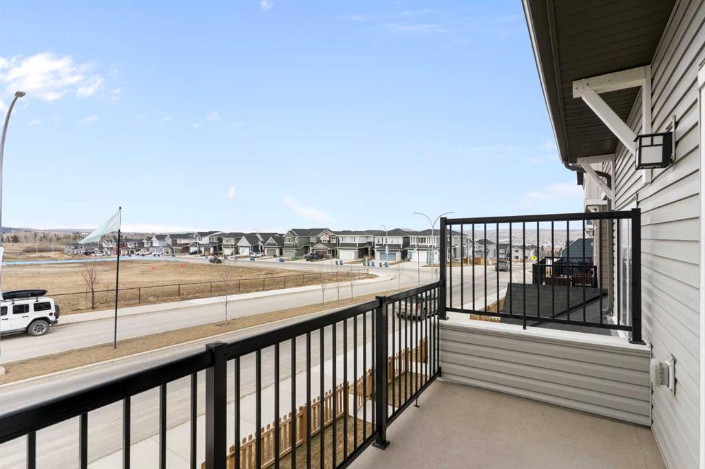 Experience the best of modern living in this lightly lived in Cochrane townhome. , enjoy a west facing backdrop! Located directly across from the future Rivercrest School! and offering stunning Mountain Views! The last interior unit with a deck facing the Mountains! Inside, discover a bright, open-concept haven designed for both entertaining and everyday comfort. The kitchen is the heart of the home, featuring a sprawling white quartz island perfect for casual meals or lively gatherings. You'll love the sleek two-tone cabinetry with soft-close drawers, a full GE stainless steel appliance package, ample cabinet space, and a pantry, all illuminated by stylish pendant lighting. Large windows on both sides of the unit flood the space with natural light, highlighting the durable vinyl plank floors and soaring, knock-down textured ceilings. Pull-down window coverings offer privacy and shade when desired, while the adjacent living room provides a natural gathering spot. This meticulously designed townhome offers two spacious bedrooms, 2.5 baths, and a versatile flex space on the main level—perfect for a home office, guest room, or creative studio. The primary suite on the third level boasts dual closets for ample storage and large windows and its own 4pc ensuite. This level also features a convenient laundry area and a full 4-piece bath for the other bedroom. Convenience is paramount with the oversized, fully insulated single-car garage, with dual access (doors on both sides of the unit) Location is key! Nestled in a fantastic complex, you're just steps from shopping, scenic pathways, and the tranquil Bow River. Bow Valley High School is close by, with a Cochrane's newest school (K-8 Breaking ground this Spring) conveniently located next door , and local transit is mere steps away. Enjoy quick access to Calgary for work or entertainment and the majestic mountains for weekend adventures.