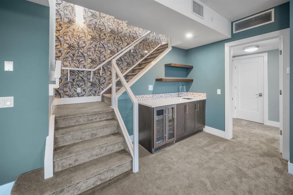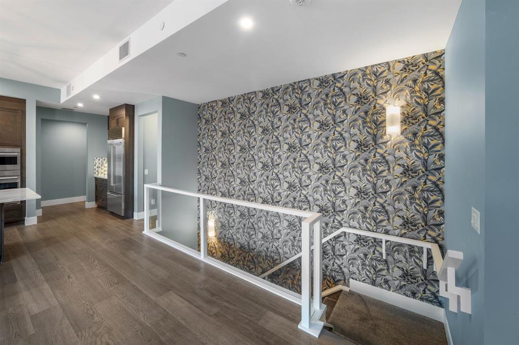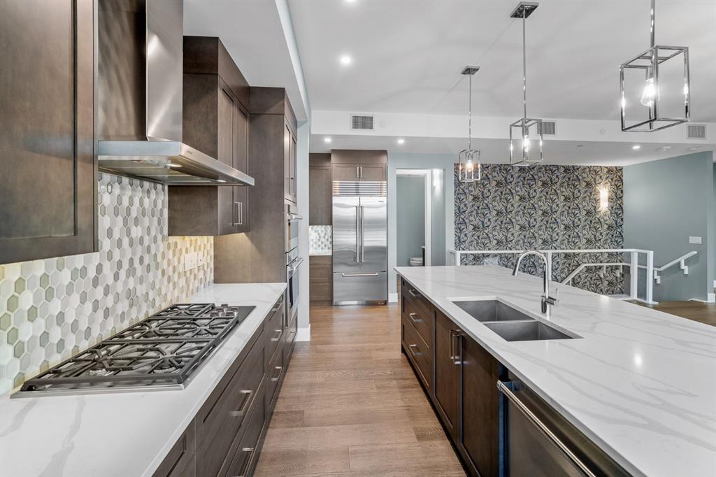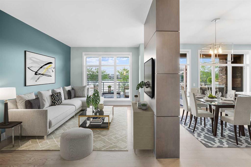 Welcome to an exceptionally rare lakefront residence in Westman Village, where intentional multi-level design elevates both privacy and livability. Perfectly positioned along the shores of Mahogany Lake, this sophisticated walkout home offers over 2,380 sq ft of thoughtfully separated living space, paired with an extraordinary 725 sq ft of covered outdoor balconies—all with uninterrupted lake views from both levels. Designed with purpose, the multi-level layout creates natural zones for living, entertaining, and retreat. The main level is devoted to elevated everyday living—anchored by a stunning chef’s kitchen featuring bold cabinetry, a gas cooktop, built-in wall ovens, premium appliances, and curated designer finishes. Expansive walls of glass flood the open-concept living and dining areas with natural light, while the lake becomes a living backdrop for hosting, relaxing, and gathering. The primary suite is intentionally positioned for privacy, offering a true retreat away from the main living spaces. Here, direct balcony access and a spa-inspired five-piece ensuite—complete with a deep soaker tub, dual vanities, walk-in shower, and refined detailing—create a sanctuary designed for rest and rejuvenation. The walkout lower level introduces a second living experience—ideal for guests, family, or extended stays. With direct access to the lakefront pathways and parks, this level functions as a private lounge, guest retreat, or flex space that seamlessly connects indoor comfort with outdoor serenity. It’s a layout that offers the feel of a luxury home with the ease of condominium living. Living in Westman Village means enjoying a lifestyle that is as refined as it is effortless. Residents have exclusive access to a 40,000 sq ft private amenity centre, featuring a fitness studio, indoor pool with waterslide, golf simulator, wine room, art studio, movie theatre, and more. Just steps away, world-class dining and retail—including Chairman’s Steakhouse, Alvin’s Jazz Lounge, and Analog Coffee—bring a vibrant, walkable energy to everyday life. This is true lock-and-leave luxury, enhanced by 24/7 concierge and security, heated underground parking for residents and guests, and an integrated +15 skywalk and underground tunnel system—ensuring comfort, privacy, and peace of mind year-round. For those who value intentional design, defined spaces, and elevated living, this multi-level lakefront residence offers a lifestyle that feels both expansive and intimate. A statement in architectural purpose, refined living, and unparalleled lakefront location—this is Westman Village living, elevated.