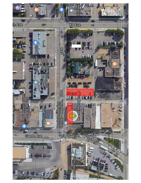 ATTRACTIVE, Class A PROFESSIONAL OFFICE SPACE W/ optional 13-PARKING STALL separate lot FOR LEASE OR SALE! This 2,000 SQ FT +/- , First-Class, END-CAP UNIT Office space, located right on GAETZ AVE SOUTH! Main-level GAETZ AVE FRONTAGE, featuring 7 generous offices, front reception w/ built in desk, 2 baths, a big boardroom w/ kitchenette, a server/ storage room as well as 6 common parking spots out front. Low condo fee's of $367.88/month. (2024) Need more parking? OPTION TO LEASE OR BUY THE ADDITIONAL 25'x125' gravelled parking lot (4927-53 street) which has 13 stalls (can be rented @ $60.00/month/stall) Listed at $129,900.00. LEASE TOGETHER (or Sold together at $429,800.00 total )or separate. Superb location with HIGH VISIBILITY and a traffic count, well over 7,000 cars/day. Visit REALTORS® website for more detailed information. Total leasing costs are $3,453.35/month ($16.00/PSF ($2,666.67/month), plus $4.72/PSF NNN costs ($786.68) plus GST.