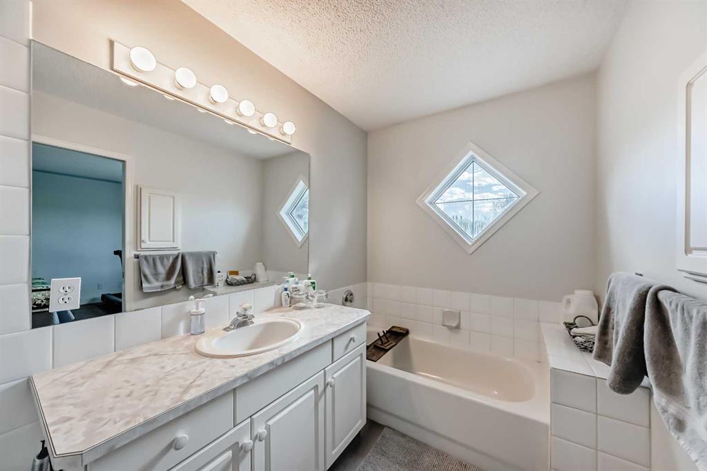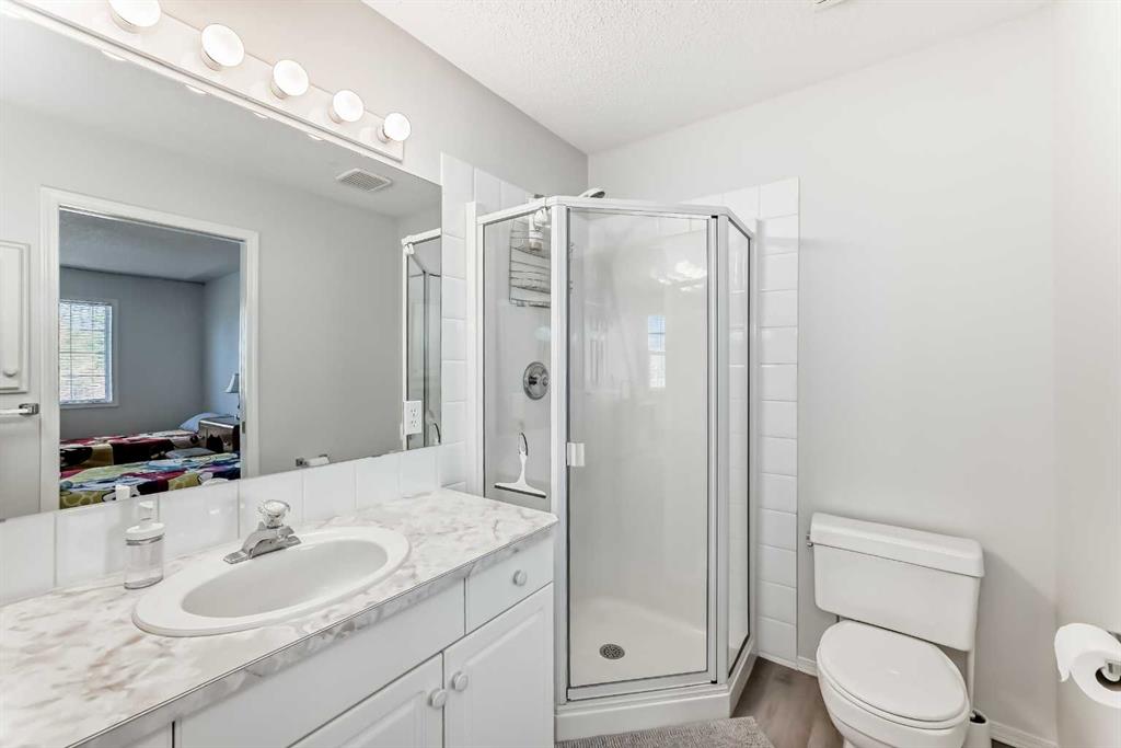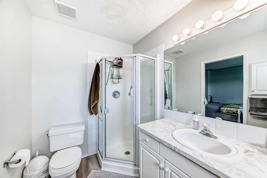 Welcome to the Villas & Vistas of Mckenzie Lake! Situated on a corner lot, this home includes lake access and a double attached garage. Main floor features living room with a bay window and corner fireplace, and formal dining room. The functional kitchen hasa raised breakfast bar and leads to a private backyard with concrete patio & grassy area - perfect for evening BBQ's. The 2nd floor has two generously sized primary bedrooms, each with their own 4pc ensuite and spacious walk-in-closets. Other benefits include: a FULL unfinished basement is ready for your creativity, laundry located in basement, extra parking near your front door, full lake privileges (10 min walk), no age restrictions, shopping, restaurants, transit & schools nearby. Nothing to do here but move in and enjoy the LAKE year round!