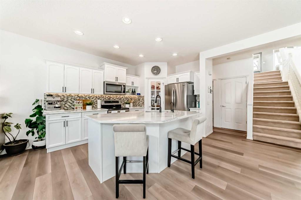 Fantastic opportunity to raise your family in this lovingly maintained Cedarglen two-storey home on a quiet crescent in The Cascades of Royal Oak. The highly rated Renert School is just a 5-minute drive away. With two schools and neighbourhood parks only a short 5-minute walk from your doorstep, this cherished family home offers comfort, warmth, and thoughtful updates throughout. With an oversized 2-car garage with new garage door and a fenced backyard complete with a kids’ playhouse and huge deck, it’s the perfect setting for creating lasting family memories. Step inside to a wonderful open-concept design drenched in natural light, featuring an expansive great room with a cozy stone-facing fireplace, a formal dining room accented by French doors, and a bright dining nook with access to the backyard. The heart of the home is a beautiful white kitchen with an island, quartz countertops, and a walk-in pantry, offering ample cabinet space and Frigidaire Gallery stainless steel appliances, including a convection oven—ideal for family meals and gatherings. The main floor now features brand new vinyl flooring, adding durability and modern style to the home’s warm aesthetic. Upstairs, you’ll find three relaxing bedrooms highlighted by the primary suite with a walk-in closet and a luxurious soaker tub ensuite featuring a separate shower, double vanities, and corner windows. Over the garage, a spacious bonus room with a custom-built-in desk and cabinets provides the perfect retreat for family movie nights or a quiet workspace. Additional main-floor conveniences include a laundry area with a built-in bench, underground sprinklers, and an oversized garage with built-in storage. Thoughtful updates include updated Levolor blinds and a new water heater installed last year. The backyard is newly painted fenced, and landscaped, featuring an inviting deck for summer entertaining, a playhouse and swing for children, and plenty of space for gardening or relaxation. Bus stops are just steps away, and you’re minutes from the Royal Oak Shopping Centre with quick and easy access to Tuscany and major routes. The newly developed basement enhances the home’s living space with a large bedroom, a stylish full bathroom with a tiled standing shower, and newly installed carpet flooring. The home also offers fresh paint throughout, a painted deck and fence, quartz countertops throughout, a garden shed, outdoor lighting, and an irrigation system—ensuring comfort, beauty, and convenience inside and out.
