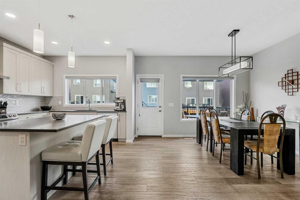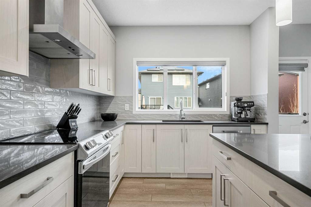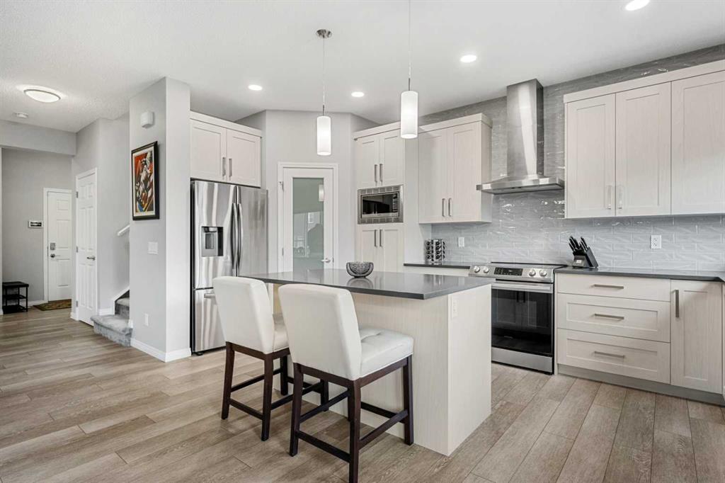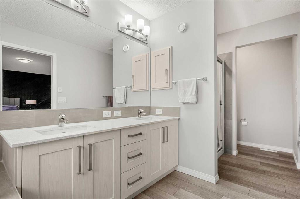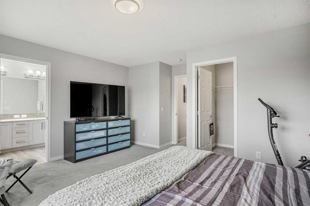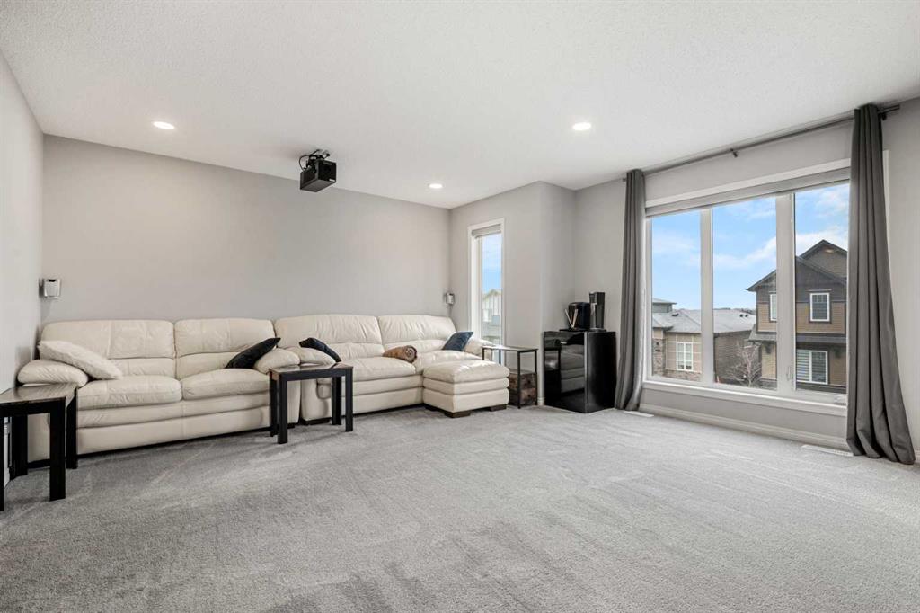 Welcome to this meticulous, beautifully upgraded, lightly lived in home that blends modern design, comfort and thoughtful details throughout. Step inside and immediately notice the spacious feel created by 9-foot ceilings and durable luxury vinyl plank flooring on the main level. The stylish kitchen is a true showstopper, featuring quartz countertops, a Silgranit sink, extended backsplash and upgraded stainless steel appliances including a french door fridge with a slide -in range, built-in microwave and dishwasher. Enjoy seamless entertaining in the bright open-concept living area, complete with a TV conduit for hidden wiring and direct access to the deck with a BBQ gas line. Upstairs, comfort continues with upgraded carpet and 10lb underlay, a WiFi thermostat perfectly placed for improved bedroom temperature control and a convenient upstairs laundry. The impressive 18’ x 15.5’ bonus room is wired for 5.1 surround sound, equipped with a ceiling-mounted projector conduit and includes a 20A breaker outlet for A/V equipment—perfect for movie nights or gaming setups! Retreat to the spacious 16’ x 13’ primary suite, complete with a luxurious ensuite featuring double underhung sinks, a soaker tub and quartz countertops. The main upstairs bathroom also includes quartz counters, an extra set of drawers, and premium finishes throughout. Additional highlights include central A/C, a gas water heater and a 3-piece bathroom rough-in in the basement, offering flexibility for future development. Every detail in this home has been designed with style, comfort, and convenience in mind—an incredible opportunity for those looking for a move-in-ready, modern home with all the right upgrades. Perfect for extended family, guests, or Rental as a mortgage helper. Situated just steps from a serene community pond and walking trails, this home also offers easy access to parks, baseball fields, a skate park, splash park, tennis/pickleball courts, and playgrounds. A short drive gets you to multiple schools, restaurants, Costco, CrossIron Mills, and all the key amenities you could ask for. With quick access to Yankee Valley Blvd and just 20 minutes to YYC Airport, you can enjoy a peaceful lifestyle in Airdrie with the convenience of Calgary just minutes away. Homes like this are rare—don’t miss your chance! Schedule your private tour today and make this exceptional property yours!
