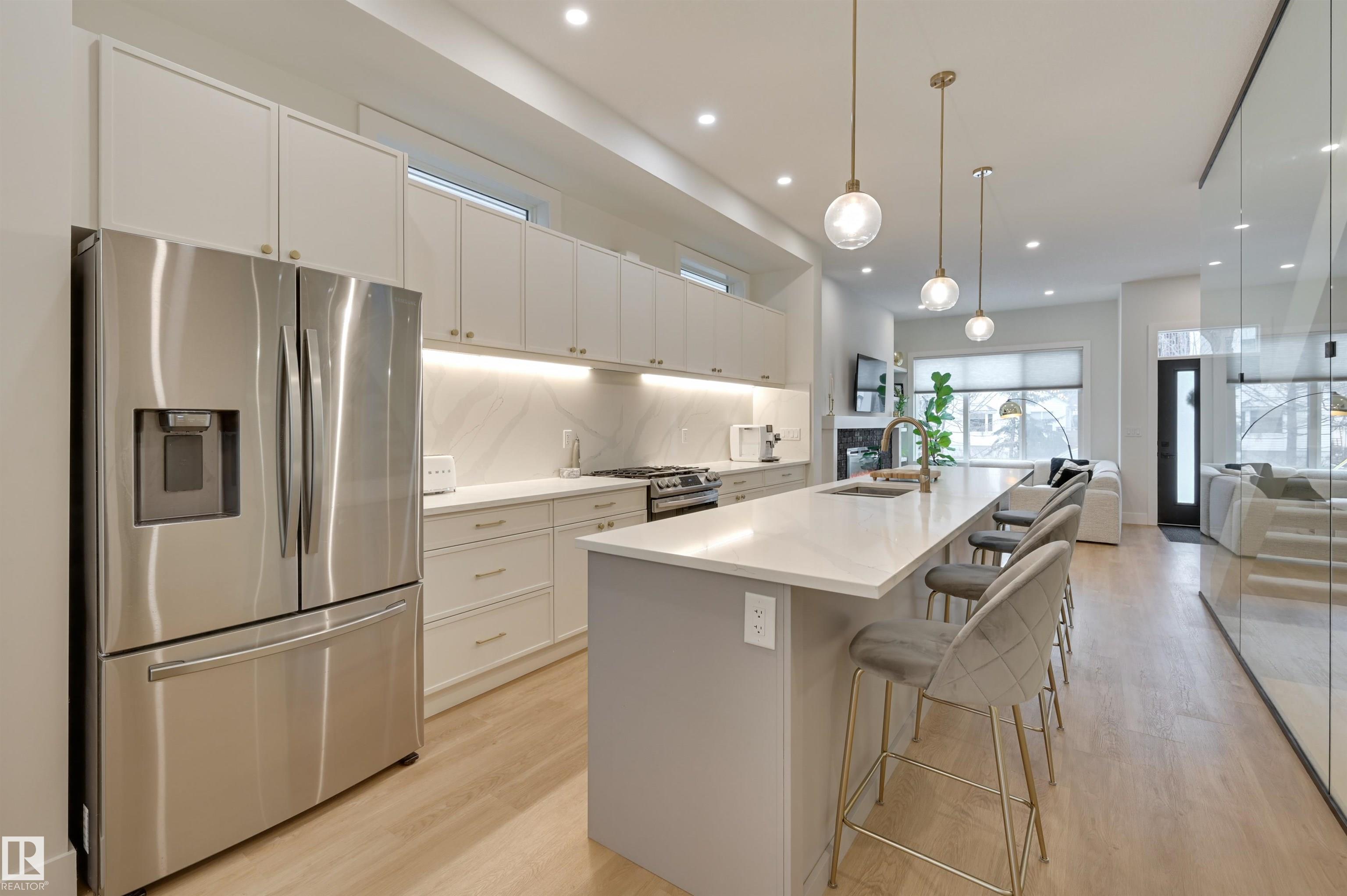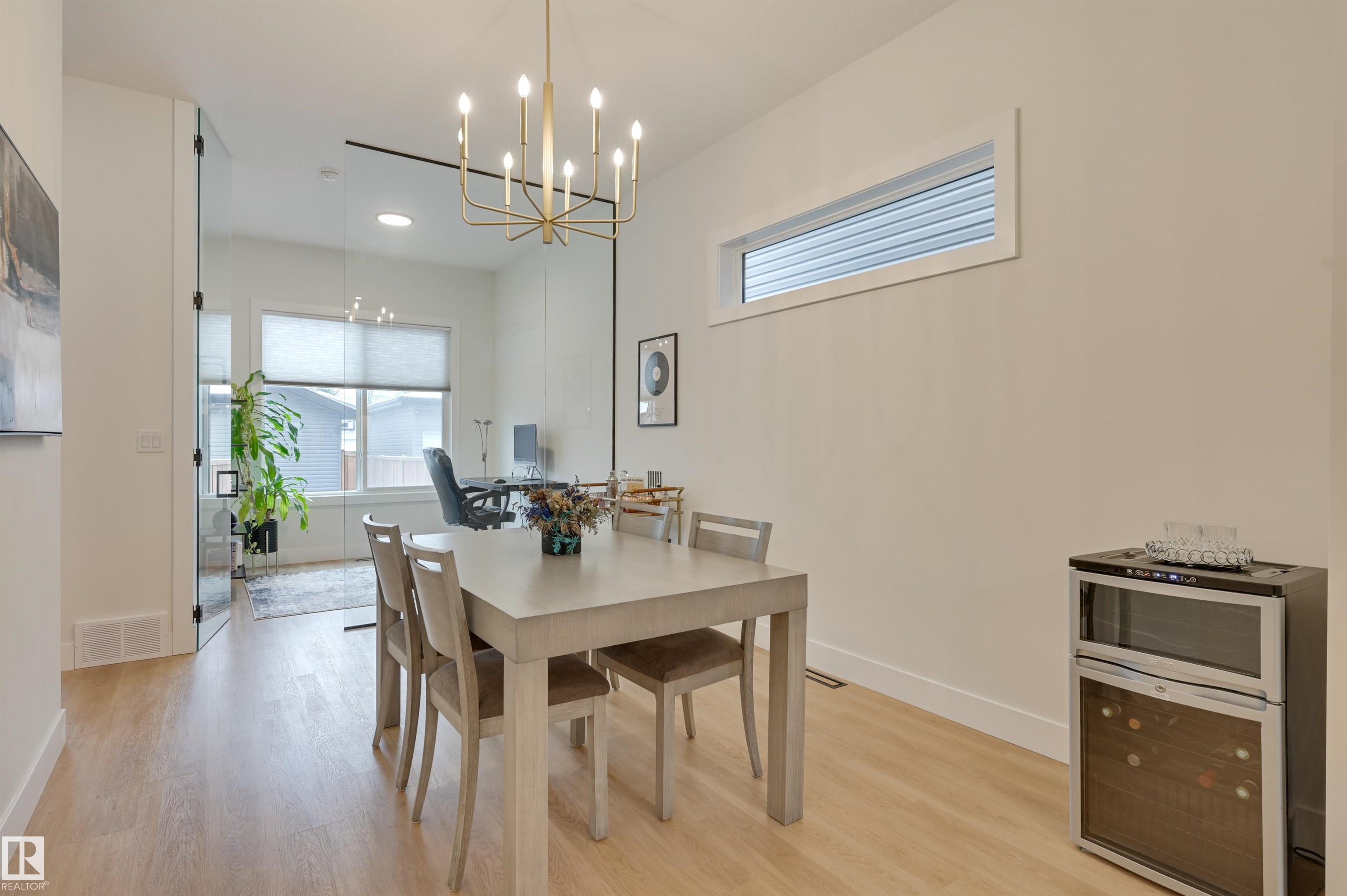 Custom-built by Modern Urban Developments in the heart of Grovenor, this refined 2-storey infill blends modern farmhouse design with elevated, designer-curated finishes. The main floor showcases a living room with a striking fireplace feature & built-ins, opening to a sleek chef’s kitchen & spacious dining area designed for effortless entertaining. A glass-enclosed den/office adds architectural interest & function. Ascend the open-riser glass staircase, a true design statement. The primary suite is a retreat, filled with natural light from large windows, and features a custom wardrobe wall & a beautifully appointed 5pc spa-like ensuite with double vanity, freestanding tub, and walk-in shower. Two additional bedrooms, a full bath & laundry complete the upper level. The fully finished basement offers a rec room, two more bedrooms & a 4pc bath—delivering style, space, and versatility. Outside, enjoy a fenced yard with a generous patio & access to the double detached garage. Some photos are virtually staged.