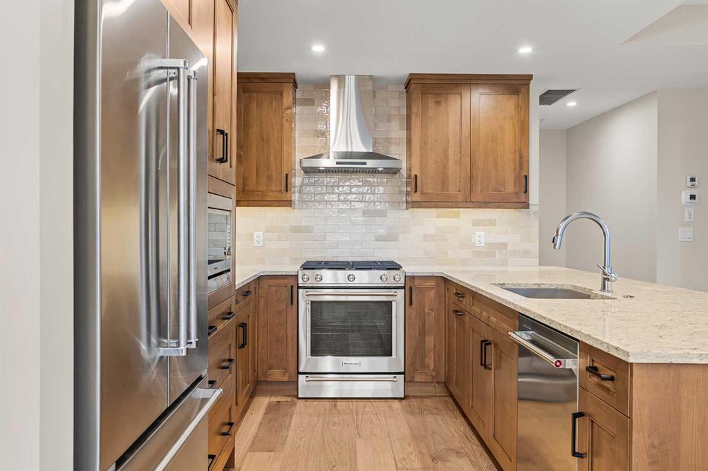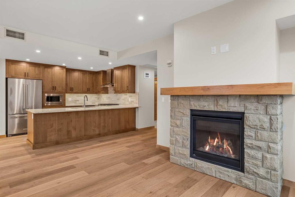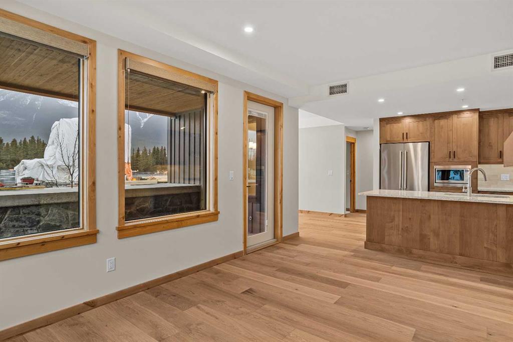 Brand New and Never Lived In! Welcome to Black Swift Lodge, the newest luxury development in Spring Creek, Canmore. This corner unit offers 1,584 sq. ft. of refined mountain living with spectacular south-facing views of the Three Sisters. Featuring 3 bedrooms plus a den and 3 bathrooms, this residence combines contemporary design with high-quality craftsmanship. The open-concept living area is filled with natural light and showcases a gourmet kitchen with quartz countertops, premium appliances, and custom cabinetry — perfect for both entertaining and everyday living. The primary suite includes a spa-inspired ensuite and walk-in closet, while two additional bedrooms and a versatile den provide ample space for family, guests, or a home office. Enjoy sunshine and mountain vistas from your private patio all day long. This home has never been occupied, and GST has already been paid. As part of a brand-new building, the buyer receives full Alberta New Home Warranty coverage for added peace of mind. Additional features include underground parking, secure storage, and walkable access to Spring Creek’s shops, restaurants, trails, and downtown Canmore.