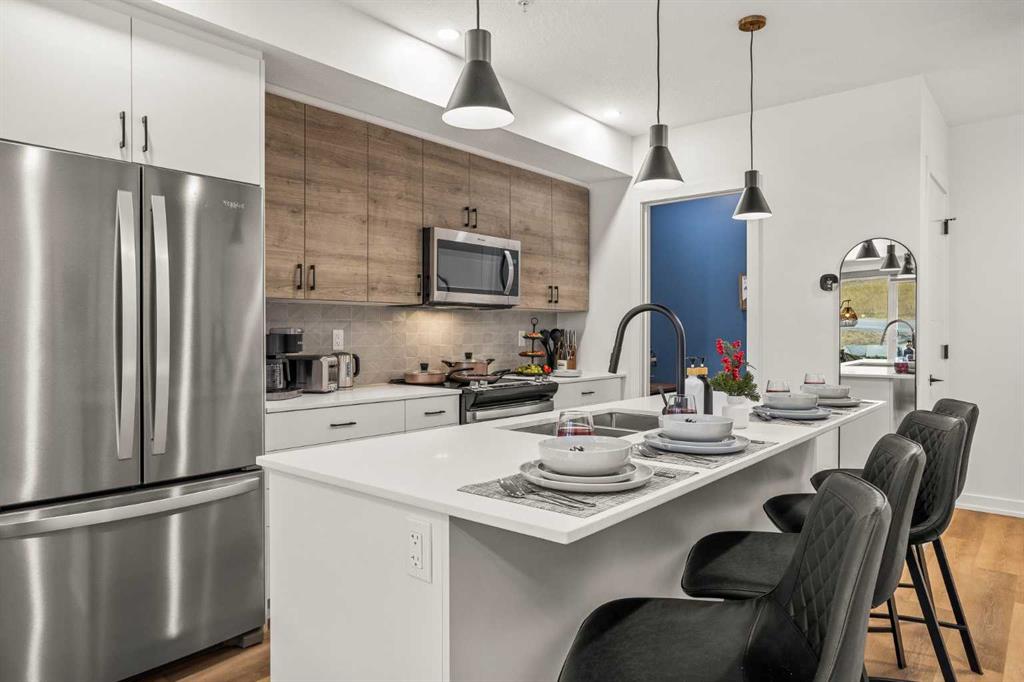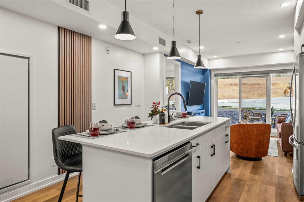 This executive 1-bedroom + office, 2-bathroom ground-level unit at Golden Ridge is one of Canmore’s newest luxury developments. Thoughtfully designed with premium finishes, this unit offers northeastern mountain views, a dedicated office space, and an open-concept layout that blends elegance with functionality, and a good-sized walk out patio to relax after a day in the sun. Guests will enjoy exclusive access to shared rooftop hot tubs with stunning northeastern mountain views along with a relaxing sauna, providing the ultimate alpine retreat. This unit comes fully furnished and turn-key ready, making it an incredible opportunity to capture Canmore's lucrative short term rental market.