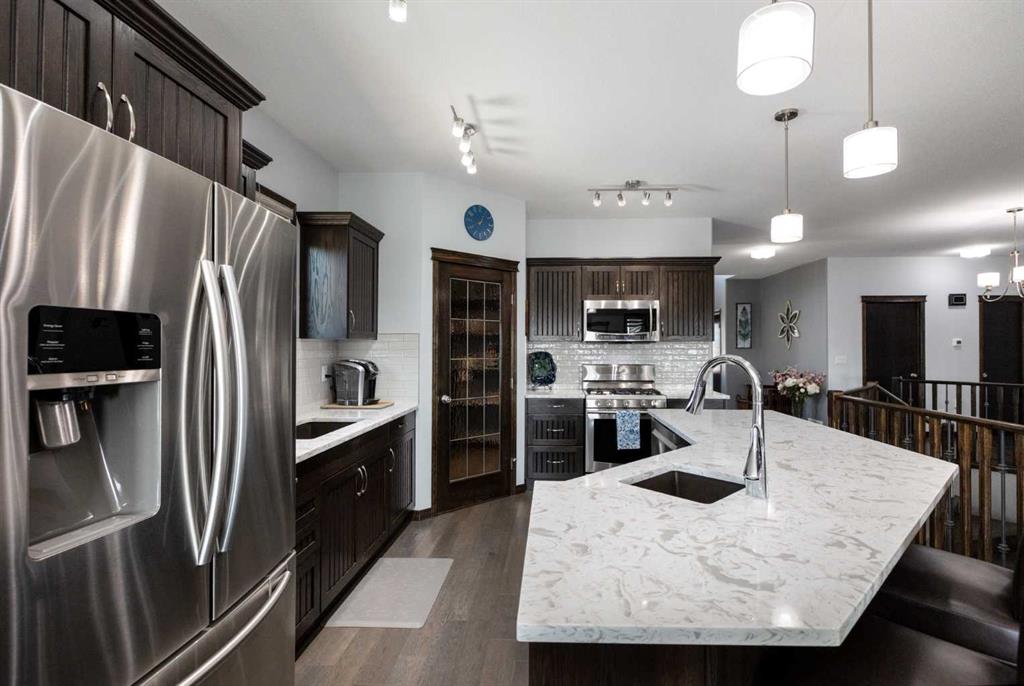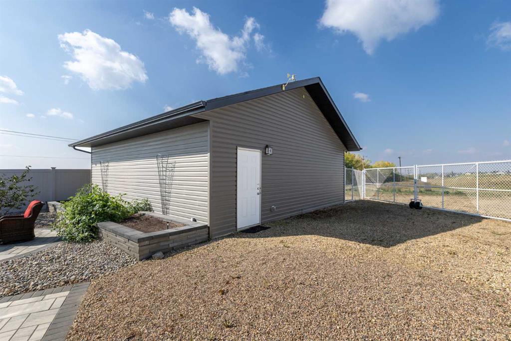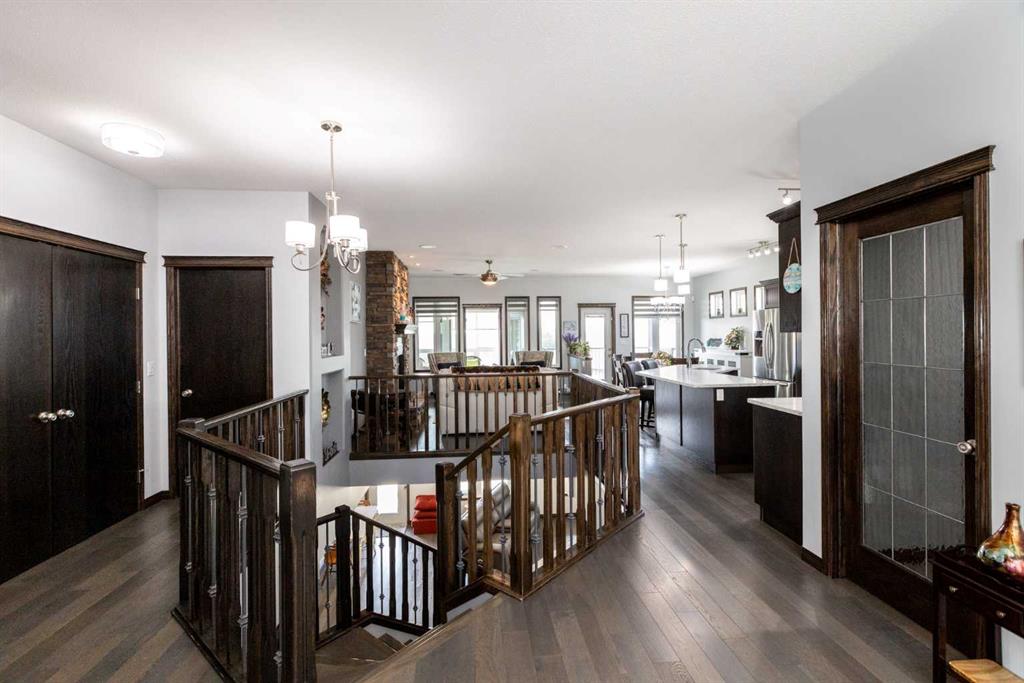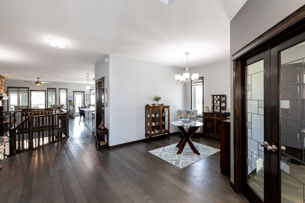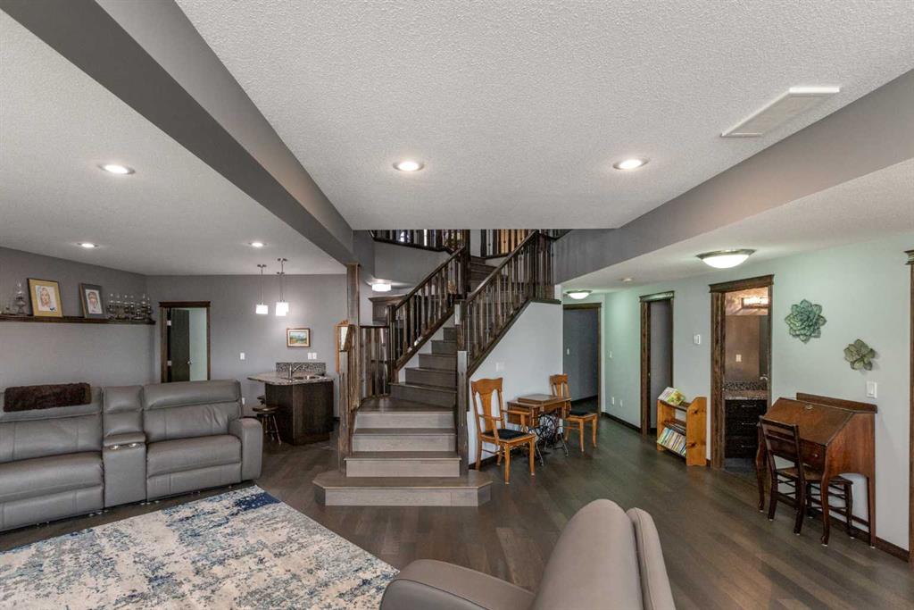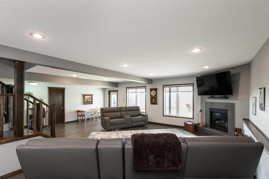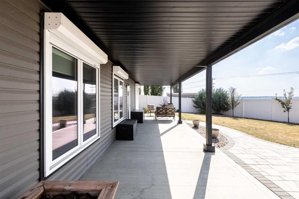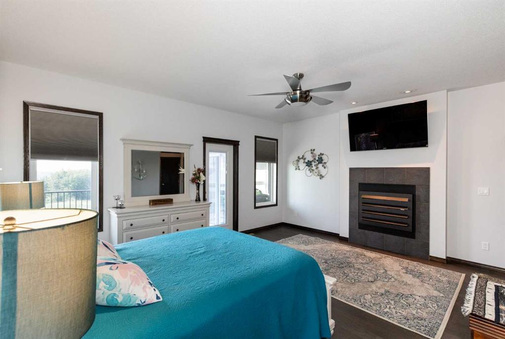 Experience luxury living at its finest in this custom-built, over 4,000 sq. ft. fully finished bungalow in Blackfalds! Designed for comfort, style, and entertaining, this home boasts no rear neighbours, breathtaking views, and both a double front attached heated garage plus a huge detached heated garage with alley access and RV parking. Inside, enjoy 9-ft ceilings, triple-pane windows, in-floor heating, and expansive natural light. The main level features a spacious kitchen with walk-in pantry, large island, stainless steel appliances, and separate dining area, plus a luxurious master suite with private deck access, grand walk-in closet, and spa-inspired ensuite with jetted tub and heated tile floors. The living room impresses with a two-sided stone fireplace flowing into the all-season heated sunroom, perfect for year-round enjoyment of the views. The lower level is a true entertainer’s dream, featuring a double-insulated media/studio room, 3 additional bedrooms, and a wet bar with cozy fireplace. With ample storage and direct access to the patio and beautifully landscaped backyard, it’s perfect for hosting gatherings, enjoying summer activities, or letting pets roam freely. Additional highlights include air conditioning, hardwood floors, and a fantastic neighbourhood. This bungalow delivers exceptional craftsmanship and features rarely found in Blackfalds, offering a lifestyle of space, luxury, and convenience.