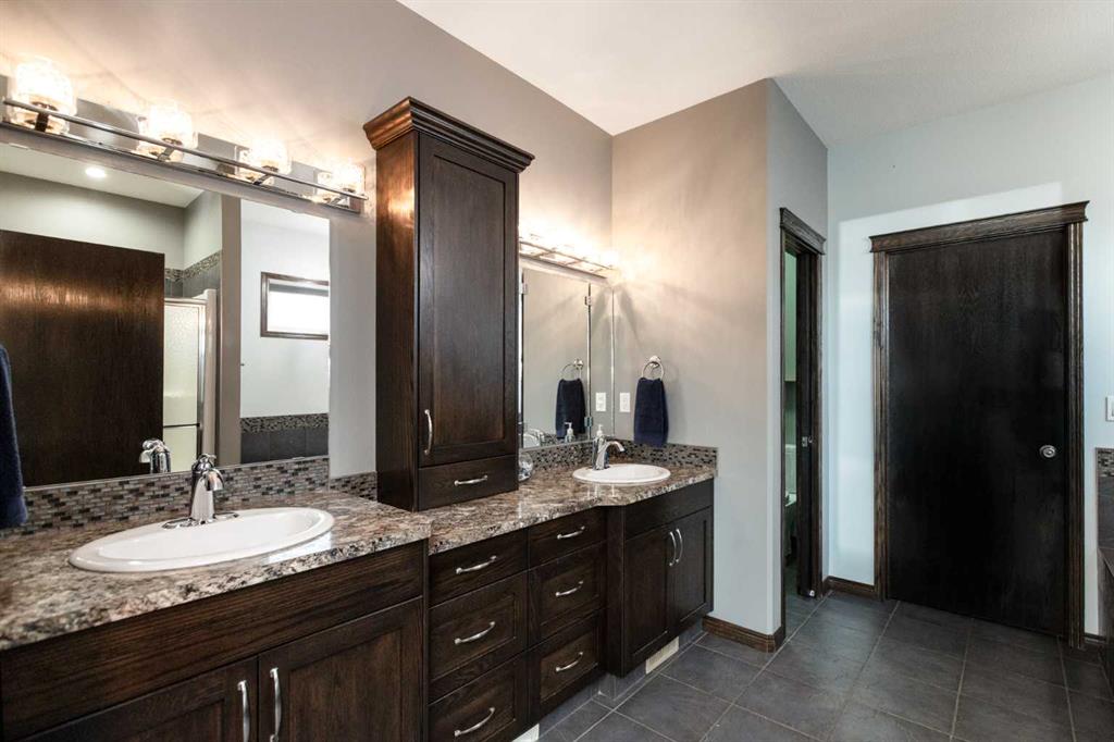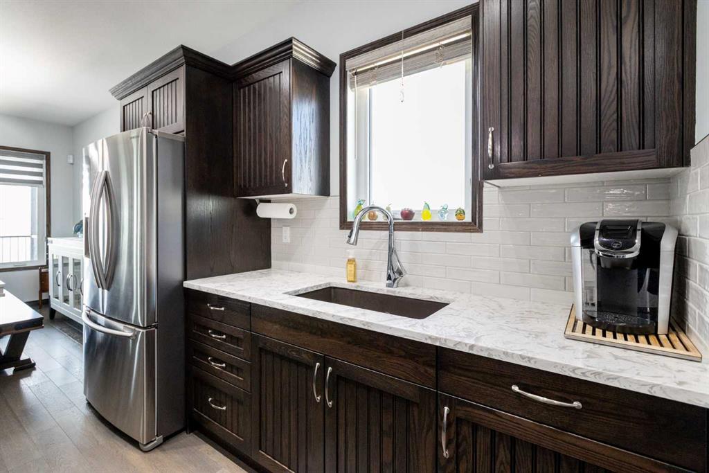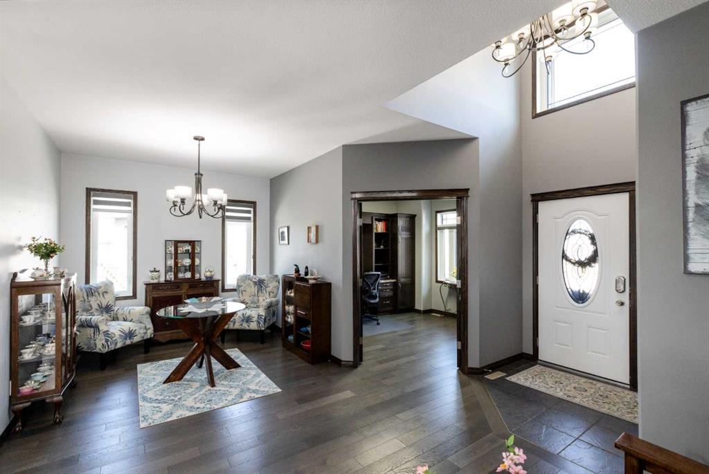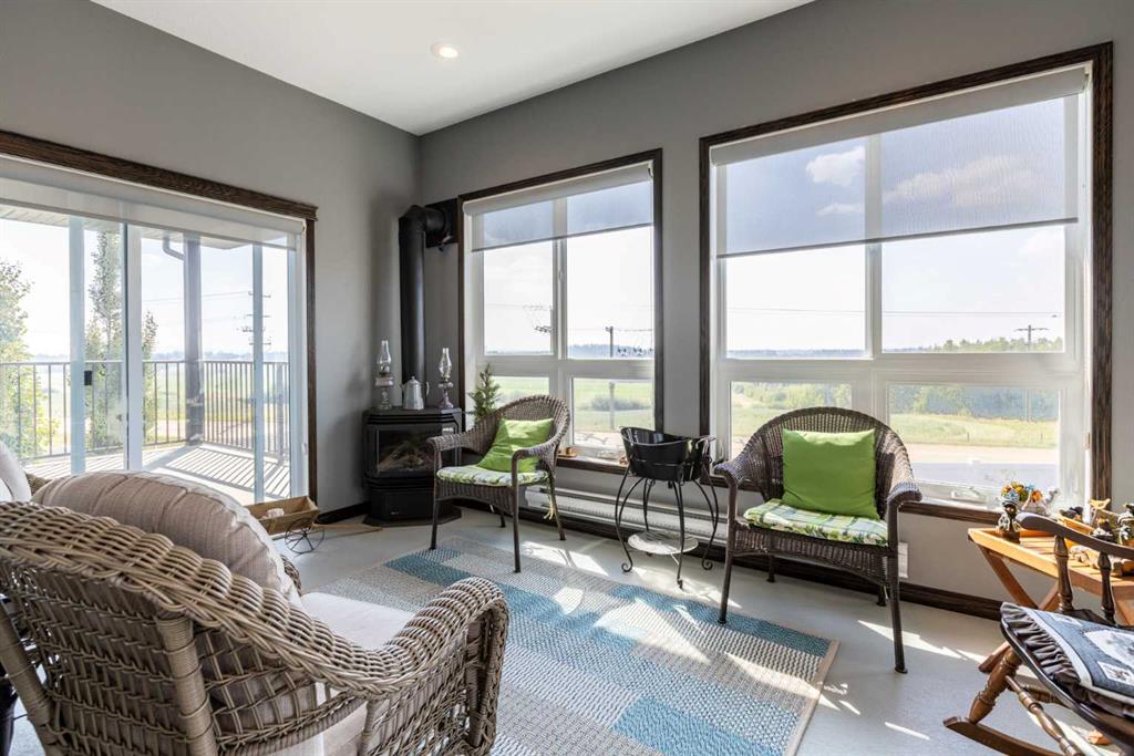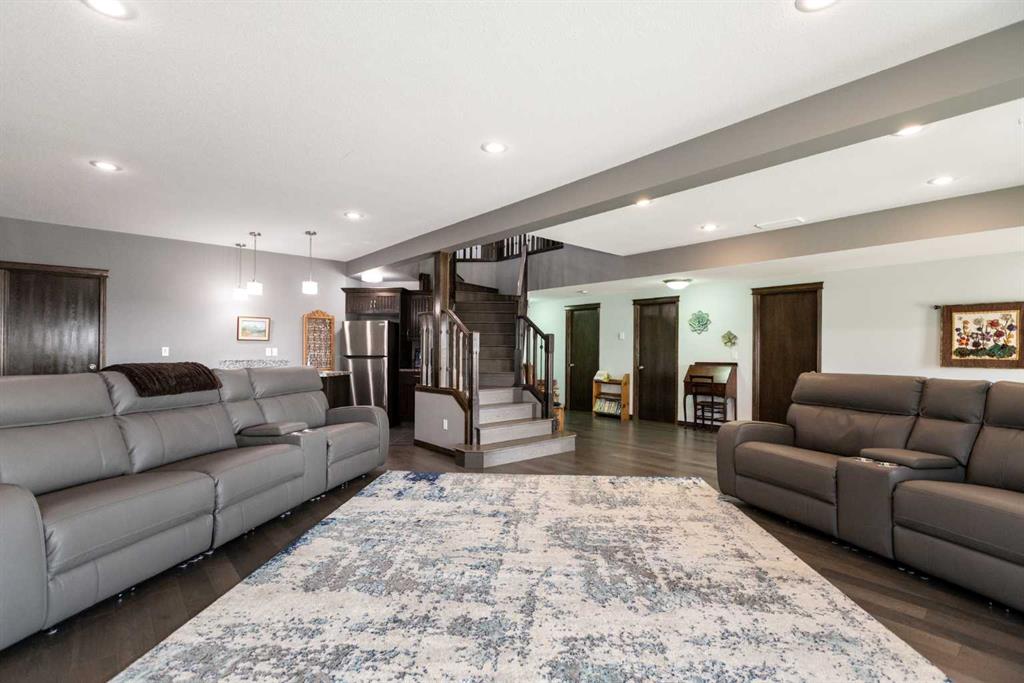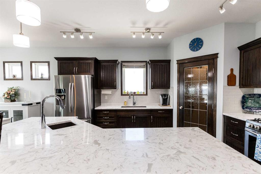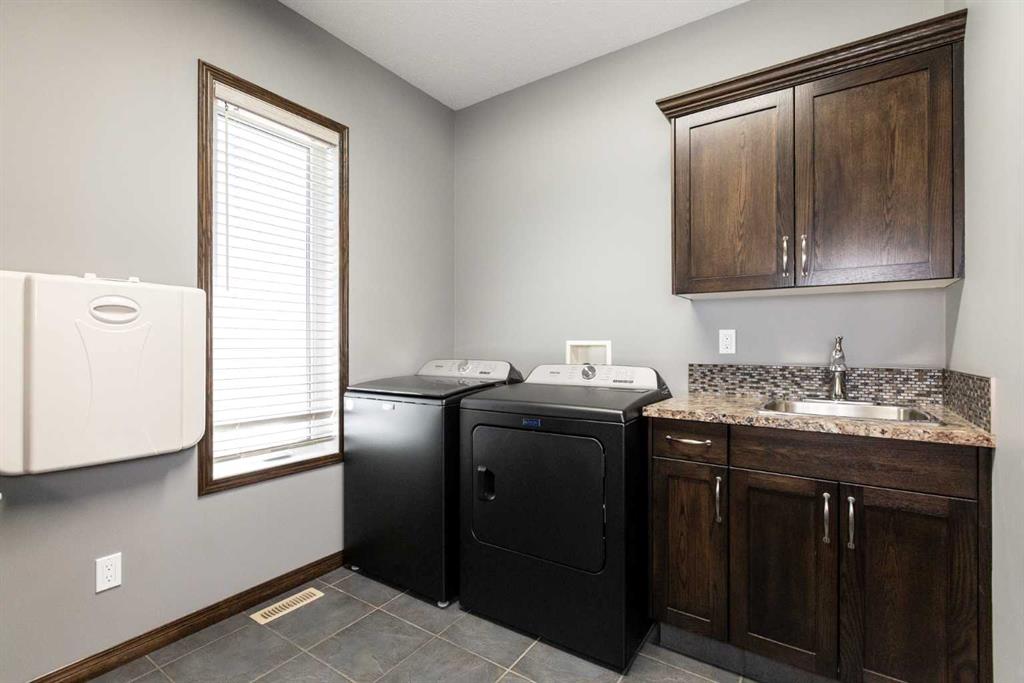 Experience luxury living at its finest in this custom-built, over 4,000 sq. ft. fully finished bungalow in Blackfalds! Designed for comfort, style, and entertaining, this home boasts no rear neighbours, breathtaking views, and both a double front attached heated garage plus a huge detached heated garage with alley access and RV parking. Inside, enjoy 9-ft ceilings, triple-pane windows, in-floor heating, and expansive natural light. The main level features a spacious kitchen with walk-in pantry, large island, stainless steel appliances, and separate dining area, plus a luxurious master suite with private deck access, grand walk-in closet, and spa-inspired ensuite with jetted tub and heated tile floors. The living room impresses with a two-sided stone fireplace flowing into the all-season heated sunroom, perfect for year-round enjoyment of the views. The lower level is a true entertainer’s dream, featuring a double-insulated media/studio room, 3 additional bedrooms, and a wet bar with cozy fireplace. With ample storage and direct access to the patio and beautifully landscaped backyard, it’s perfect for hosting gatherings, enjoying summer activities, or letting pets roam freely. Additional highlights include air conditioning, hardwood floors, and a fantastic neighbourhood. This bungalow delivers exceptional craftsmanship and features rarely found in Blackfalds, offering a lifestyle of space, luxury, and convenience.