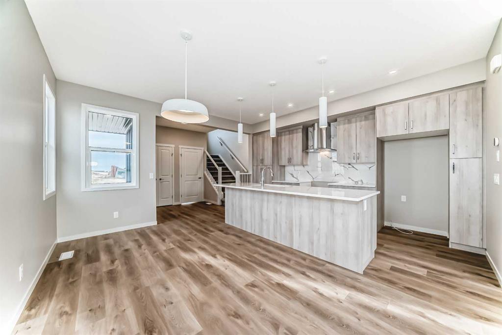 Welcome to this thoughtfully designed 1,487 sq ft home in Sawgrass Park, Airdrie’s newest NW community where everyday convenience meets the beauty of nature. Built by Hopewell Residential, one of Alberta’s most trusted and award-winning builders, this home combines quality construction, energy efficiency, and family-friendly living. From the moment you arrive, the HARDIE BOARD SIDING sets the tone with its modern curb appeal and reputation for long-lasting durability. Step inside to a bright and open main floor featuring luxury vinyl plank flooring, knockdown ceiling texture, and a well-planned layout designed for both entertaining and everyday comfort. The upgraded kitchen is as functional as it is beautiful, with QUARTZ countertops, stainless steel appliances, a CHIMNEY HOOD FAN, built-in microwave, and a second bank of drawers for added storage. Whether you're preparing weeknight meals or hosting friends, this space delivers. Upstairs, you’ll find three generously sized bedrooms, including a private primary retreat with a walk-in closet and 4-piece ensuite. A functional office space, laundry closet and full main bathroom are thoughtful touches creating a warm, welcoming vibe. Need more space in the future? The basement is ready for your vision—complete with 9’ foundation walls, a separate side entrance, and plumbing rough-in, offering exciting potential for a legal suite (subject to City approval), media room, or personalized family space. Step outside to your 20' x 20' DETACHED GARAGE on your large corner lot yard. Sawgrass Park is all about connection—featuring a 5-acre central greenspace, beautiful wetlands, and plans for schools and recreation facilities that make it the ideal place to plant roots. Whether you’re heading into Calgary or exploring the growing amenities in Airdrie, everything is within easy reach. This is your opportunity to own a brand-new home with timeless features in a vibrant, growing community. Schedule your private showing today!