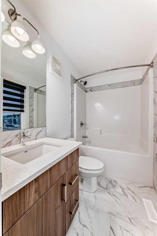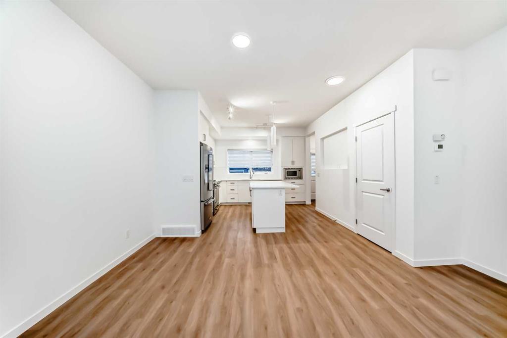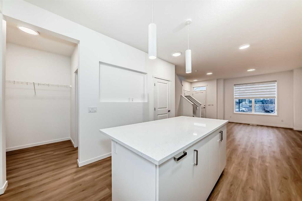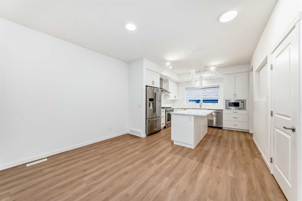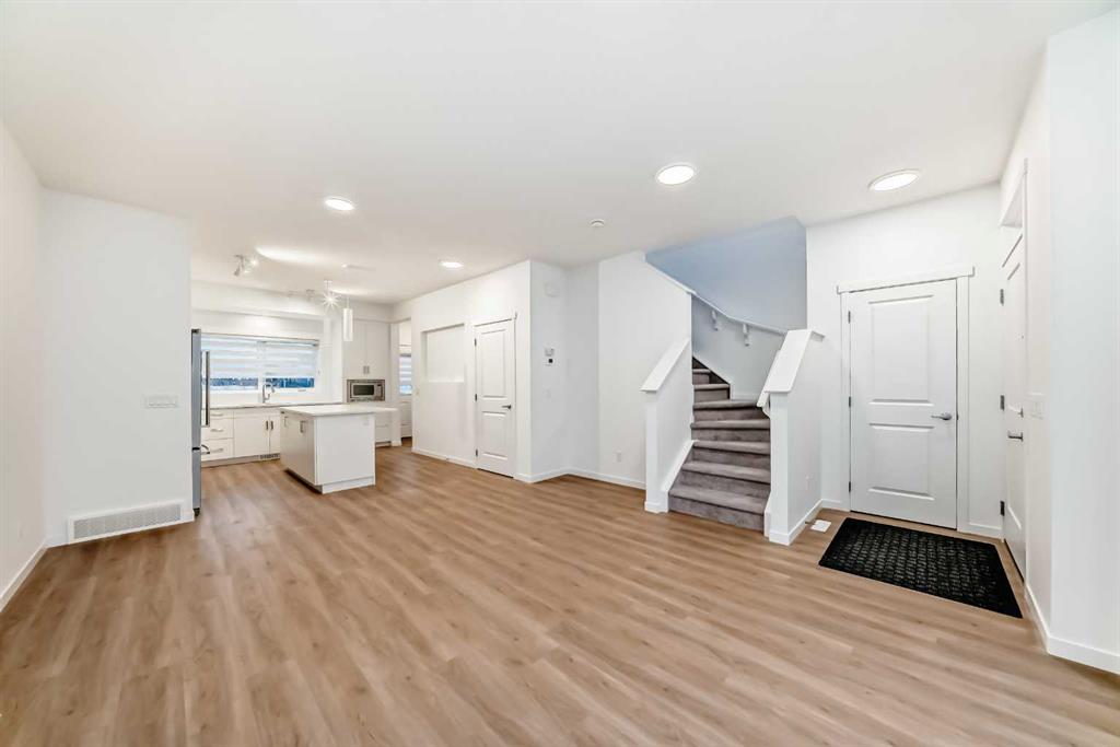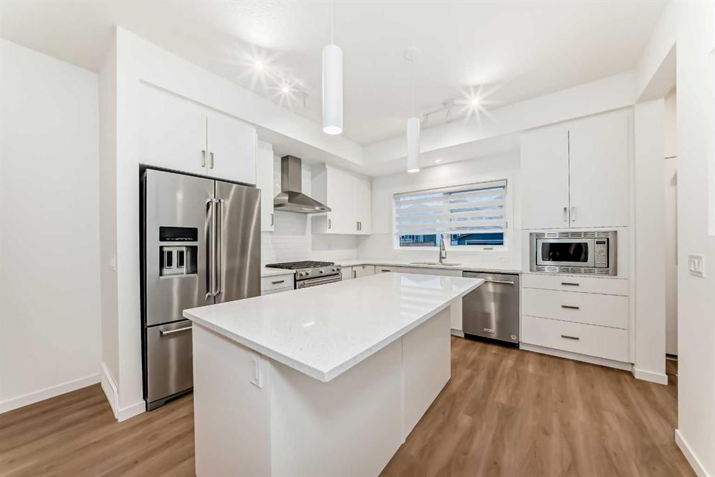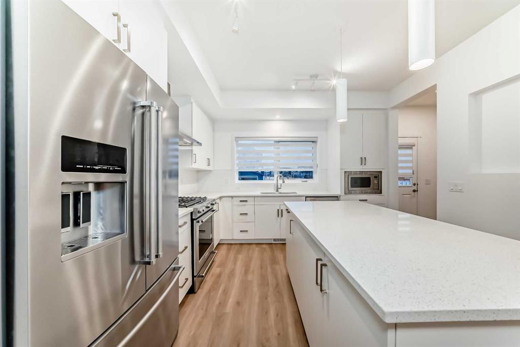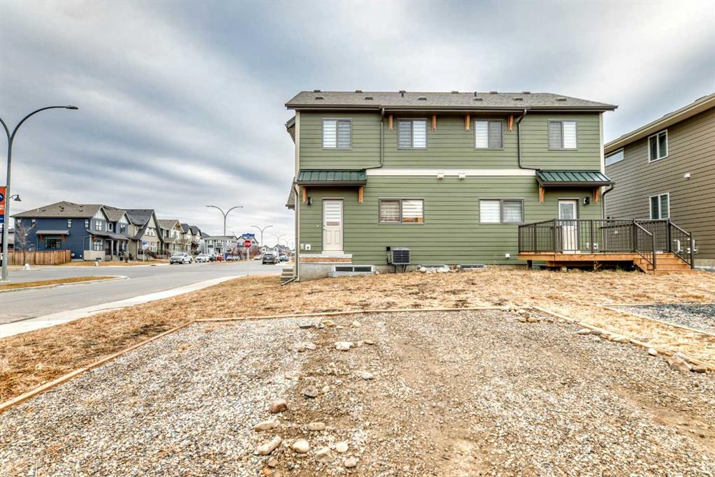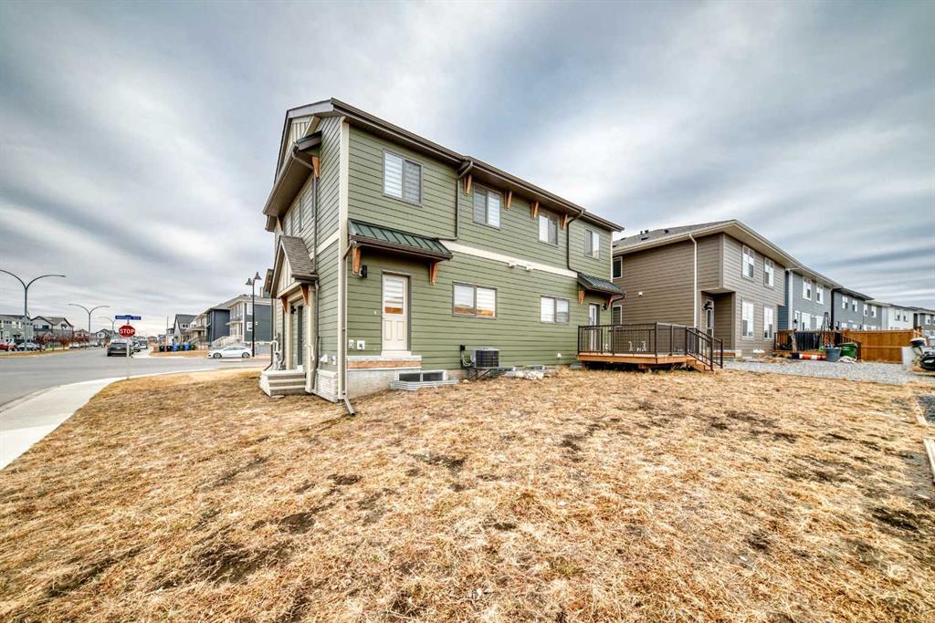 Discover exceptional comfort and modern style in this almost new semi-detached home, ideally positioned on a desirable corner lot in one of the city’s most sought-after lake communities. Immaculately maintained and barely lived in, this residence exudes a bright, fresh ambiance from the moment you step inside. Designed for today’s lifestyle, the open-concept main floor showcases an airy, contemporary palette complemented by expansive windows and thoughtfully curated finishes. Luxury vinyl plank flooring flows seamlessly from the spacious great room—with its oversized feature window—into the designated dining area and onward to the stunning chef-inspired kitchen. Here, a generous central island with quartz countertops anchors the space, paired with sleek stainless steel Kitchenaid appliances including a French-door refrigerator with ice and water, built-in microwave, dishwasher, an upgraded gas range and pull-out garbage for ease of convenience. The classic subway tile frames in the designer hood fan compliments the capped cabinetry and modern fixtures. The upper level features three spacious, sun-filled bedrooms—each offering a clean, minimalistic backdrop ready for your personal touch. The primary suite is a true retreat, complete with a 4-piece ensuite bathroom and a walk-in closet for added comfort and convenience. An additional 3-piece bathroom on this level provides thoughtful functionality for family members or guests. All bathrooms throughout the home highlight elegant quartz countertops, wood-grain vanities, curved shower rods and marble-style tile for a refined, cohesive look. A dedicated upstairs laundry room, complete with an LG ThinQ washer and dryer, enhances everyday convenience for busy families. Additional features include custom blinds on all windows and Carrier central air conditioning for year-round comfort. A separate side entrance with precast stairs adds flexibility and potential for future development, a home-based business, or multigenerational living. Durable Hardie Board siding enhances both style and longevity on this spacious corner lot. Located within a vibrant lake community, residents enjoy year-round access to bicycle and walking paths, beach, water activities, and a welcoming community atmosphere—while being just minutes from schools, shopping, and major commuter routes. Whether you're a first-time buyer, investor, or downsizer, this move-in-ready property offers exceptional value, modern design, and an unbeatable location. Don’t miss this rare opportunity to make it yours.