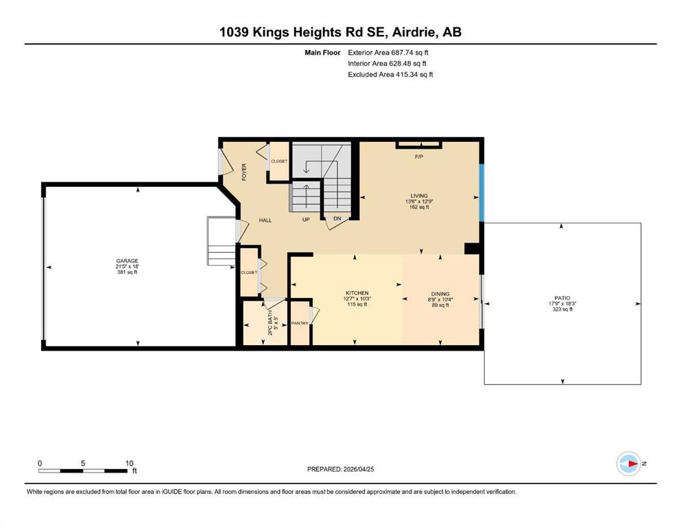 | Living Room | 12`8" x 13`6" | Main |