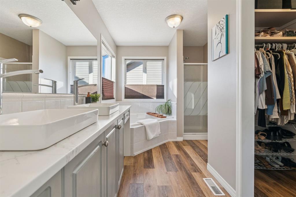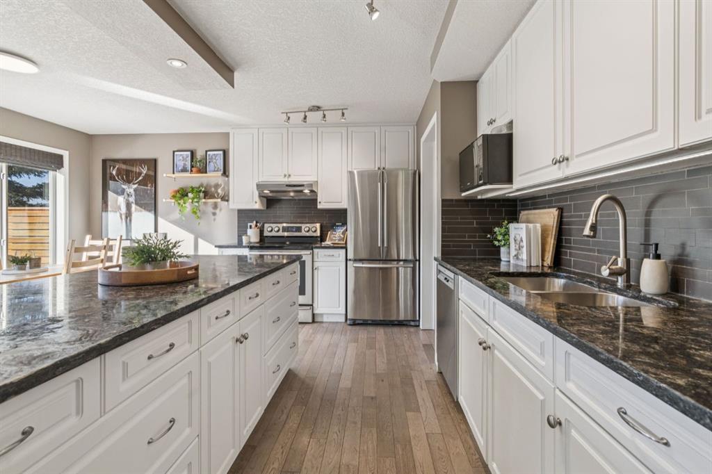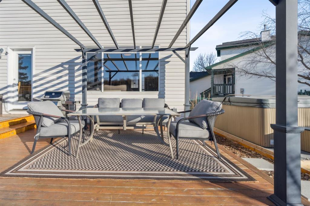 Welcome to this beautifully updated NO NEIGHBOURS BEHIND home that has green space that will never be built on. A great family home featuring a functional layout and bright, OPEN-CONCEPT main floor, offering exceptional privacy on a pie lot! Thoughtful upgrades throughout include gorgeous hardwood flooring, granite countertops, a large kitchen island, stainless steel appliances, and crisp white cabinetry, creating a stylish and welcoming heart of the home. The dining area leads directly to your incredible backyard oasis. Step outside onto the expansive cedar deck perfect for entertaining or relaxing complete with a pergola and privacy shades that create a comfortable, shaded retreat on warm summer days. Central air conditioning keeps the home cool and comfortable all season long. A custom built office and pantry combination adds both convenience and smart organization to the main level. Upstairs, retreat to the expansive primary bedroom showcasing stunning views of the pasture land. The spacious ensuite features a large soaker tub, separate shower, and WALK-IN CLOSET. Two additional bedrooms and a full bathroom complete the upper level. The fully developed basement expands your living space with a generous family room, fourth bedroom, and a full bathroom. This MOVE-IN-READY home offers space, style, and a serene setting perfect for modern family living.