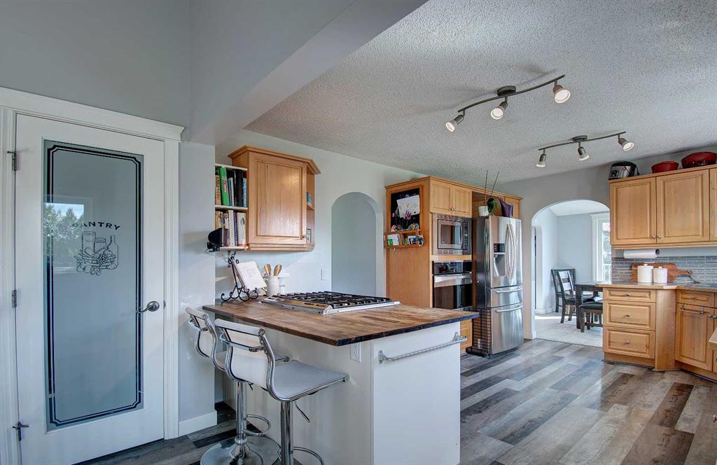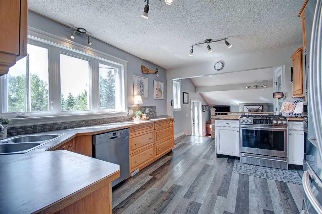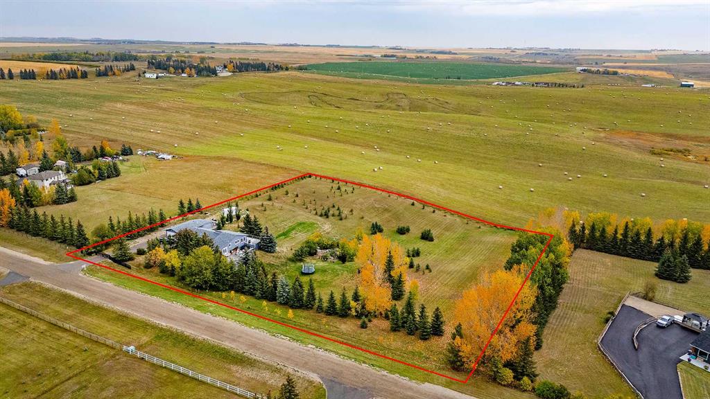 Opportunity knocks! This amazing property is just minutes from Airdrie, Cochrane, and Calgary making it the ideal location for any family! This quiet rural Cul-de sac offers prairie views to the east and mountain views to the west. There is pavement to the driveway and a fully fenced and gated 4 acre yard with mature trees and a designated garden space. Upon entering this hillside bungalow, you are greeted by a generous foyer, vaulted ceilings, and fresh paint throughout, and an open floor plan. The kitchen is open and offer stainless steel appliances and offset formal dining area wth big widows over=looking the deck and yard. Off the kitchen there is a sunken family room that has a gas fireplace as a focal point and french doors leading to the patio. The main floor offers 3 generous bedrooms - one of which is the primary retreat with a spa like 4 pce ensuite. The lower level is a fully finished walkout with a HUGE recreation space, wet bar and cabinetry, laundry room, 4 pce washroom and two good sized additional bedrooms! Outside you will find a 34.11x18.2 garage with loads of room for your storage needs. The four manicured acres offers plenty of space for gardens, play area and, if one chooses in future, a horse! Enjoy membership in the Hill Spring Meadows water co-op - no well to maintain! Don’t miss out on this opportunity, call today to book your private viewing!
