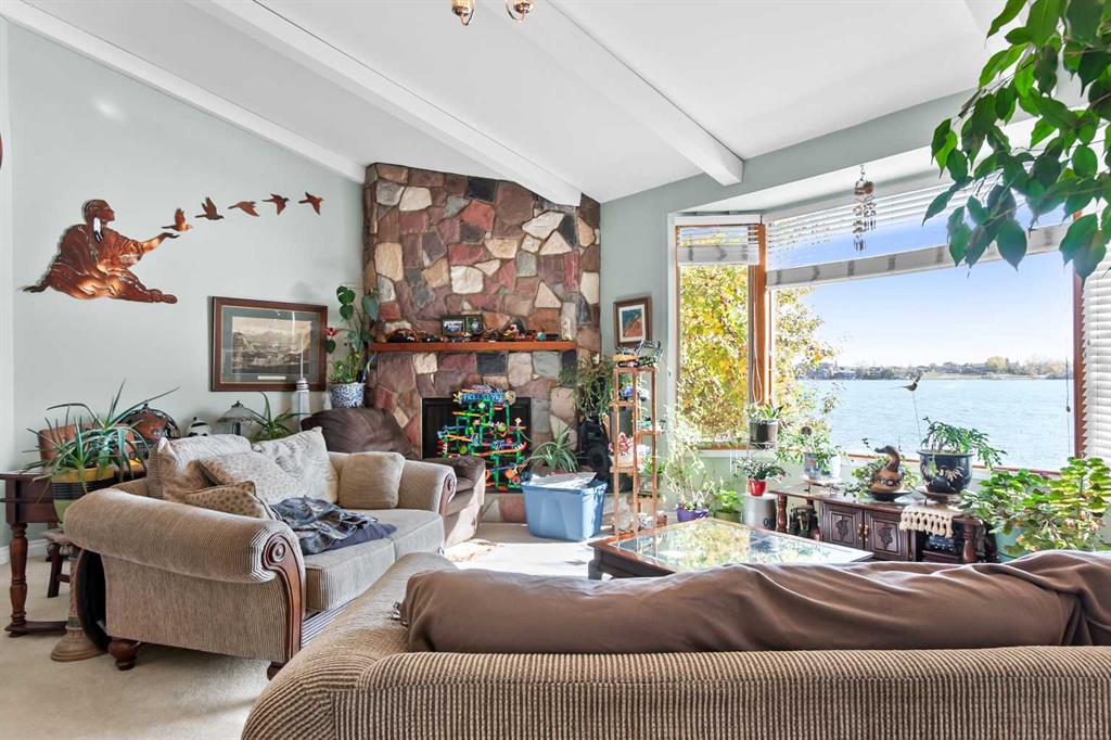 Take a stroll down West Chestermere Drive, this location is not to be missed! Nestled at the very end of this scenic cul-de-sac, next to a reserve, on an extra large private lot, is this wonderful walk-out bungalow. Built in 1976, this home has ample character and all the potential possible. With three bedrooms upstairs and two bedrooms down, here is all the room you need. Enjoy the open concept upper floor plan, big bright windows with natural lighting and an incredible view of the lake from your dinning room table. Four bathrooms, including a deep soaker tub. Two wood burning fireplaces in beautiful brick features. A large family room and spacious rec room, with a huge pool table included. Outside on your private deck is a working hot tub. The 32'x16' vinyl sided Boat House and dock and boat lift are only a few of the many perks this property has to offer! Underground sprinkler system, heated 30x30 garage with front access, huge concrete parking pad, a vinyl maintenance free retaining wall, an additional basement kitchen. Everything you could possibly need, right here in one place, on the lake.