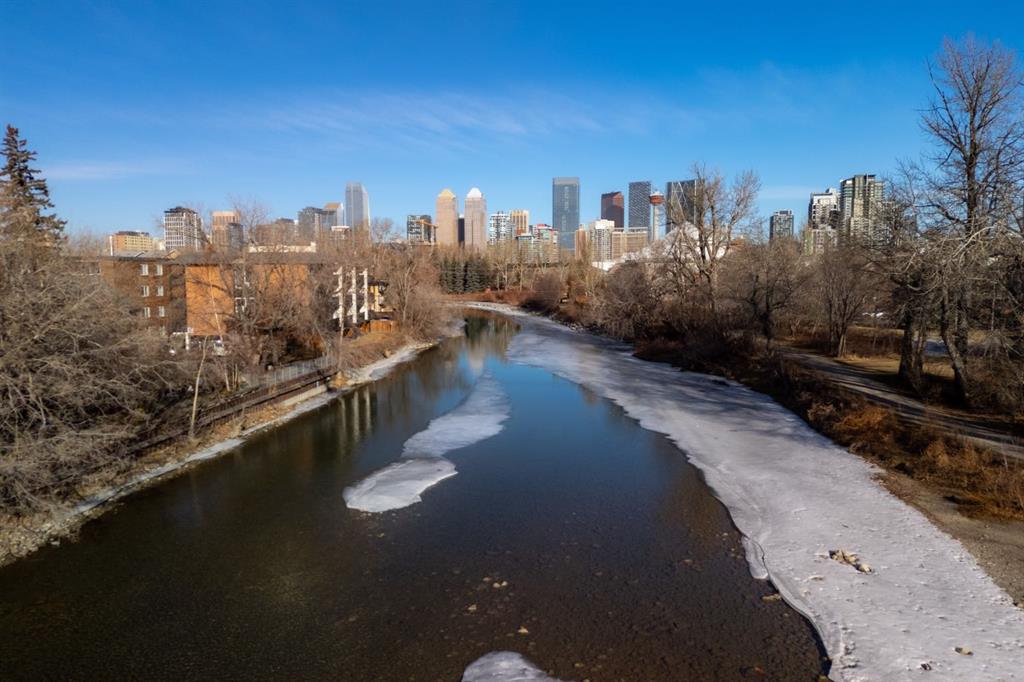 Welcome to this beautifully renovated, nearly 1,000 sq. ft. condo in the coveted, walkable community of Mission, where boutique living meets tranquil river views. Perfectly positioned in a quiet, concrete five-storey building, this stunning home offers peaceful views of the Elbow River from both bedrooms, the living room, and the private balcony, creating a rare sense of calm in the middle of the city. Extensively renovated in 2023 with approximately $55,000 in thoughtful upgrades, this home showcases quality finishes and elevated design throughout. Gleaming tile, a good size foyer and plenty of closet space greet you when you enter the suite and you’ll instantly be drawn further in, to gaze out the large windows overlooking the river. The well appointed, spacious kitchen complete with granite countertops, timeless white cabinets, glossy tiled backsplash, a Bianco sink, Bosch dishwasher and and a mobile chef’s table - perfect for entertaining or culinary creativity. There is a designated dining area and counter seating offering both casual and more formal entertaining options. The cozy living room has a gas fireplace with a custom mantle, large windows letting in lots of natural light and access to the patio where the meandering river is steps away. The balcony is elevated well above ground level for added security. The primary suite is a serene retreat, complete with a luxury marble ensuite, granite countertops, spacious shower, and a walk-in closet. The second bedroom offers the same peaceful river views and abundant natural light, complemented by a second full bathroom and convenient in-suite laundry with full-size LG washer and dryer. This gently lived-in home has been occupied only three months per year, offering a near-new feel. Enjoy the comfort of a Noma air-conditioning unit with a custom wood window insert, a gas line on the patio for summer grilling, and the rare bonus of an oversized, underground heated titled parking stall. Quiet, tranquil, and exceptionally well located, this boutique, concrete building is well managed, with condo fees that include everything except electricity and internet. Pets allowed with board approval. Step outside to experience Mission’s vibrant yet refined lifestyle, river pathways, cafés, restaurants, and shopping all just moments from your door. A truly special offering for the buyer seeking quality, walkability, and peaceful river views in one of Calgary’s most desirable inner-city communities.
