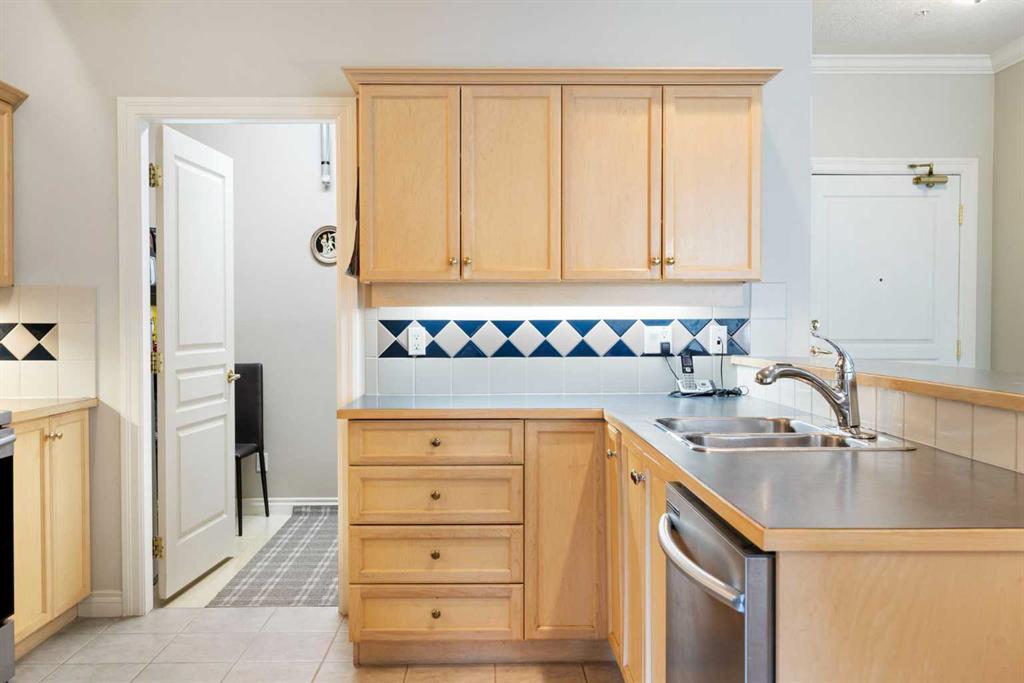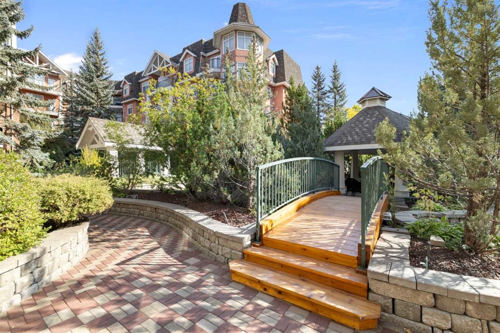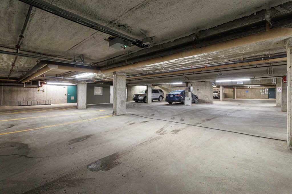 A Rare Find in River Grande Estates! PRIVATE SINGLE GARAGE IN THE UNDERGROUND PARKING Welcome to this bright and spacious 2-bedroom, 2-bath condo perfectly located in the prestigious River Grande Estates. This home is steps from the MNP Centre, Elbow River pathways, the Saddle Dome, C-Train, and the trendy shops and restaurants of 4th Street SW. Truly, city living at its best! Inside, the open-concept layout is warm and welcoming. The large dining room and spacious living room are perfect for relaxing or gathering with friends with direct access to your private patio overlooking the tranquil courtyard with its trees and fountain. The well-appointed kitchen provides abundant cabinetry, stainless-steel appliances, lots of counter space—ideal for the chef in you.. Plus there is extra pantry /storage in the adjacent laundry room Your primary retreat is oversized and easily accommodates a king bed along with additional furniture. A luxurious 5-piece ensuite bath and walk-thru closet completes this private space. The second bedroom is equally inviting, with a large window and space for a queen bed, while the nearby 3-piece bath doubles as a guest washroom. Added conveniences include a generous in-suite laundry with storage, plus a separate assigned storage locker in the underground parking. The building itself sets the tone with an impressive front entry, stone detailing, and a spectacular landscaped courtyard featuring water fountains, trees, shrubs, and a gazebo. Residents also enjoy an exceptional list of amenities.: billiard room, library, party/entertainment room, bike storage, on-site maintenance manager, two car washes, and an extraordinary 30 underground visitor parking stalls. The complex also boasts a healthy reserve fund. Pets are welcome, with board approval (up to two pets; one dog up to 30 lbs.). This rare opportunity combines style, comfort, and location in one of Calgary’s most desirable condo communities. Don’t miss your chance to call River Grande Estates home—book your private showing today!