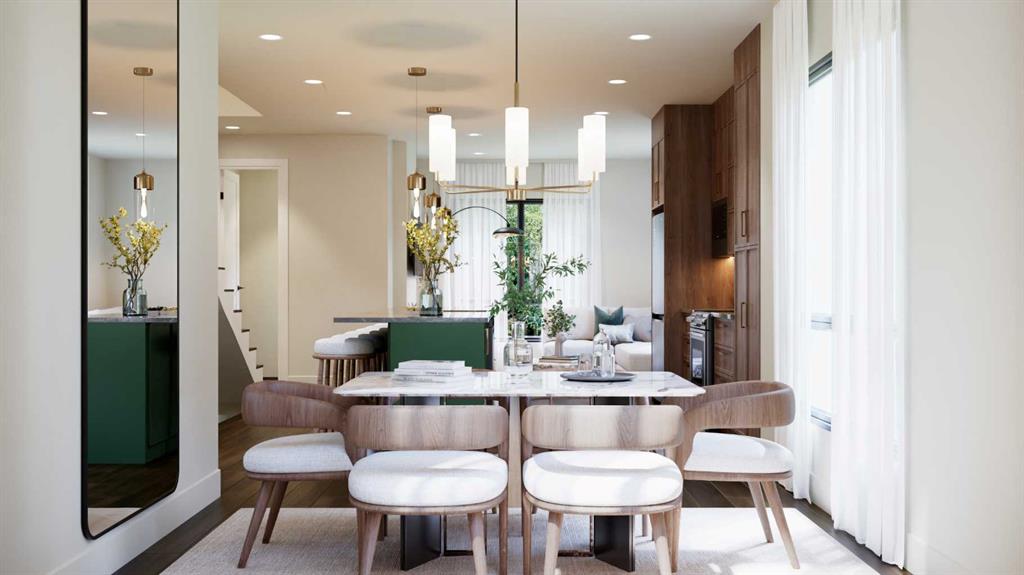 Luxurious Townhome in Currie Barracks - A Legacy of Distinction ONE OF 30 LUXURY TOWN HOMES IN CURRIE BARRACKS. Welcome to an exquisite townhome nestled within the prestigious Nichola community in Currie Barracks. This master-planned intercity neighborhood is just 7 minutes from downtown, providing effortless access to an array of exceptional dining, shopping, and cultural attractions. Spanning 1,417 sq. ft., this thoughtfully designed residence features 3 bedrooms, 2.5 baths, and a nice open concept floor plan, ensuring ample space for both relaxation and productivity. The home boasts 9-foot ceilings on every level, creating a sense of grandeur and openness that invites natural light to flow seamlessly throughout. The heart of the home is a gourmet kitchen, complete with an OVERSIZED GRAND ISLAND (10’0) complete with STYLISH PREMIUM QUARTZ BACKSPLASH & COUNTER TOPS. Ideal for culinary enthusiasts and entertaining guests. Luxurious finishes abound, including PREMIUM MILLWORK, knockdown ceilings, and a sophisticated STUCCO EXTERIOR accented by elegant brick veneer. The bathrooms elevate the home's luxury with MIRRORS THAT STRETCH TO THE CEILING, enhancing the sense of space and sophistication. Thoughtfully equipped with rough-ins for AIR CONDITIONING & SOLAR PANEL, and an ATTACHED TWO CAR GARAGE, the home also includes upgrade options for convenient EV CHARGING rough-ins for modern convenience. Step outside to enjoy serene outdoor living on the DURADEK-FINSHED BALCONIES or gather around the IMPRESSIVE 42” LANDSCAPE FIREPLACE for cozy evenings under the stars. The residence is outfitted with luxurious finishes such as 8-FOOT DOORS, 4-INCH. BASEBOARD, 3” CASINGS, ensuring a refined aesthetic throughout. Buyers can also choose from TWO ELEGANT PALLETTES; THE CALIGA OR LAMBENT allowing for personalization to match your style. Living in Currie Barracks means embracing a community that honors the legacy of Canadian heros such as Captain Nicola Kathleen Sarah Goddard, after whom the NICHOLA TOWNHOMES project is named. This historic neighborhood beautifully blends tradition with modernity, offering immediate access to a nearby dog park, top-tier charter and private schools, and Mount Royal University—making it ideal for families and professionals alike. Indulge in a rich tapestry of cultural experiences, from art galleries to fine dining, all just moments away. This luxurious townhome is more than just a residence; it embodies a lifestyle of elegance, community, and honor. Don’t miss the opportunity to make this remarkable home yours. Schedule a private viewing today and immerse yourself in the luxury and legacy that awaits at Nichola